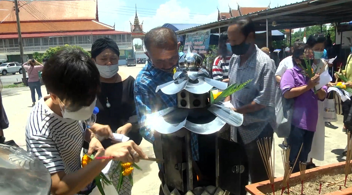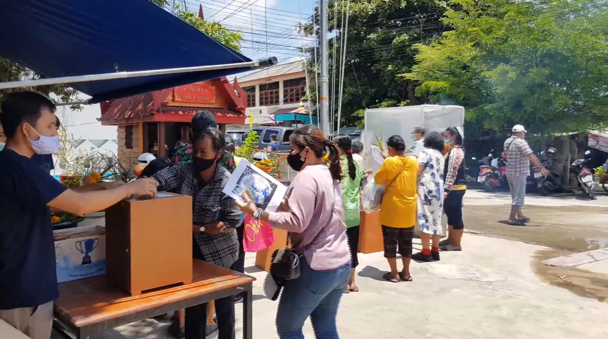 สุพรรณบุรี แห่รับแจกน้ำมันมะพร้าวสกัดเย็นวัดบางปลาหมอ