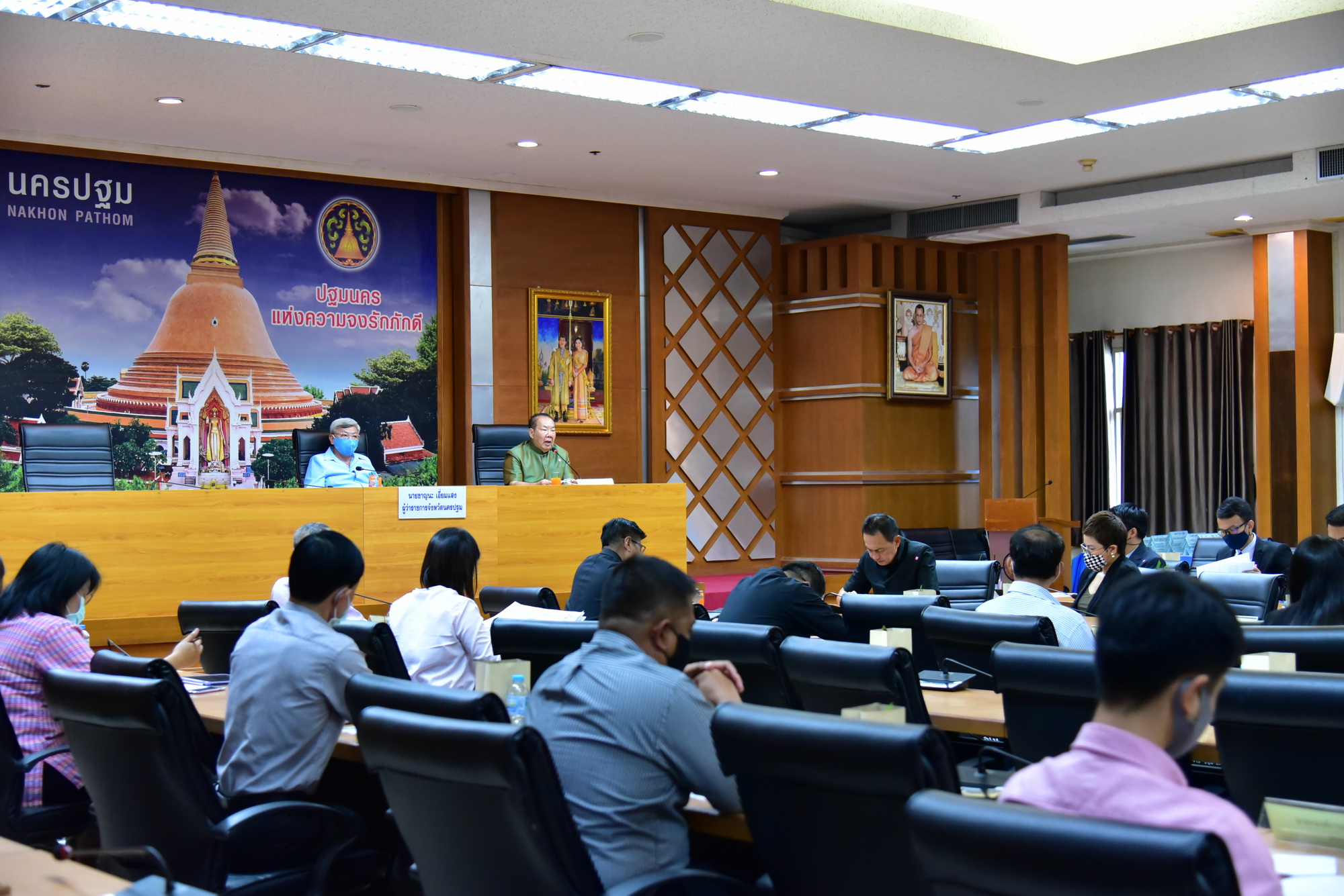 วันนี้ (8 ก.ย.63) ที่ที่ห้องประชุมพิมานปฐม ศาลากลางจังหวัดนคปฐม นายชาญนะ เอี่ยมแสง ผู้ว่าราชการจังหวัดนครปฐม เป็นประธานประชุมคณะกรรมการบริหารจัดกรและพัฒนาคลองเจดีย์บูชาอย่างยั่งยืน ตามหลักประชารัฐ ครั้งที่ 1/2563 โดยมี นายเผดิมชัย สะสมทรัพย์ ในฐานะที่ปรึกษาคณะกรรมการบริหารจัดการและพัฒนาคลองเจดีย์บูชาอย่างยั่งยืนตามหลักประชารัฐ รองผู้ว่าราชการจังหวัด ปลัดจังหวัด ส่วนราชการ องค์กรปกครองส่วนท้องถิ่น และภาคเอกชนเข้าร่วมประชุม เพื่อหารือแนวทางแก้ไขปัญหาสภาพแวดล้อมคลองเจดีย์บูชาอย่างยั่งยืน ครอบคลุม สอดคล้อง โดยบูรณาการระหว่างหน่วยงานราชการ และทุกภาคส่วนที่เกี่ยวข้องให้เป็นไปอย่างมีประสิทธิผล