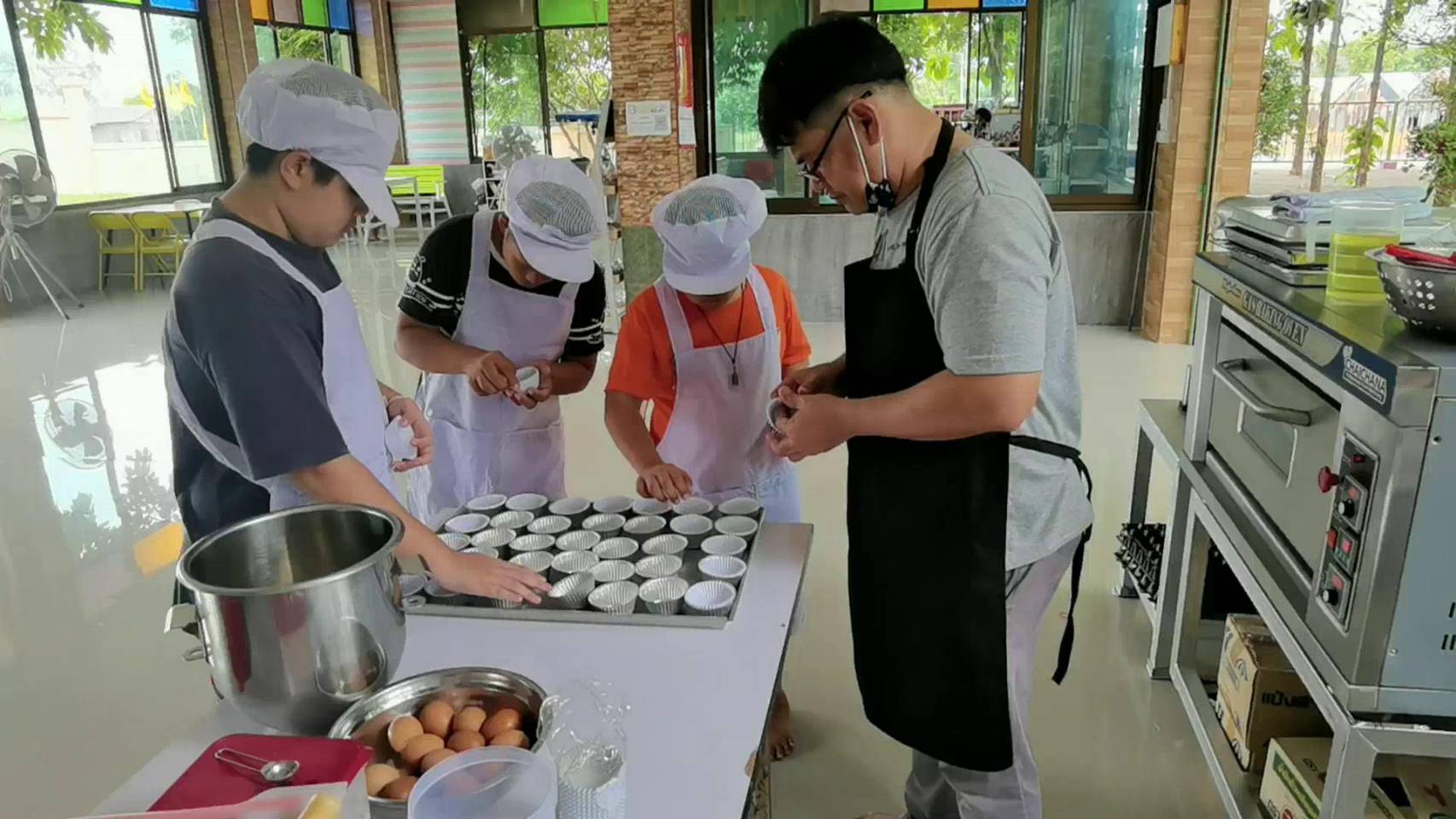 ตอนนี้ทางทางศูนย์ฯ ได้ซื้อเครื่องทำขนมเค้ก และเตาอบมาไว้ประจำที่ศูนย์ เพื่อที่จะฝึกให้เด็กๆ ได้เรียนรู้วิธีการทำขนมเค้ก ซึ่งมีเจ้าหน้าที่ศูนย์จะเป็นคนทำ และให้เด็กๆ เป็นลูกมือช่วย บางอย่างให้ทำเองแต่ก็ต้องมีพี่เลี้ยงคอยดูแล โดยเราได้อาจารย์ที่สอนทำขนมมาช่วยสอน เป็นจิตอาสาซึ่งทราบว่าทางตนเอง จะฝึกให้เด็กๆ ทำขนมขายจึงเข้ามาช่วยสอน