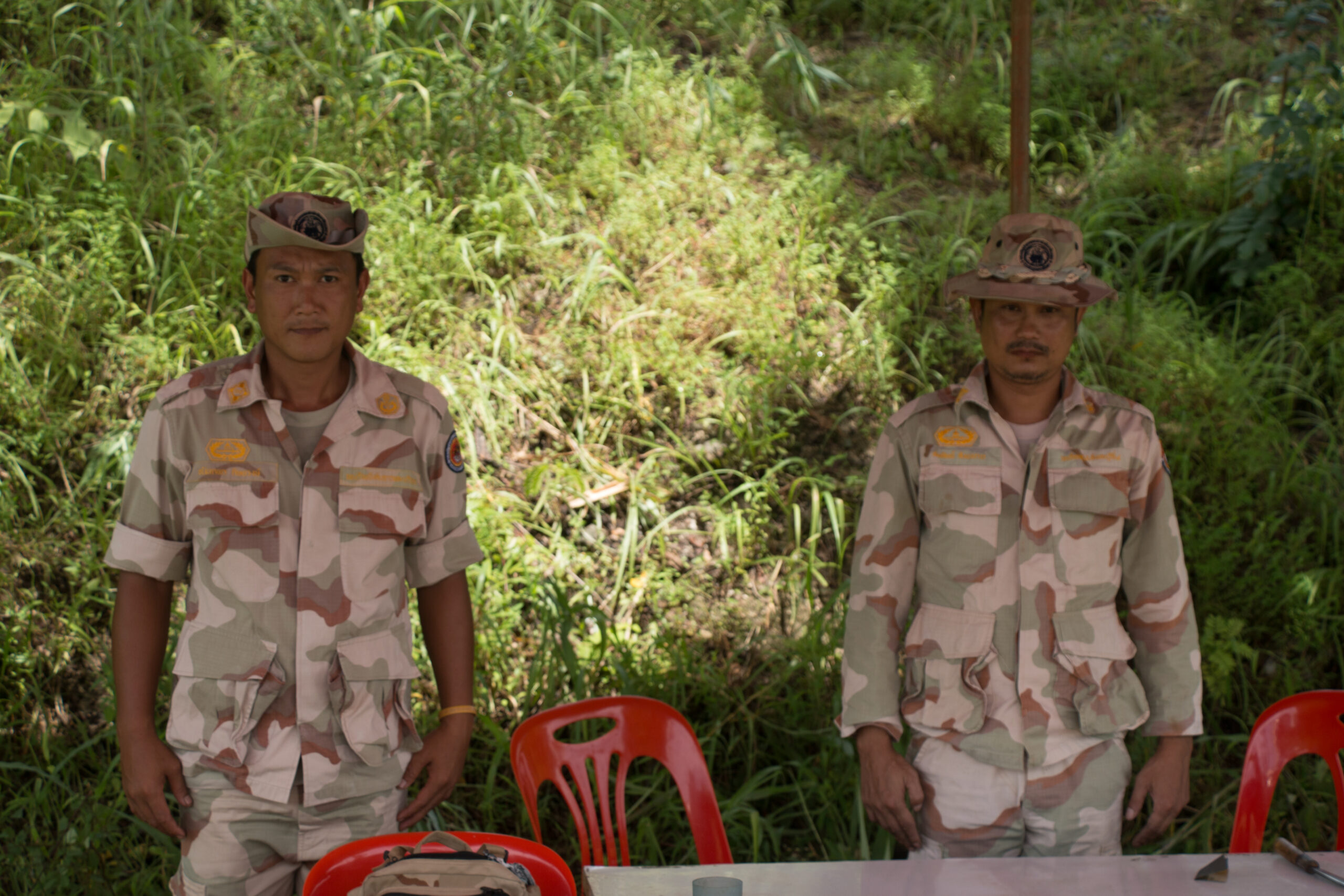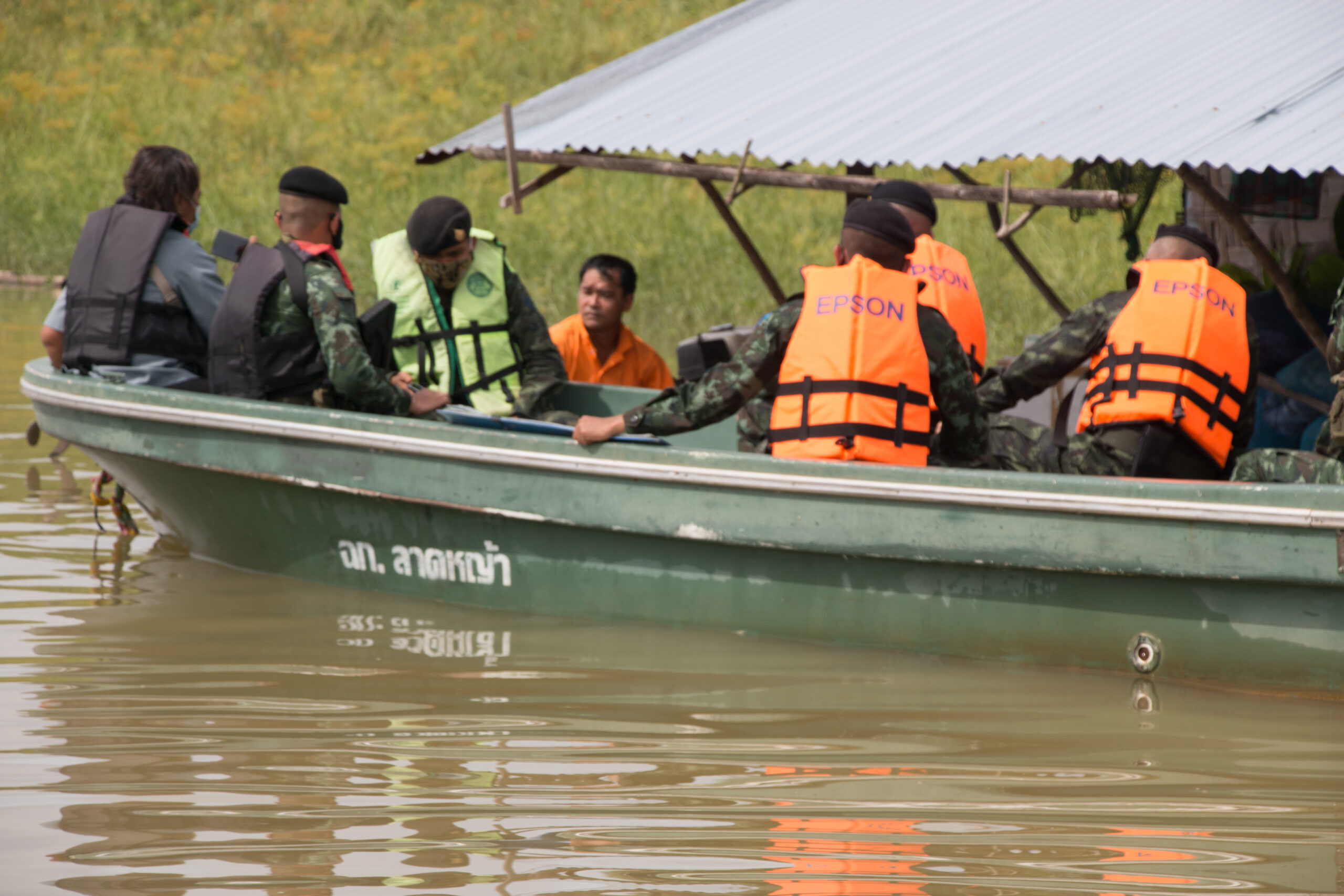วันนี้ พ.อ.สิทธิพร จุลปานะ ผู้บังคับหน่วยเฉพาะกิจลาดหญ้าพร้อมด้วย พ.อ.อนิรุจน์ ดิษฐประชา รองผู้บังคับหน่วยเฉพาะกิจลาดหญ้า ได้เดินทางด้วยเรือยนต์ ตรวจการณ์ จำนวน 2 ลำเพื่อตรวจสอบเส้นทางการขนแรงงานต่างด้าวเข้าสู่พื้นที่ชั้นใน ภายในพื้นที่อ่างเก็บน้ำ เขื่อนวชิราลงกรณ บริเวณจุดสามสบ และพื้นที่โดยรอบ ภายหลังจากมีข้อมูลว่าพื้นที่บริเวณนี้ ได้ถูกใช้เป็นพื้นที่นำแรงงานต่างด้าวมาลงเรือหางยาว ก่อนจะเดิบทางต่อไปยังบริเวณ ต.ท่าขนุน อ.ทองผาภูมิ เพื่อหลบเลี่ยงด่านตรวจความมั่นคงที่ทำการตรวจเข้มในช่วงนี้ ก่อนจะนำรถมารับเพื่อเดินทางเข้าไปยัง จ กาญจนบุรีและจังหวัดใกล้เคียง บางครั้งหากมีการตรวจสอบของเจ้าหน้าที่มากขึ้นก็จะใช้วิธีเดินเท้าหลบเลี่ยงด่านตรวจของทหาร ตำรวจ นอกจากนั้น ผู้บังคับหน่วยเฉพาะกิจลาดหญ้ายังได้ลงเรือพบปะชาวบ้านที่อาศัยอยู่ตามเรือนแพริมอ่างเก็บน้ำ