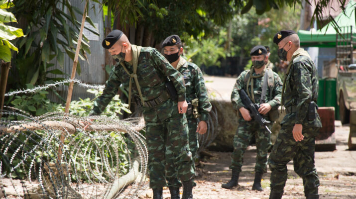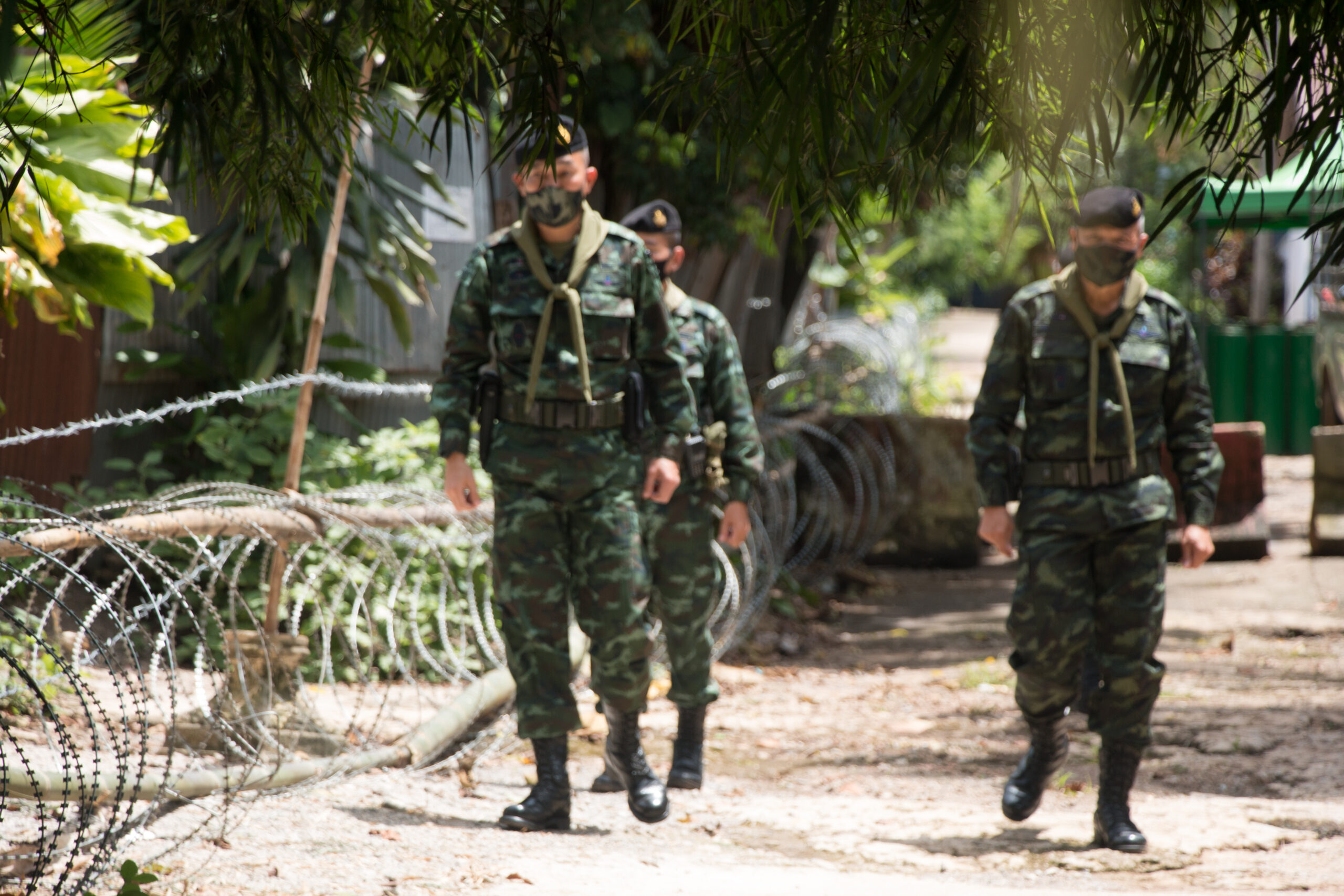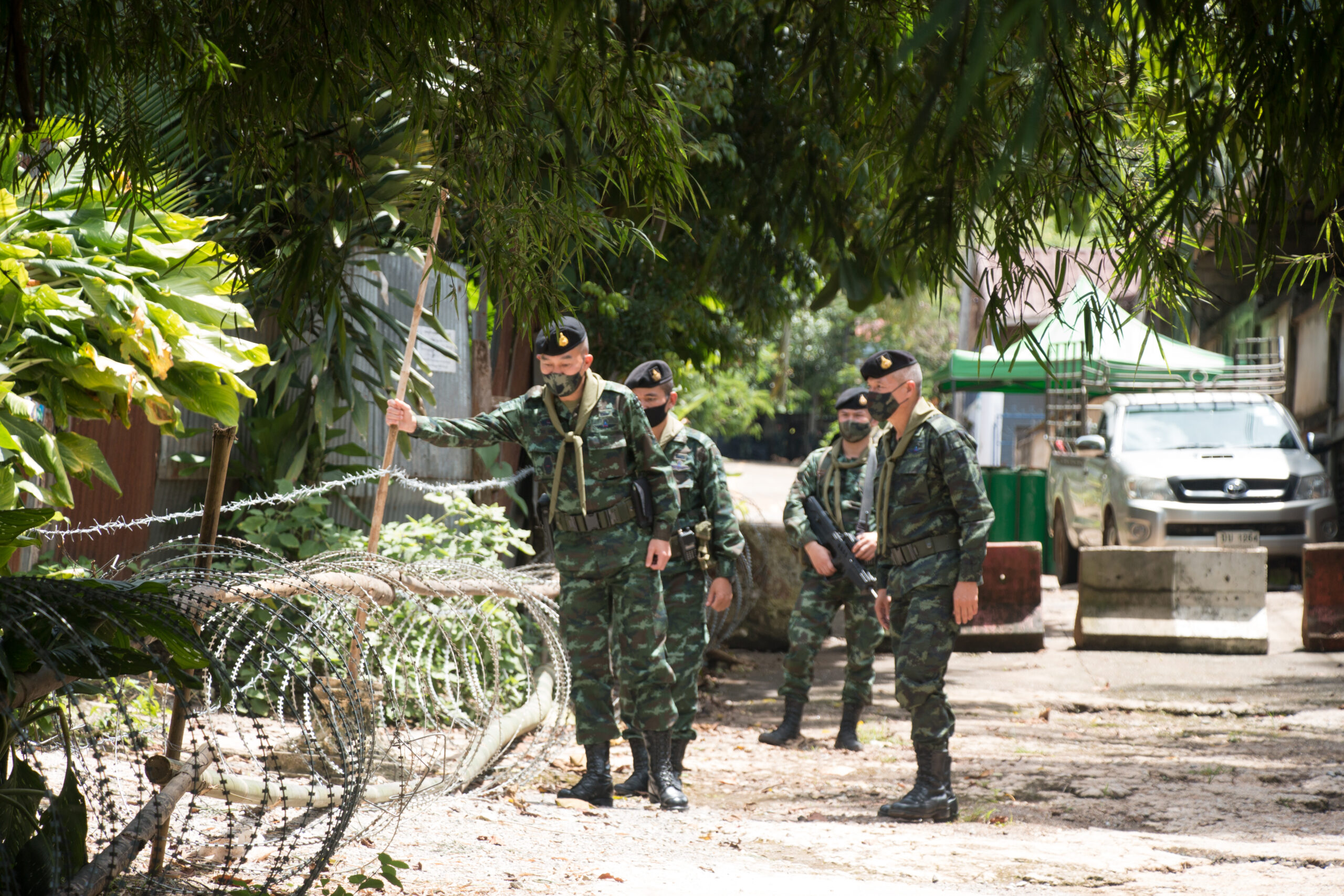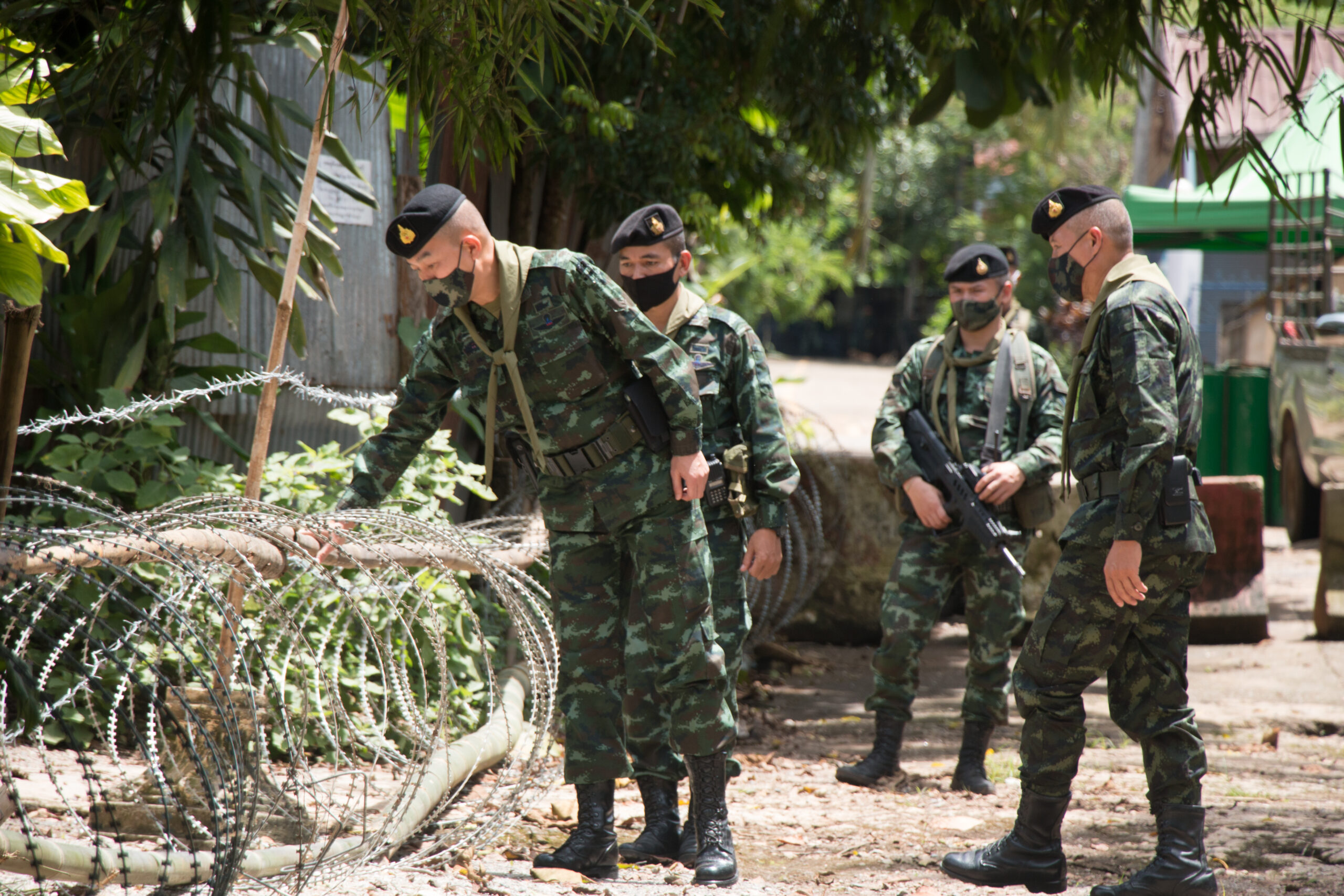 กาญจนบุรี ผบ.ฉก.ลาดหญ้า ลงเรือตรวจสอบเส้นทางการขนแรงงานต่างด้าวหลบหนีเข้ามาในพื้นที่อ่างเก็บน้ำเชื่อนวชิราถงกรณ พร้อมทั้งเสริมกำลังเจ้าหน้าที่ทหารคุมช่องทางตามเส้นทางธรรมชาติ และลาดตระเวนป้องกันการหลบหนีข้ามแดนของชาวเมียนมาจากเหตุการณ์ที่ประเทศเมียนมาประสบปัญหาการระบาดของโรคโควิต-19 ระลอกที่ 2 จนมียอดผู้ป่วยเพิ่มขึ้นมากกว่า 1,500 คน