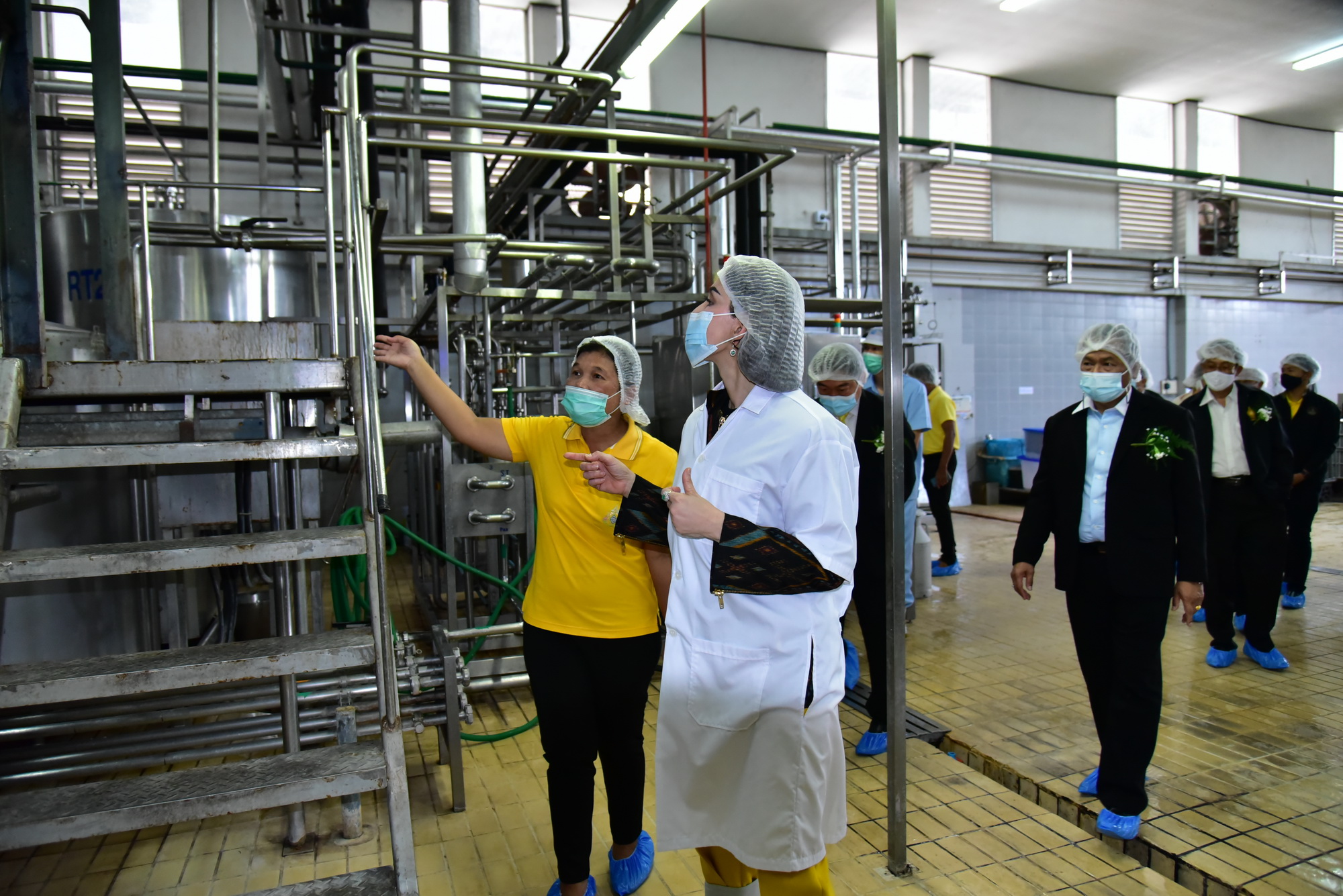 จากนั้น ได้เยี่ยมชมกระบวนการผลิตนมพาสเจอร์ไรซ์ ภายในโรงงานแปรรูปนมพาสเจอร์ไรซ์ ของสหกรณ์โคนมนครปฐม จำกัด และเยี่ยมชมนิทรรศการแสดงผลผลิตการเกษตรของเกษตรกรรุ่นใหม่ที่สมัครเข้าร่วมโครงการนำลูกหลานเกษตรกรกลับบ้าน สานต่ออาชีพเกษตรในจังหวัดนครปฐม และเยี่ยมชมสินค้าจากกลุ่มวิสาหกิจชุมชน พบปะกับพี่น้องเกษตรกรและสมาชิกสหกรณ์ในพื้นที่