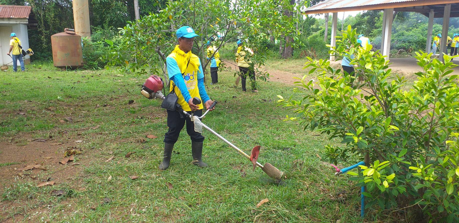 อำนาจเจริญ จิตอาสาพระราชทาน พัฒนาปรับปรุงภูมิทัศน์บริเวณถนนภายในหมู่บ้าน