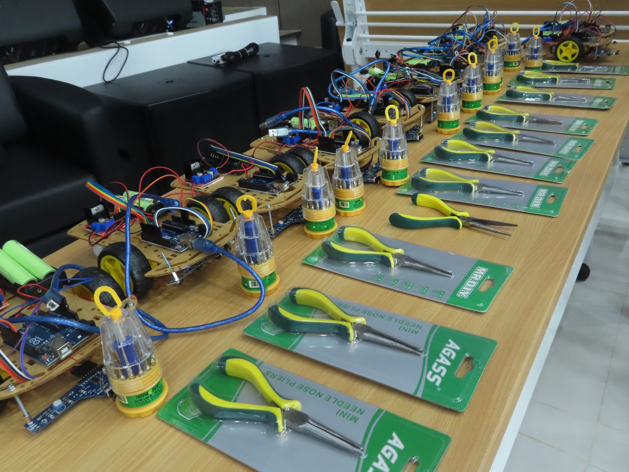 ทั้งนี้ ระหว่างวันที่ 10 – 11 กันยายน 2563 ทางโครงการได้มีกิจกรรมการแข่งขัน เขียนโปรแกรมควบคุมหุ่นยนต์ Arduino เบื้องต้น โดยนักเรียนนำทักษะที่ได้จากการอบรมมาใช้ บรรยากาศเป็นไปด้วยความสนุกสนาน นักเรียนเกิดความภาคภูมิใจจากผลงานที่ได้ประดิษฐ์ขึ้น สามารถนำมาประยุกต์ใช้ในชีวิตประจำวันได้ และต่อยอดความรู้ในการศึกษาต่อระดับปริญญาตรีได้เบื้องต้น