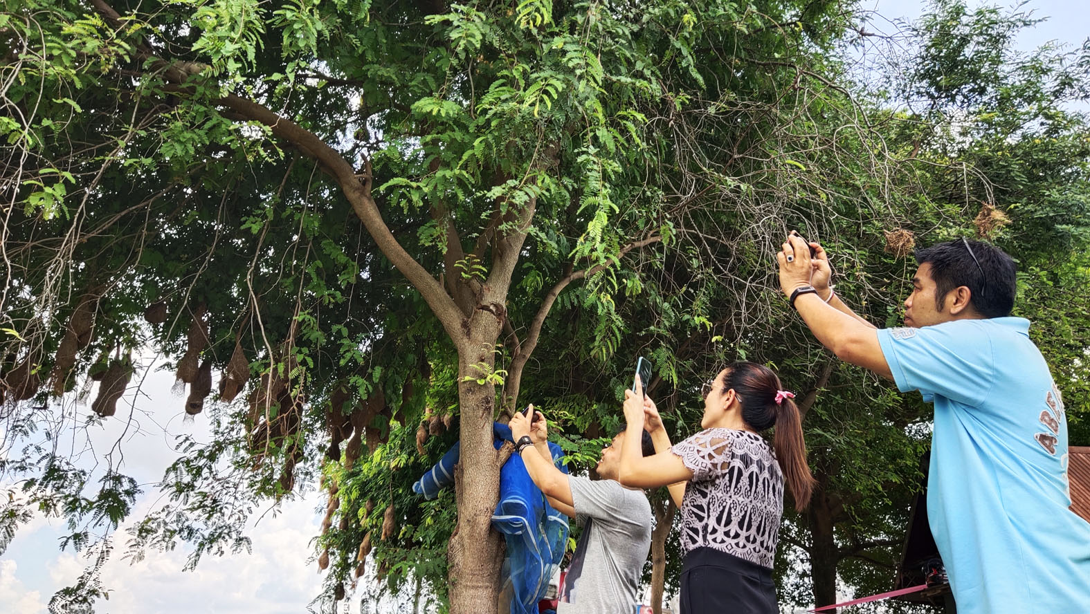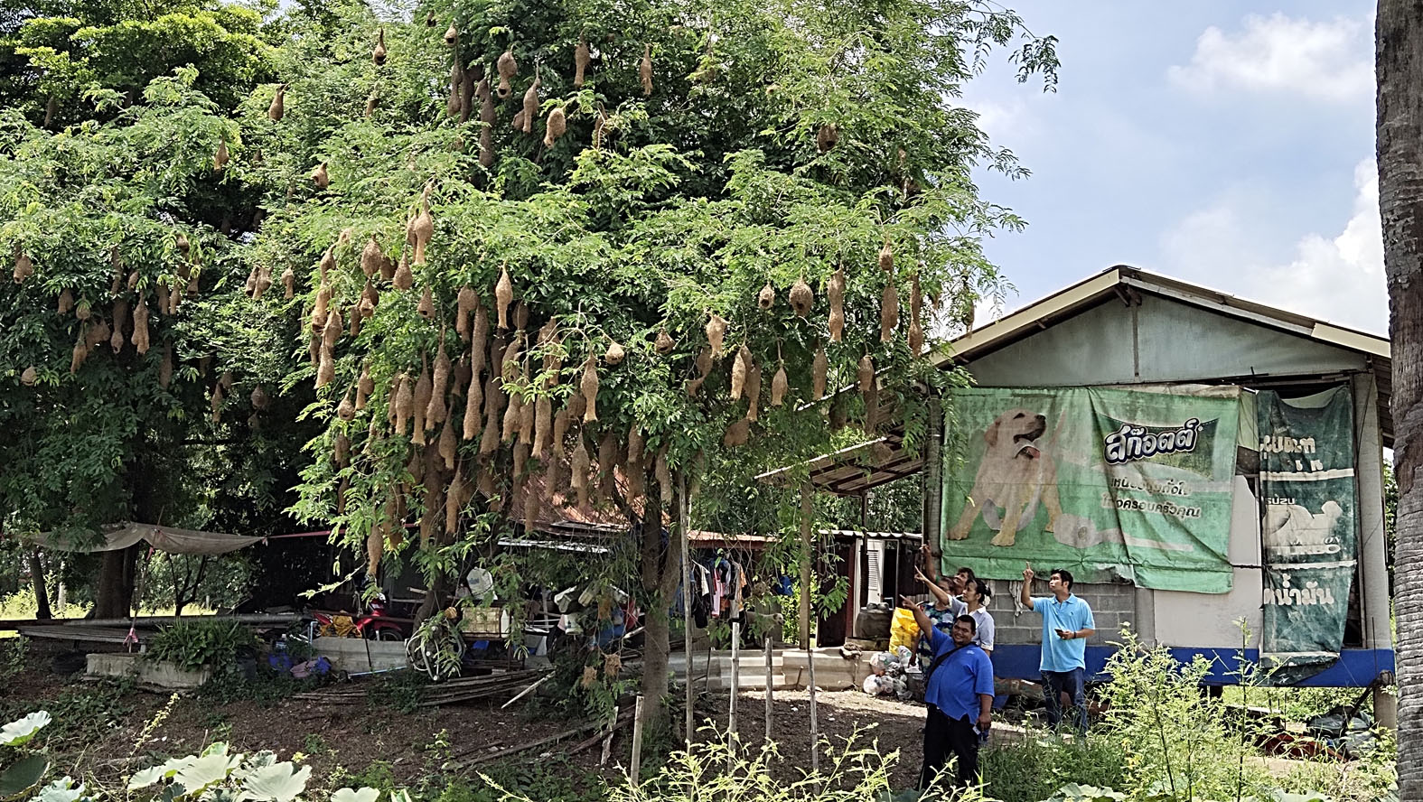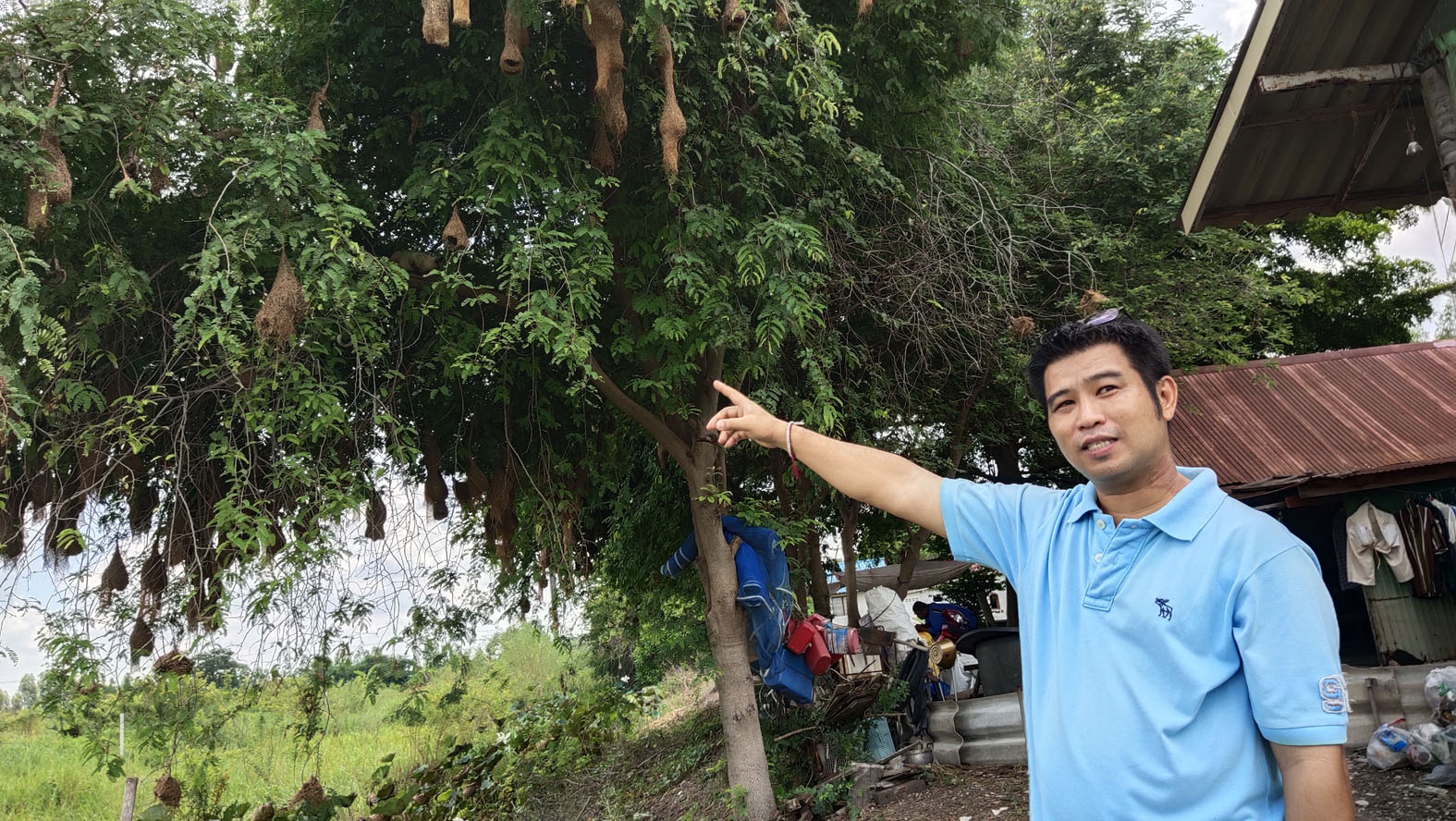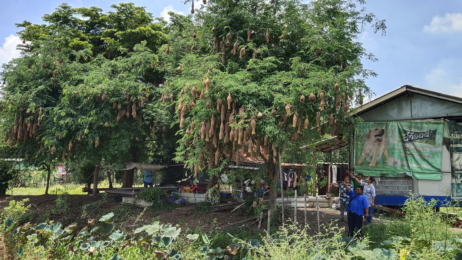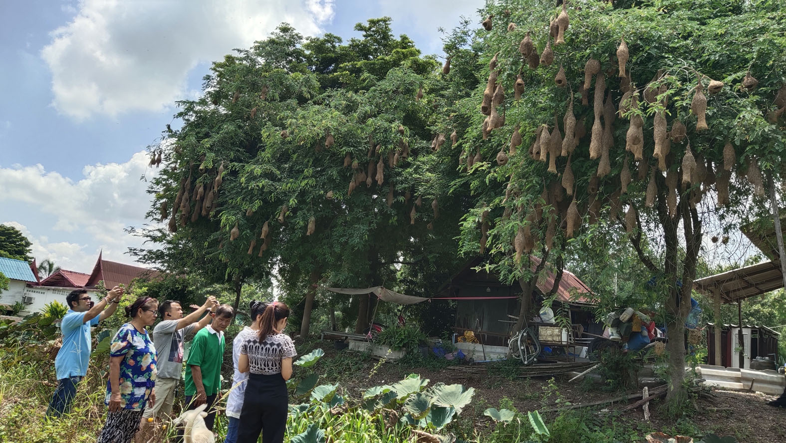 จากการสอบถามนางจรรยา แก้วเกตุ อายุ 67 ปีและนายสนั่น แก้วเกตุ อายุ 70 ปีสองสามีภรรยาเจ้าของบ้านเล่าว่าโดยปกตินกกระจาบจะทำรังอยู่บนต้นตาลแต่เมื่อประมาณ เกือบ 2 ปีบรรดานกกระจาบได้ทยอยกันมาอาศัยทำรังอยู่ที่ต้นมะขามข้างบ้าน ช่วงแรกก็ไม่เยอะมากแต่เมื่อประมาณ 3-4 เดือนที่ผ่านมาฝูงนกกระจาบจำนวนมากได้พากันมาทำรังเพิ่มขึ้น ตนรู้สึกดีใจมีฝูงนกจำนวนมากมาอยู่ใกล้บ้านเนื่องจากบ่งบอกให้เห็นว่าบ้านของตนมีความสงบร่มรื่น และอุดมสมบูรณ์ ทำให้ทุกวันที่ตนกลับจากทำงานแล้วได้ยินเสียงนกร้อง ซึ่งที่อื่นไม่มี เคยมีคนมาบอกตนว่าให้เก็บรังนกไปขายจะได้ราคารังละ 30-40 บาทแต่ตนไม่ทำ ตนคิดถึงความมีมานะและความลำบากของนกที่กว่าจะทำรังได้แต่ละรังนั้นต้องมีความพยายามและอดทน แต่ถ้าเราเก็บรังเขาไปขายก็เท่ากับว่าเราไปทำลายบ้านและครอบครัวเขาเงินที่ได้จากการขายรังนกเดี๋ยวก็หมดแต่ธรรมชาติที่สวยงามโดยไม่ต้องปรุงแต่งนั้นหาไม่ได้ง่ายๆ จึงอยากฝากไปถึงคนที่ชอบสะสมและชอบนำรังนกกระจาบไปประดับตามบ้านขอให้เลิกเถอะ