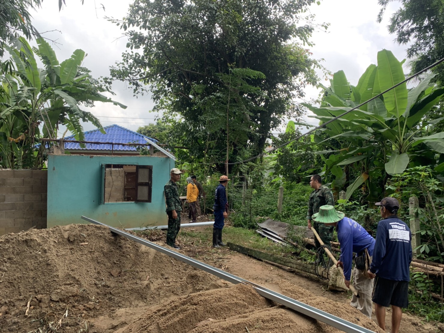 ศูนย์ปฏิบัติการบริหารการแก้ไขปัญหายาเสพติดชายแดนภาคเหนือร่วมกับผู้นำชุมชนและประชาชนจิตอาสา บ.ทรายมูล ร่วมกันก่อสร้างบ้านให้กับ นายแปลก ภิระบัน อายุ 64 ปี ราษฏร บ.ทรายมูลอ.แม่จัน จ.เชียงราย ซึ่งเป็นผู้ยากไร้มีฐานะยากจนไม่มีรายได้ที่แน่นอนอาศัยหาของป่าและเบี้ยเลี้ยงยังชีพผู้สูงอายุเพื่อเลี้ยงครอบครัว