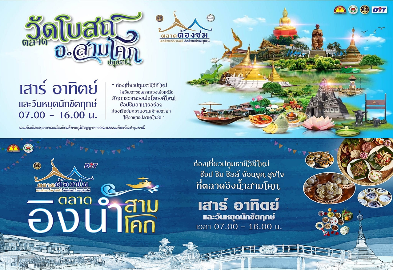 เมื่อวันที่14กันยายน 2563 สำนักงานพาณิชย์จังหวัดปทุมธานีได้จัดกิจกรรมส่งเสริมการท่องเที่ยวเพื่อกระตุ้นและเชื่อมโยงการซื้อขายสินค้าและบริการในตลาดต้องชมที่น่าท่องเที่ยวถึง 2 แห่ง คือ ตลาดต้องชม “วัดโบสถ์” และตลาดต้องชม “อิงน้ำสามโคก” เพื่อประชาสัมพันธ์สร้างการรับรู้ให้นักท่องเที่ยวได้รู้จักตลาดต้องชมทั้งสองแห่งมากยิ่งขึ้น โดยการจัดกิจกรรมประชาสัมพันธ์กระตุ้นการซื้อขายของตลาดนั้น ทางสำนักงานพาณิชย์ปทุมธานีได้มีการจัดเดินประชาสัมพันธ์ (Troop) เมื่อวันที่ 5-6 กันยายน 2563 ในพื้นที่บริเวณโดยรอบตลาดจตุจักรและตลาด อตก. ด้วยกิจกรรมการแสดงสนุกสนาน แจกของที่ระลึก และเชิญชวนให้ประชาชน นักท่องเที่ยวไปเที่ยวชมตลาดดังกล่าวในวันหยุดของสัปดาห์ และเดินประชาสัมพันธ์แจกคูปองส่วนลดแทนเงินสดและของที่ระลึกให้ผู้มาท่องเที่ยวทั้ง 2 ตลาด เมื่อวันที่ 12 กันยายนที่ผ่านมา ซึ่งได้รับความสนใจแก่ผู้พบเห็นที่เดินผ่านไปมาเป็นจำนวนมาก