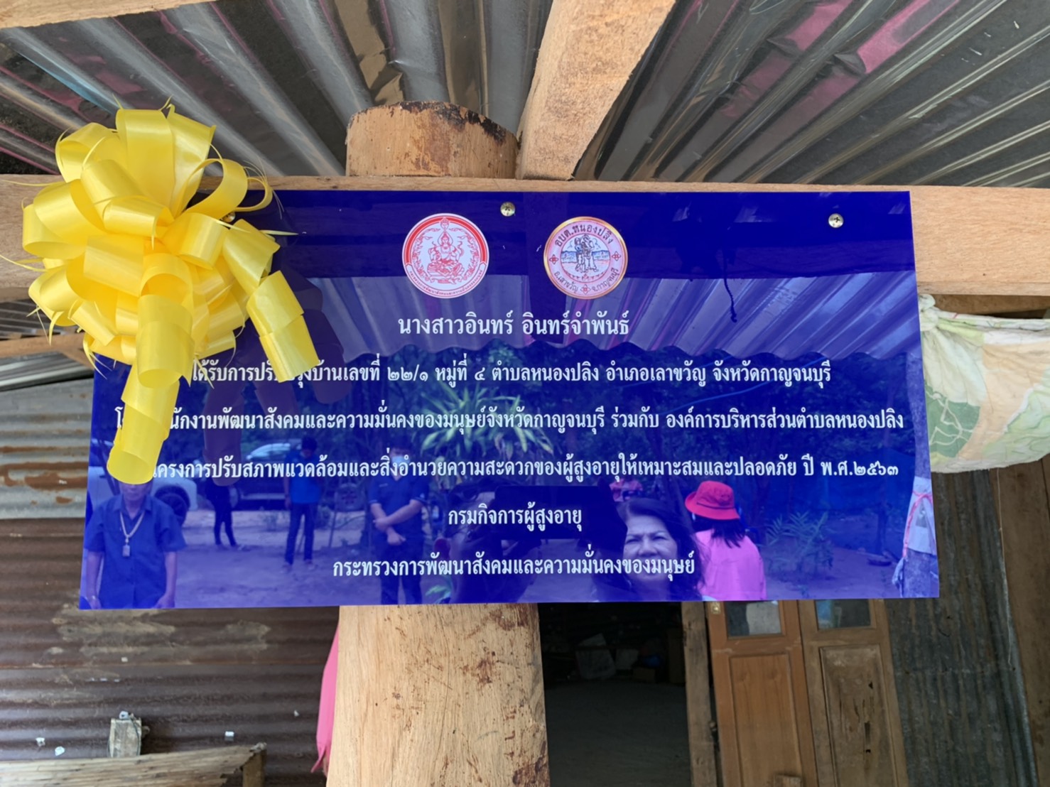 18 กันยายน 2563 ว่าที่ร้อยเอก อานนท์ เชื้อเล็ก นายอำเภอเลาขวัญ/ประธานะคณะกรรมการพัฒนาคุณภาพชีวิตอำเภอ (พชอ.) เลาขวัญ นายบรรณรัตน์ เก่งกสิกิจ พัฒนาสังคมและความมั่นคงของมนุษย์จังหวัดกาญจนบุรี นางเบญจวรรณ เชื้อเล็ก แม่บ้านมหาดไทยอำเภอเลาขวัญ ร่วมกันมอบบ้านที่ได้รับการปรับปรุงซ่อมแซมตามโครงการปรับสภาพแวดล้อมและสิ่งอำนวยความสะดวกของผู้สูงอายุให้เหมาะสมและปลอดภัย ปี พ.ศ.2563 ให้กับนางสาวอินทร์ อินทร์จำพันธ์ เลขที่ 22/1 หมู่ที่ 4 ตำบลหนองปลิง โดยได้รับการสนับสนุนงบประมาณ จำนวน 22,500 บาท จากกรมกิจการผู้สูงอายุ กระทรวงการพัฒนาสังคมและความมั่นคงของมนุษย์ เป็นค่าจัดซื้อวัสดุอุปกรณ์ซ่อมแซมบ้านและสิ่งอำนวยความสะดวก แรงงานสมทบซ่อมแซมบ้านจากผู้นำท้องที่/ท้องถิ่น คณะกรรมการหมู่บ้าน (กม.) และช่างจิตอาสาฯ ในพื้นที่