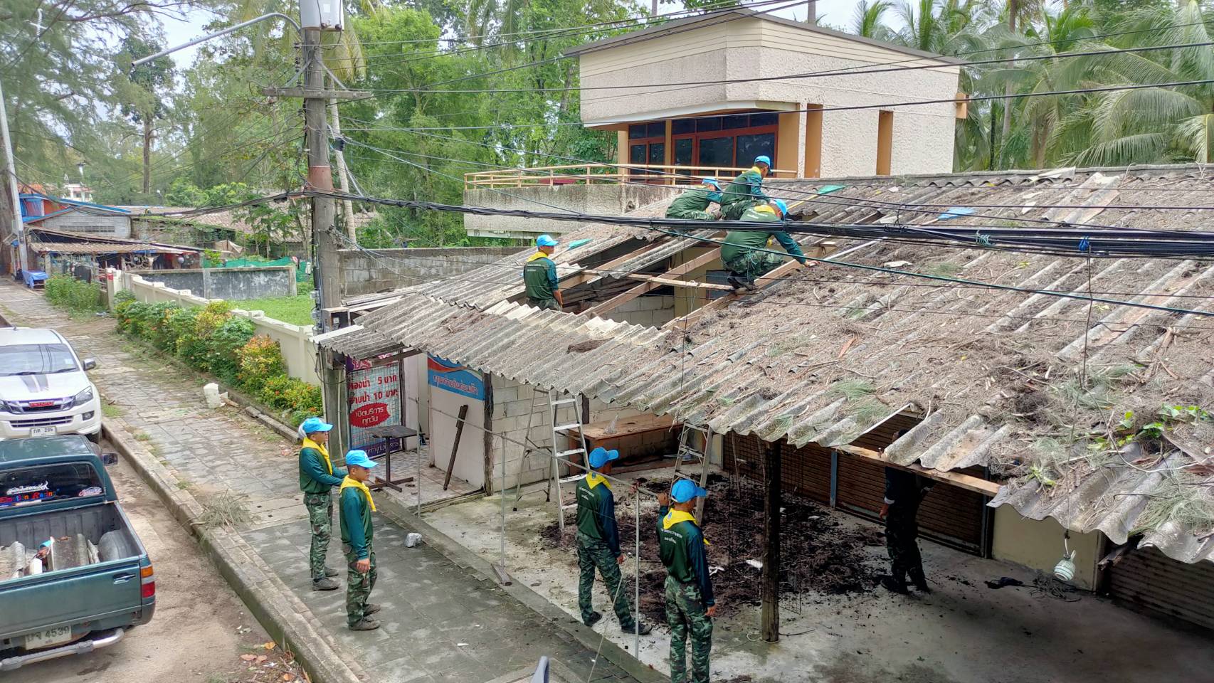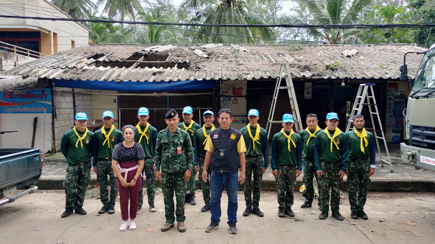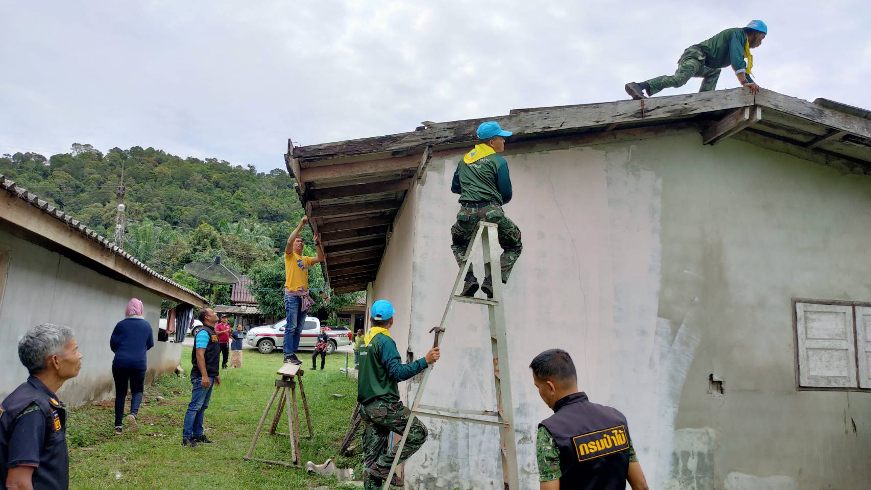 ศูนย์บรรเทาสาธารณภัยกองพันทหารราบที่ 4 กรมทหารราบที่ 15 ค่ายพระยารัษฎานุประดิษฐ์ อำเภอห้วยยอด จังหวัดตรัง ร่วมกับผู้นำท้องถิ่น เจ้าหน้าที่อุทยานแห่งชาติหาดเจ้าไหม เจ้าหน้าที่ป่าไม้ ยังคงระดมกำลังกันช่วยซ่อมแซมบ้านเรือนของประชาชนที่ได้รับความเสียหายจากพายุโนอึล ตามนโยบายของผู้บัญชาการทหารบกและแม่ทัพภาคที่ 4