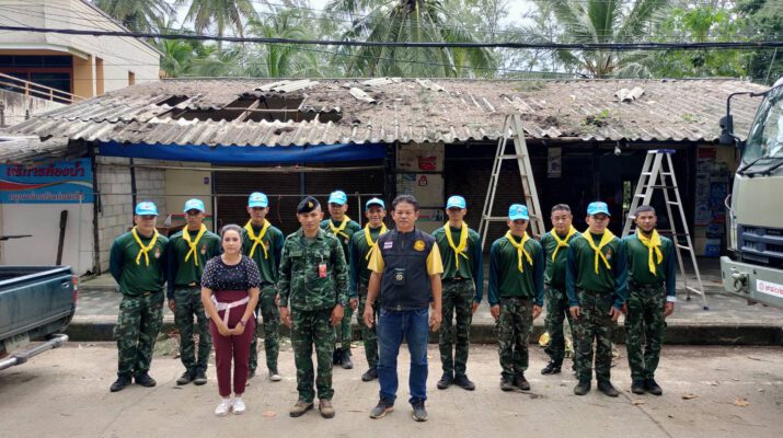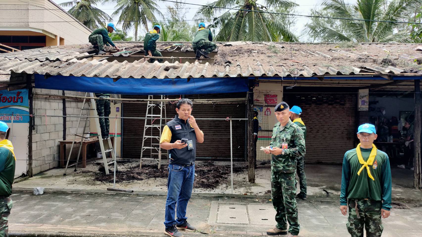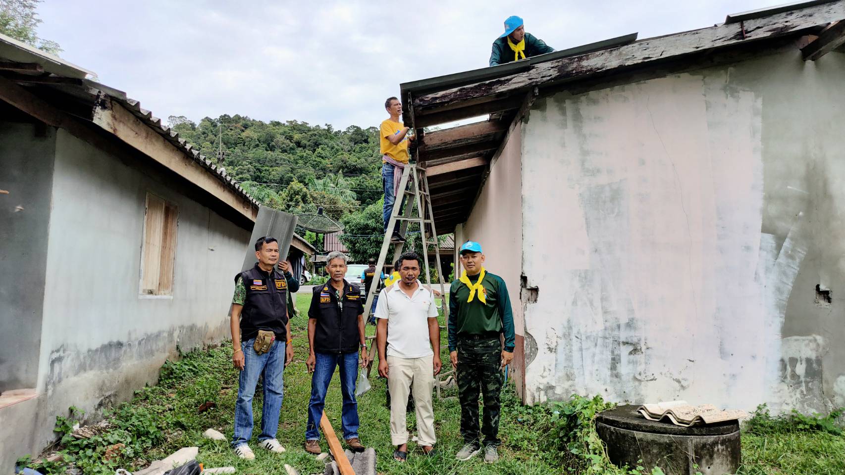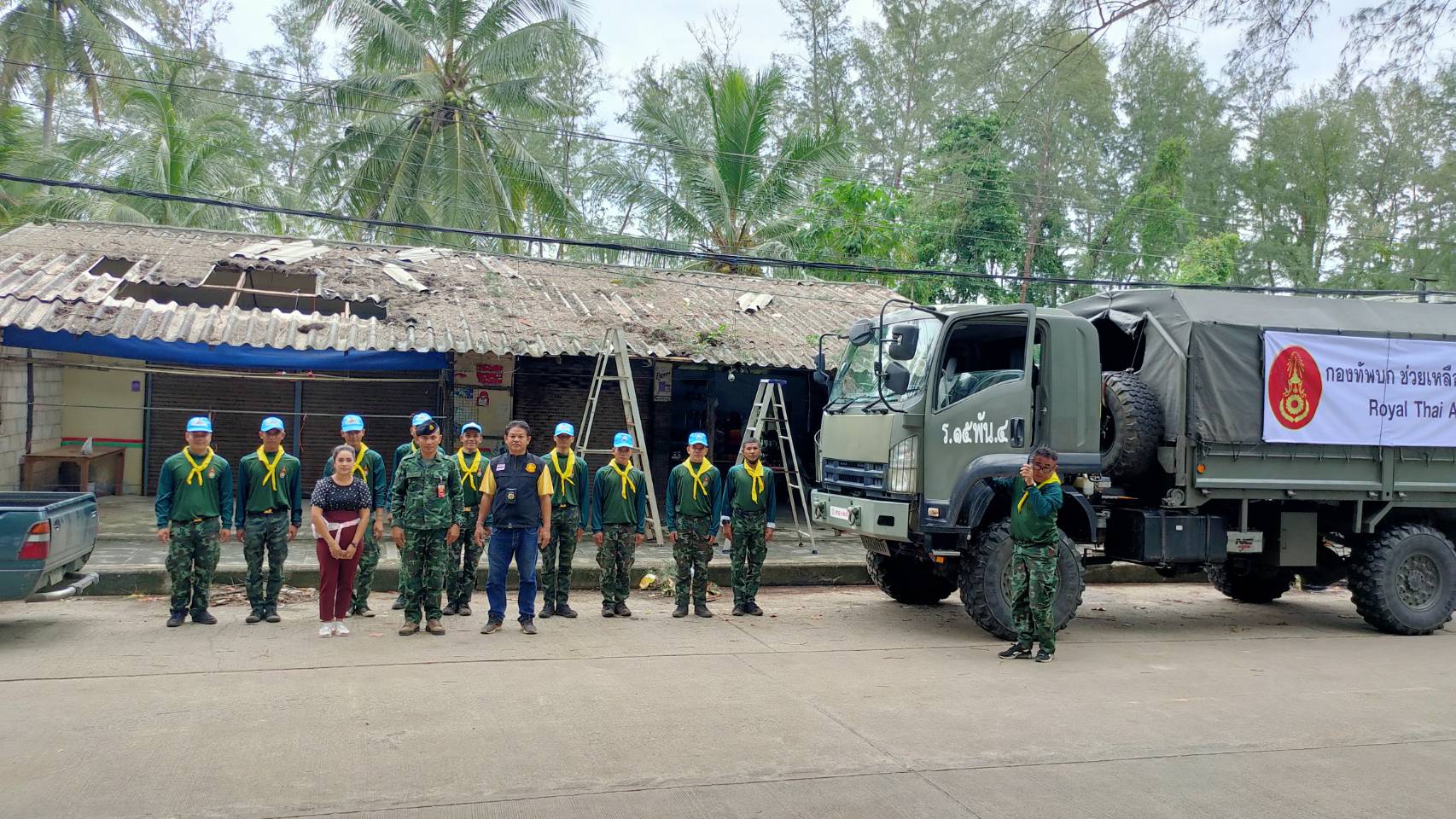 ศูนย์บรรเทาสาธารณภัยกองพันทหารราบที่ 4 กรมทหารราบที่ 15 ค่ายพระยารัษฎานุประดิษฐ์ อำเภอห้วยยอด จังหวัดตรัง ร่วมกับผู้นำท้องถิ่น เจ้าหน้าที่อุทยานแห่งชาติหาดเจ้าไหม เจ้าหน้าที่ป่าไม้ ยังคงระดมกำลังกันช่วยซ่อมแซมบ้านเรือนของประชาชนที่ได้รับความเสียหายจากพายุโนอึล ตามนโยบายของผู้บัญชาการทหารบกและแม่ทัพภาคที่ 4