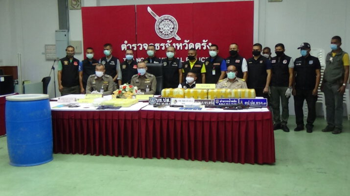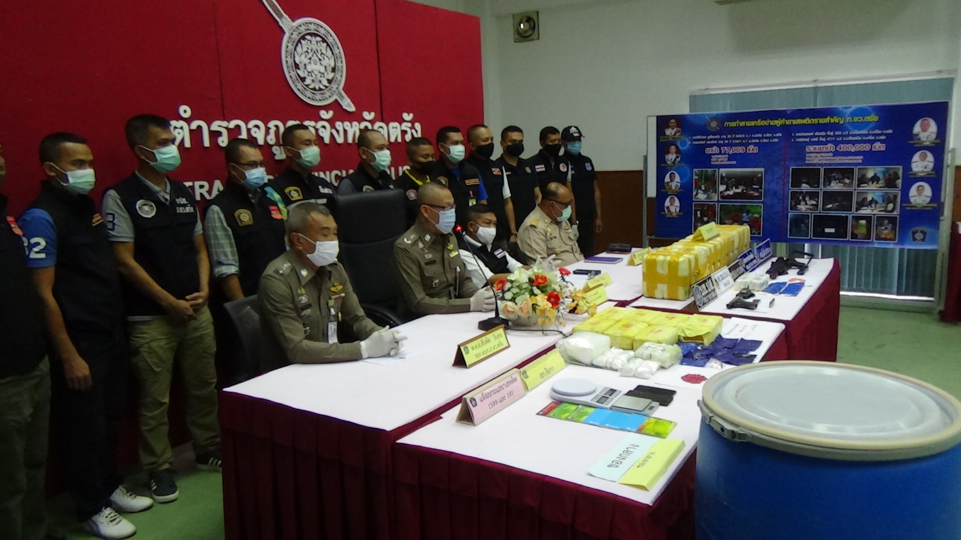 ที่กองบังคับการตำรวจภูธรจังหวัดตรัง พลตำรวจตรีถาวร แสงฤทธิ์ ผู้บังคับการตำรวจภูธรจังหวัดตรัง พร้อมด้วย พ.ต.อ.สันทัด วินสน รองผู้บังคับการตำรวจภูธรจังหวัดตรัง พ.อ.ธีรวัฒน์ ปิ่นแก้ว รองผู้อำนวยการรักษาความมั่นคงภายในจังหวัดตรัง(ทหาร) นายณัฐวุฒิ สังข์สุข ป้องกันจังหวัดตรัง และ ป.ป.ส.ภาค 9 ได้ร่วมแถลงผลการจับกุมยาเสพติดรายสำคัญ 2 คดี ดังนี้คดีที่ 1 เมื่อวันที่ 16 กันยายน 2563 เจ้าหน้าที่ตำรวจ สถานีตำรวจภูธรสิเกา สถานีตำรวจภูธรหนองตรุด และ ชุดปราบปรามยาเสพติดภูธรจังหวัดตรัง ได้ร่วมกันจับกุมตัว นายนรสิงห์ อายุ 56 ปี ม.1 ต.บ่อหิน อ.สิเกา จ.ตรัง นายศิริวัฒน์ อายุ 25 ปี ม.1 ต.บ่อหิน อ.สิเกา จ.ตรัง พร้อมของกลาง ยาบ้า จำนวน 77,009 เม็ด ไอซ์ จำนวน 1.5 กิโลกรัม เครื่องชั่งดิจิตอล จำนวน 2 เครื่อง กระสุนปืน ขนาด .45 จำนวน 60 นัด อาวุธปืนลูกซองยาว จำนวน 1 กระบอก เหตุเกิดที่ขนำไม่มีเลขที่อยู่ในพื้นที่บ้านเลขที่ 218 ม.1 ต.บ่อหิน อ.สิเกา จ.ตรัง