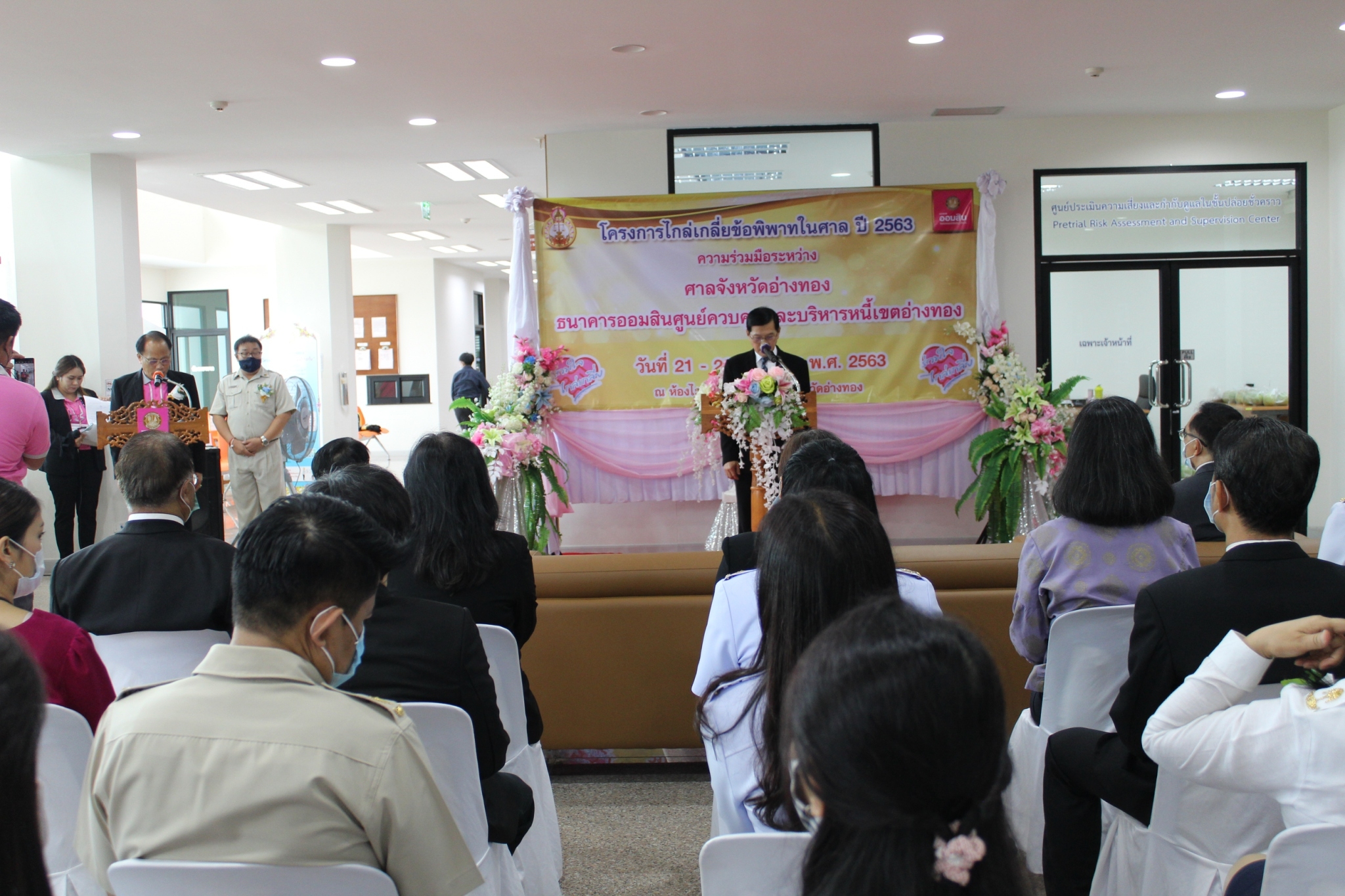 ศาลจังหวัดอ่างทองโดยนายไวกูณฐ์ สว่างสุรีย์ ผู้พิพากษาหัวหน้าศาลจังหวัดอ่างทองเป็นประธานในพิธีเปิดโครงการ “ไกล่เกลี่ยข้อพิพาทในศาล ปี 2563” พร้อมด้วยคณะผู้พิพากษาและผู้อำนวยการสำนักอำนวยการประจำศาลจังหวัดอ่างทองร่วมเป็นเกียรติในพิธี