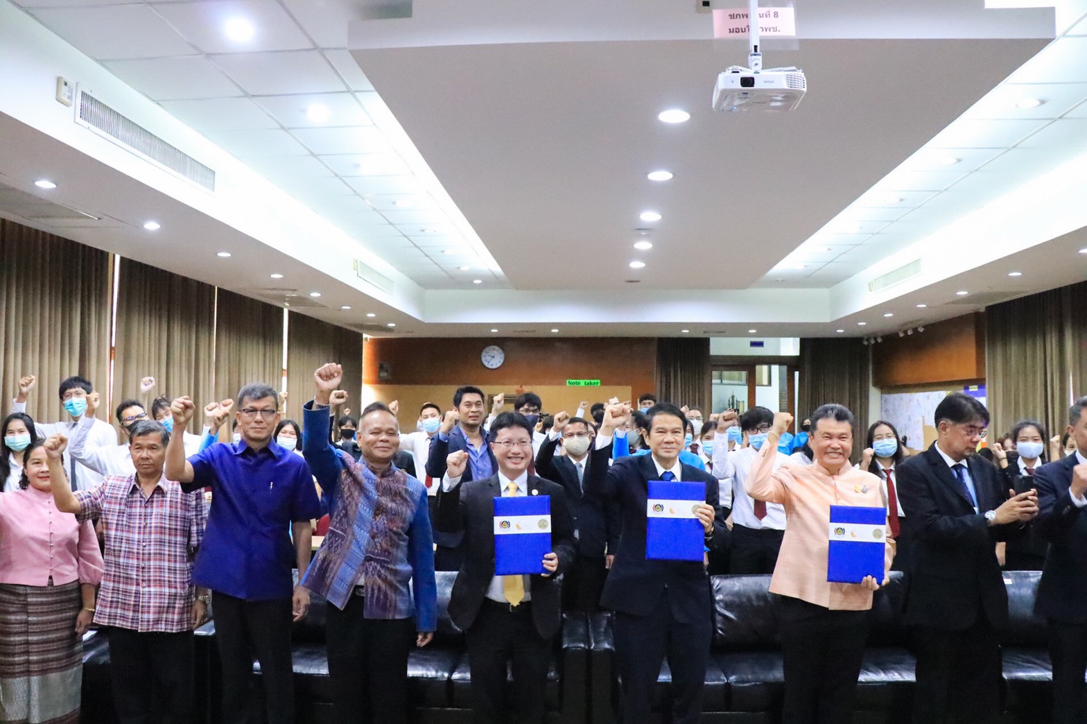 นายสุทธิพงษ์ จุลเจริญ อธิบดีกรมการพัฒนาชุมชน กระทรวงมหาดไทย ร่วมกับ นายคณิศ แสงสุพรรณ เลขาธิการคณะกรรมการนโยบายเขตพัฒนาพิเศษภาคตะวันออก สำนักงานคณะกรรมการนโยบายเขตพัฒนาพิเศษภาคตะวันออก และผู้ช่วยศาสตราจารย์ณยศ คุรุกิจโกศล ผู้รักษาการแทนรองอธิการบดีฝ่ายกิจการเขตพัฒนาพิเศษภาคตะวันออก มหาวิทยาลัยบูรพา ร่วมพิธีลงนามบันทึกข้อตกลงว่าด้วยความร่วมมือระหว่างสำนักงานคณะกรรมการนโยบายเขตพัฒนาพิเศษภาคตะวันออก กรมการพัฒนาชุมชน และมหาวิทยาลัยบูรพา ตามโครงการบัณฑิตอาสาต้นแบบ
