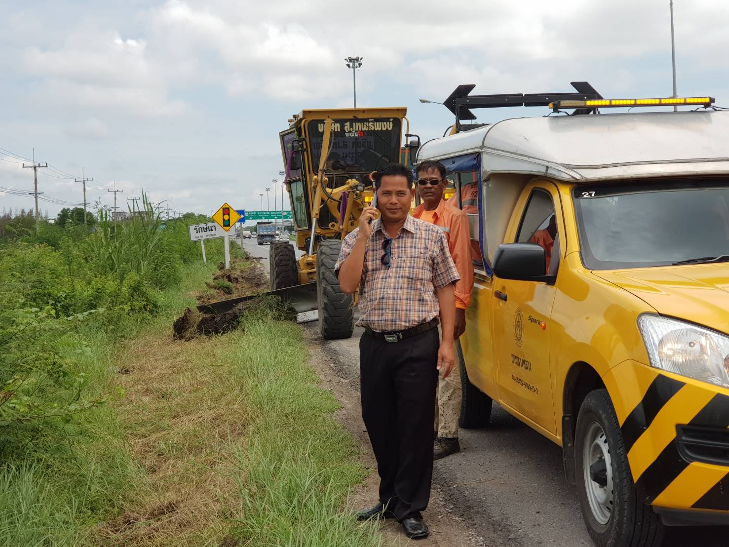 โดยนายฉลาดนภ เปิดเผยว่า ถนนดังกล่าว เป็นเส้นทางวิ่งผ่าน ของรถบรรทุกดินทรายจากอยุธยาเข้ากรุงเทพฯ และมีดินตกลงลงมา นานวันเข้ากลายเป็นแนว คันดินริมไหล่ทาง จนมีต้นหญ้าขึ้นปกคลุม และเมื่อฝนตกลงมา จึงเป็นแนวกีดขวางทางน้ำ ทำให้น้ำฝนไม่สามารถ ไหลลงลำรางน้ำ หรือทุ่งนาสองข้างทางได้อย่างสะดวก และทำให้เกิดน้ำขังในบางจุด ถือเป็นอันตรายอย่างมากกับผู้ใช้รถใช้ถนน ซึ่งที่ผ่านมามีการแก้ไขปัญหาเฉพาะหน้ามาโดยตลอด แต่ด้วยจำกัดที่งบประมาณ ทำให้ไม่สามารถแก้ไขได้หมดสิ้นและในครั้งนี้ภาคเอกชนของบริษัทดังกล่าว ได้เสนอให้ความช่วยเหลือ นำเครื่องจักรมาดำเนินการให้ เพื่อทำความดีและแบ่งเบาภาระทางราชการ รวมถึงเป็นการสร้างความปลอดภัยในการเดินทาง ให้กับพี่น้องประชาชนและนักท่องเที่ยว โดยเฉพาะในหน้าฝนหรือช่วงมรสุมพัดเข้ามาในพื้นที่