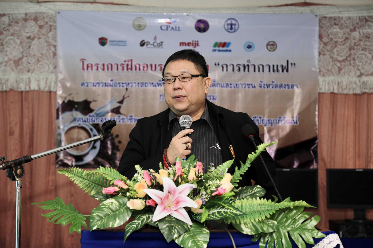 โดยมีนายอโนชา เชี่ยวชล นักวิชาการอบรมและฝึกวิชาชีพชำนาญพิเศษ หัวหน้าสถานแรกรับเด็กและเยาวชน สถานพินิจและคุ้มครองเด็กและเยาวชนจังหวัดสงขลากล่าวให้การต้อนรับ โอกาสนี้ นายณรงค์ศักดิ์ ภูมิศรีสอาด กล่าวว่าบริษัทซีพีออลล์และวิทยาลัยเทคโนโลยีปัญญาภิวัฒน์มีนโยบายให้การสนับสนุนด้านการศึกษาแก่เด็กและเยาวชนในสังกัดหน่วยงานของกรมพินิจและคุ้มครองเด็กและเยาวชนและกรมคุมประพฤติ เพื่อให้โอกาสทางการศึกษา มีรายได้ระหว่างเรียน และมีทักษะวิชาชีพการทำกาแฟ