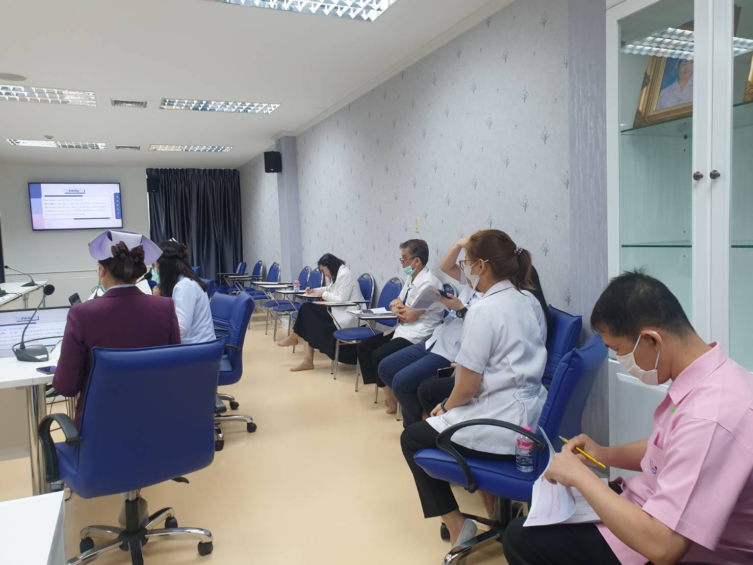 กลุ่มงานบริการด้านปฐมภูมิและองค์รวมโรงพยาบาลสามพราน นำเสนอเรื่องปัจจัยที่มีผลต่อภาวะโภชนาการของผู้สูงอายุติดเตียงอำเภอสามพราน ปี2563