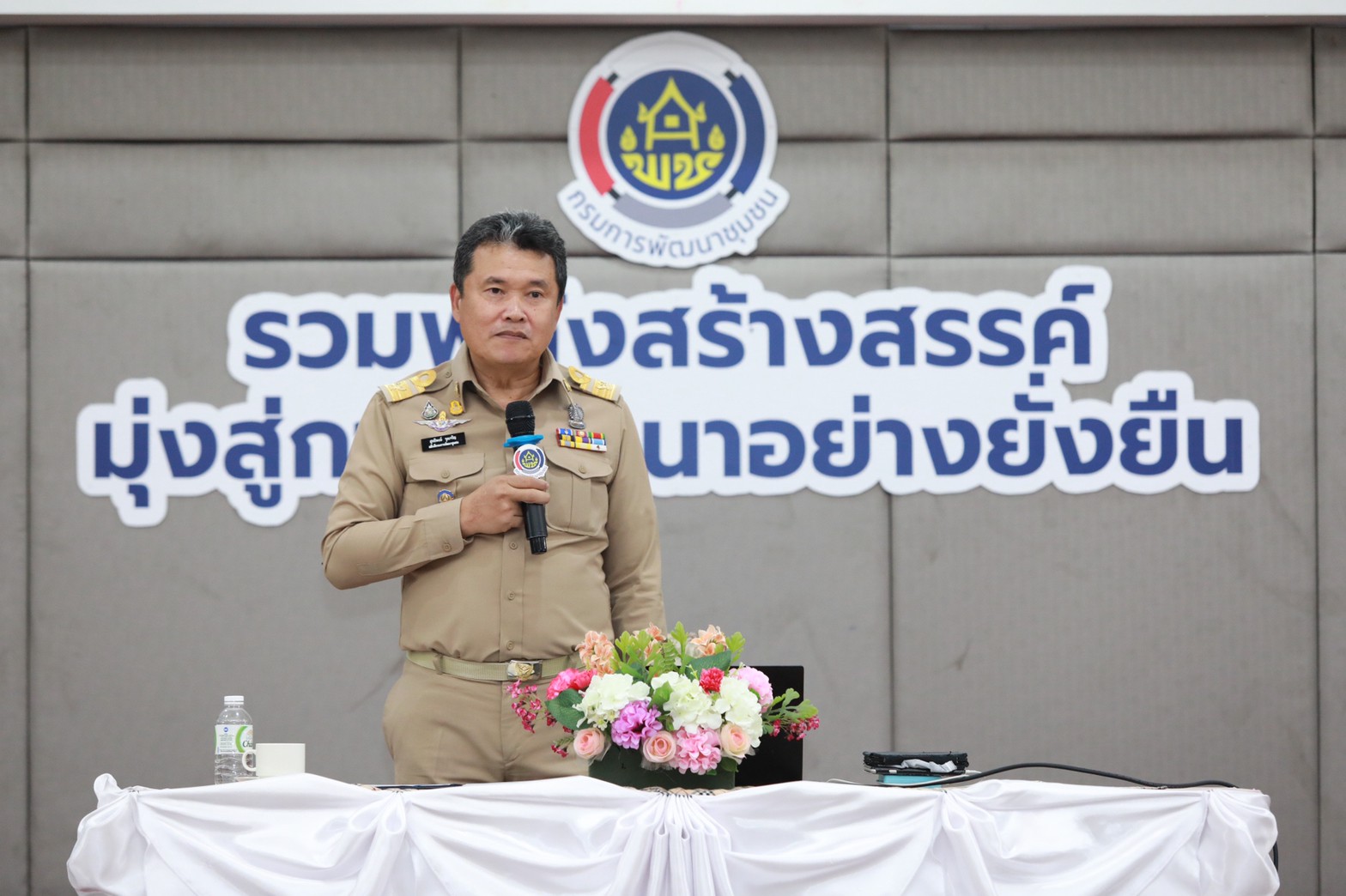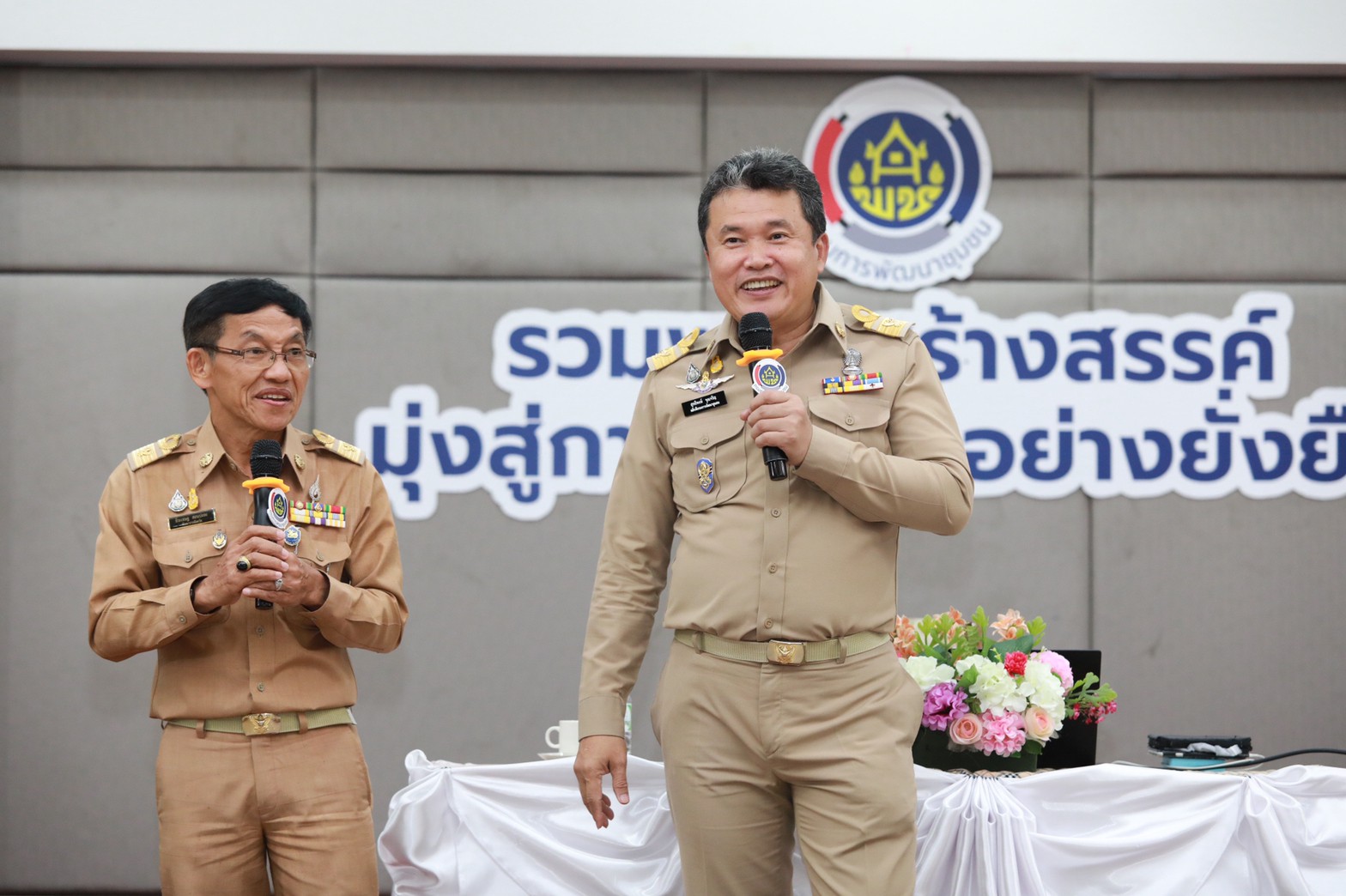 อธิบดีกรมการพัฒนาชุม กล่าววว่ากรมการพัฒนาชุมชน ให้ความสำคัญกับบุคลากรทุกตำแหน่งต่างเป็นกลไกในการสานประโยชน์สู่ประชาชน ขอฝากหลักการที่จะสร้างหมุดหมายของความสำเร็จในการทำงานทุกประการให้สำเร็จลุล่วง คือ ต้องมีใจที่มุ่งมั่นปรารถนาในการสร้างคุณประโยชน์อย่างแรงกล้า ตลอดจนมีความรู้และทัศนคติที่ดีจะนำสู่ความสำเร็จในภารกิจ โดยเฉพาะอย่างยิ่งงานเพื่อพี่น้องประชาชน อีกประการหนึ่งที่สำคัญคือการดำเนินการเชิงมวลชนสัมพันธ์ การประชาสัมพันธ์ในภารกิจของกรมการพัฒนาชุมชนทุกมิติ ต้องนำสู่การรับรู้ของสังคม ให้น้ำหนักกับทุกภารกิจเด่นชัดเท่ากัน