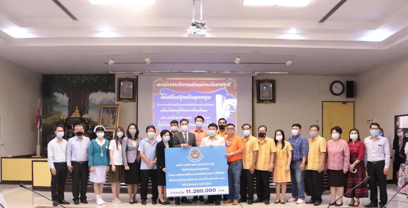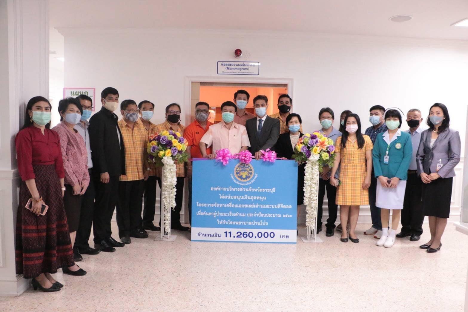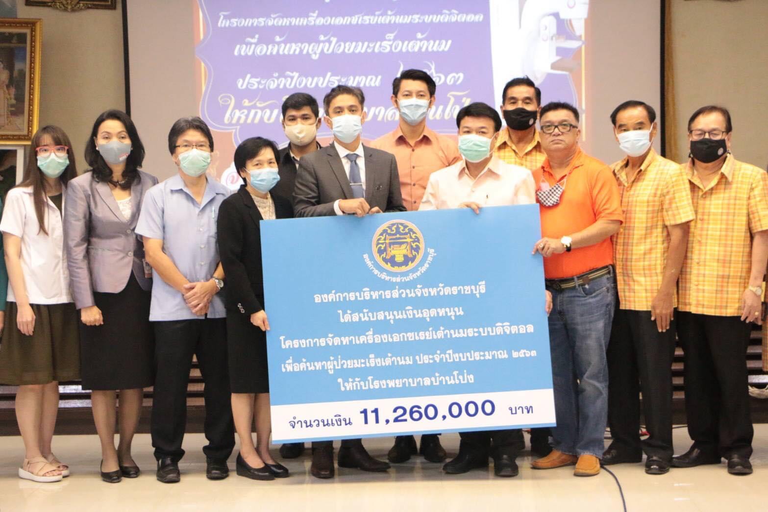 เพื่อค้นหาผู้ป่วยมะเร็งเต้านม ให้กับโรงพยาบาลบ้านโป่ง จำนวนเงิน 11,260,000 บาท (สิบเอ็ดล้านสองแสนหกหมื่นบาทถ้วน) เพื่อใช้ในการให้บริการผู้ป่วยและประชาชน โดยมีคณะผู้บริหาร สมาชิกสภาองค์การบริหารส่วนจังหวัดราชบุรี หัวหน้าส่วนราขการ คณะผู้บริหารของโรงพยาบาลบ้านโป่ง แพทย์ พยาบาล ร่วมเป็นเกียรติในพิธีดังกล่าว ณ บริเวณหน้าห้องเอกซเรย์ อาคารผู้ป่วยนอก โรงพยาบาลบ้านโป่ง อ.บ้านโป่ง จ.ราชบุรี.