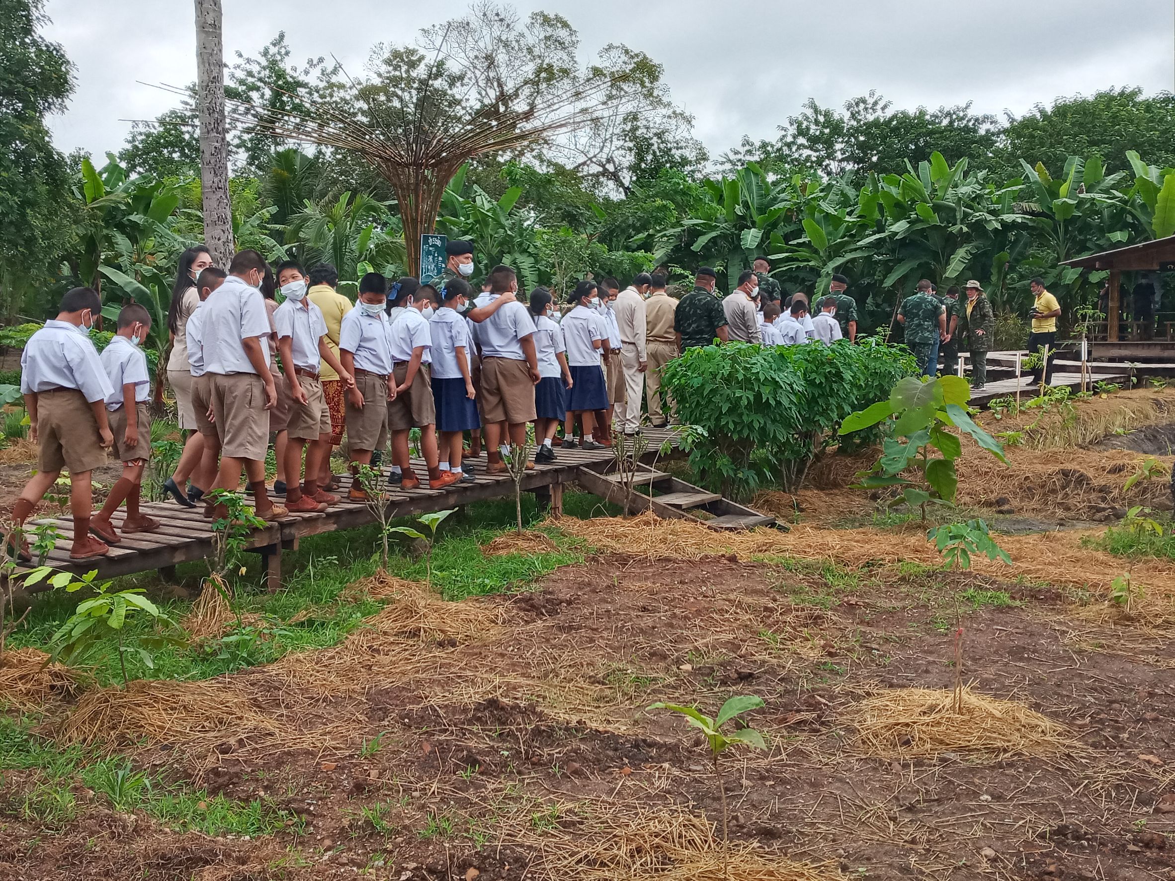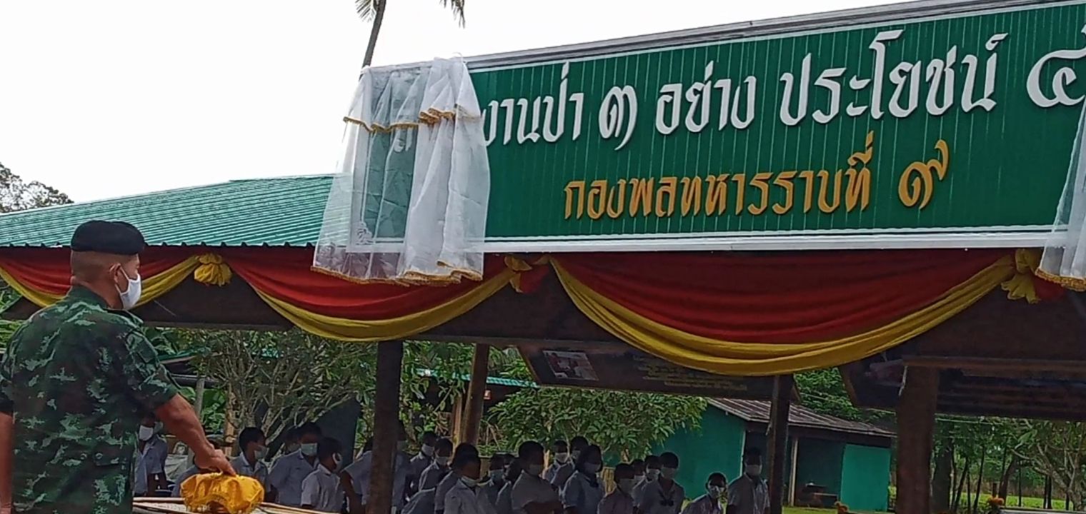 พลตรีฐกัด หลอดศิริ ผู้บัญชาการกองพลทหารราบที่ 9 ประธานเปิดศูนย์การเรียนรู้ ป่า 3 อย่าง ประโยชน์ 4 อย่าง พร้อมมอบกางเกงวอร์มให้กับนักเรียนและมอบพันธุ์ไม้ให้กับผู้นำท้องถิ่น
