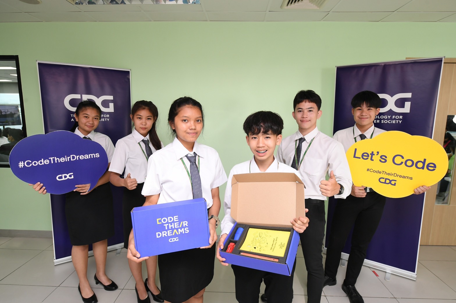 ดร.วิทวัส ทิพย์สุวรรณ รองคณบดีฝ่ายกิจการนักศึกษา คณะครุศาสตร์อุตสาหกรรม มหาวิทยาลัยเทคโนโลยีพระจอมเกล้าพระนครเหนือ พร้อมด้วยนายนาถ ลิ่วเจริญ ประธานกรรมการบริหารกลุ่มบริษัทซีดีจี และนายวัฒนะ เผือกเสริฐ รองผู้จัดการทั่วไปบริษัทซีพีออลล์ จำกัด(มหาชน)และผู้อำนวยการศูนย์การเรียนปัญญาภิวัฒน์ เปิดโครงการ CDG Code Their Dreams พัฒนาหลักสูตรการเรียนการสอนโค้ดดิ่ง สำหรับนักเรียนระดับประกาศนียบัตรวิชาชีพ (ปวช.) ประเภทวิชาพณิชยกรรม สาขาวิชาธุรกิจค้าปลีก สาขางานธุรกิจค้าปลีกร้านสะดวกซื้อ