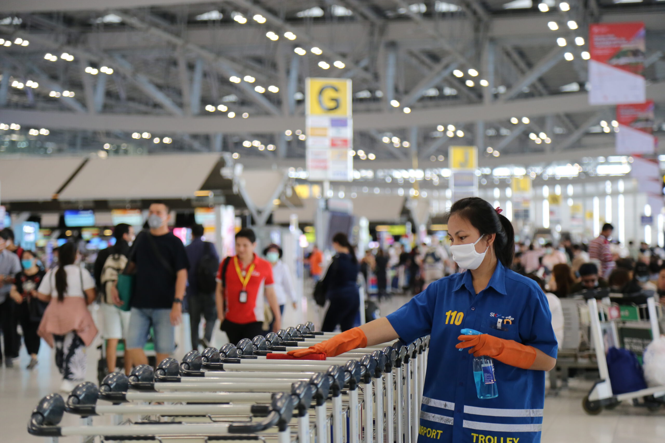 *****น.ท.สุธีรวัฒน์ กล่าวเพิ่มเติมว่า ทสภ. ยังคงปฏิบัติหน้าที่อย่างเต็มกำลังความสามารถทั้งในด้านการสนับสนุนภารกิจการคัดกรองผู้โดยสารที่ได้รับอนุญาตให้เข้ามายังประเทศไทย ตลอดจนประสานงานเรื่องการส่งต่อผู้โดยสารเข้าเกณฑ์สอบสวนโรค (PUI) เพื่อเข้ารับการตรวจรักษาที่โรงพยาบาลภายนอก สำหรับการให้บริการและการอำนวยความสะดวกผู้โดยสารในช่วงการแพร่ระบาดฯ ทสภ. ได้ปฏิบัติตามมาตรการควบคุมการแพร่ระบาดของโรคติดเชื้อไวรัสโคโรนา 2019 (COVID-19) ซึ่งเป็นไปตามแนวทางการดำเนินงานที่สำนักงานการบินพลเรือนแห่งประเทศไทยได้กำหนดอย่างเคร่งครัด อาทิ ตั้งจุดคัดกรองบุคคลที่เข้ามาใช้บริการภายในอาคารท่าอากาศยาน โดยต้องสวมหน้ากากอนามัย และผ่านการตรวจวัดอุณหภูมิร่างกาย จัดแอลกอฮอล์ความเข้มข้นไม่น้อยกว่า 70% สำหรับล้างมือไว้ให้บริการอย่างเพียงพอ จัดพื้นที่พักคอย และจุดยืนรอรับบริการตามสถานที่ต่าง ๆ โดยเว้นระยะห่างทางสังคมอย่างน้อย 1 เมตร พร้อมจัดทำป้ายสัญลักษณ์ เครื่องหมายบนพื้น รวมทั้งการประกาศผ่านระบบเสียงประชาสัมพันธ์ตลอดเวลา รวมถึงให้ความสำคัญใส่ใจดูแลรักษาความสะอาด โดยเพิ่มรอบความถี่ในการทำความสะอาดทุกพื้นที่แบบ Deep Cleaning อย่างต่อเนื่องทุกวันตลอด 24 ชั่วโมง โดยเน้นการใช้น้ำยาทำความสะอาดฆ่าเชื้อสูตรของสถาบันบำราศนราดูร เช็ดทำความสะอาดบริเวณพื้นที่จุดสัมผัสต่าง ๆ และกำหนดให้เจ้าหน้าที่ผู้ปฏิบัติงานทุกคนต้องสวมหน้ากากอนามัย หรืออุปกรณ์ป้องกันส่วนบุคคล (PPE) ตามภารกิจหน้าที่ เป็นต้น