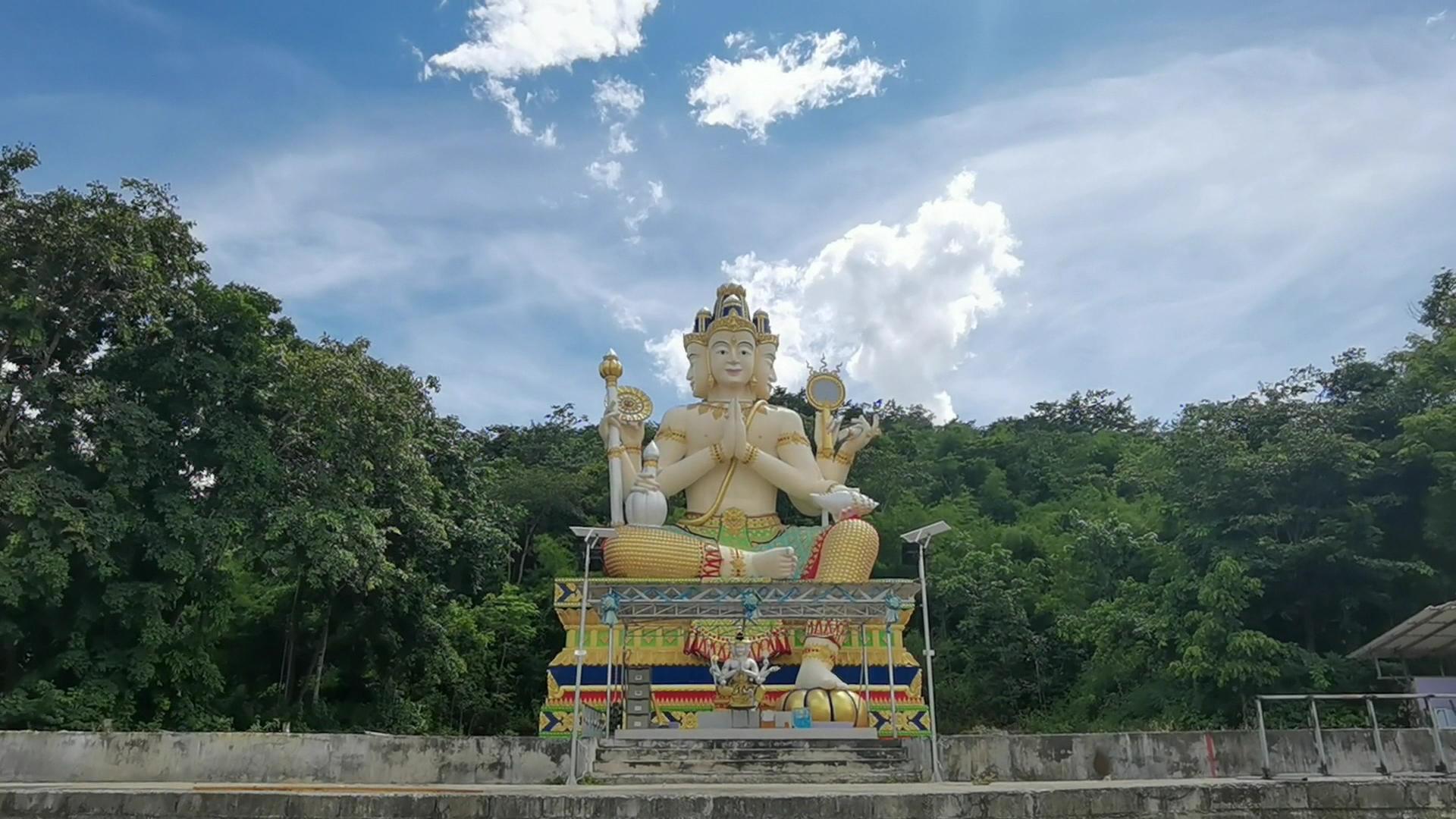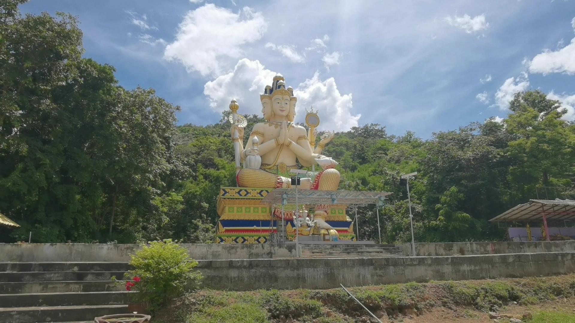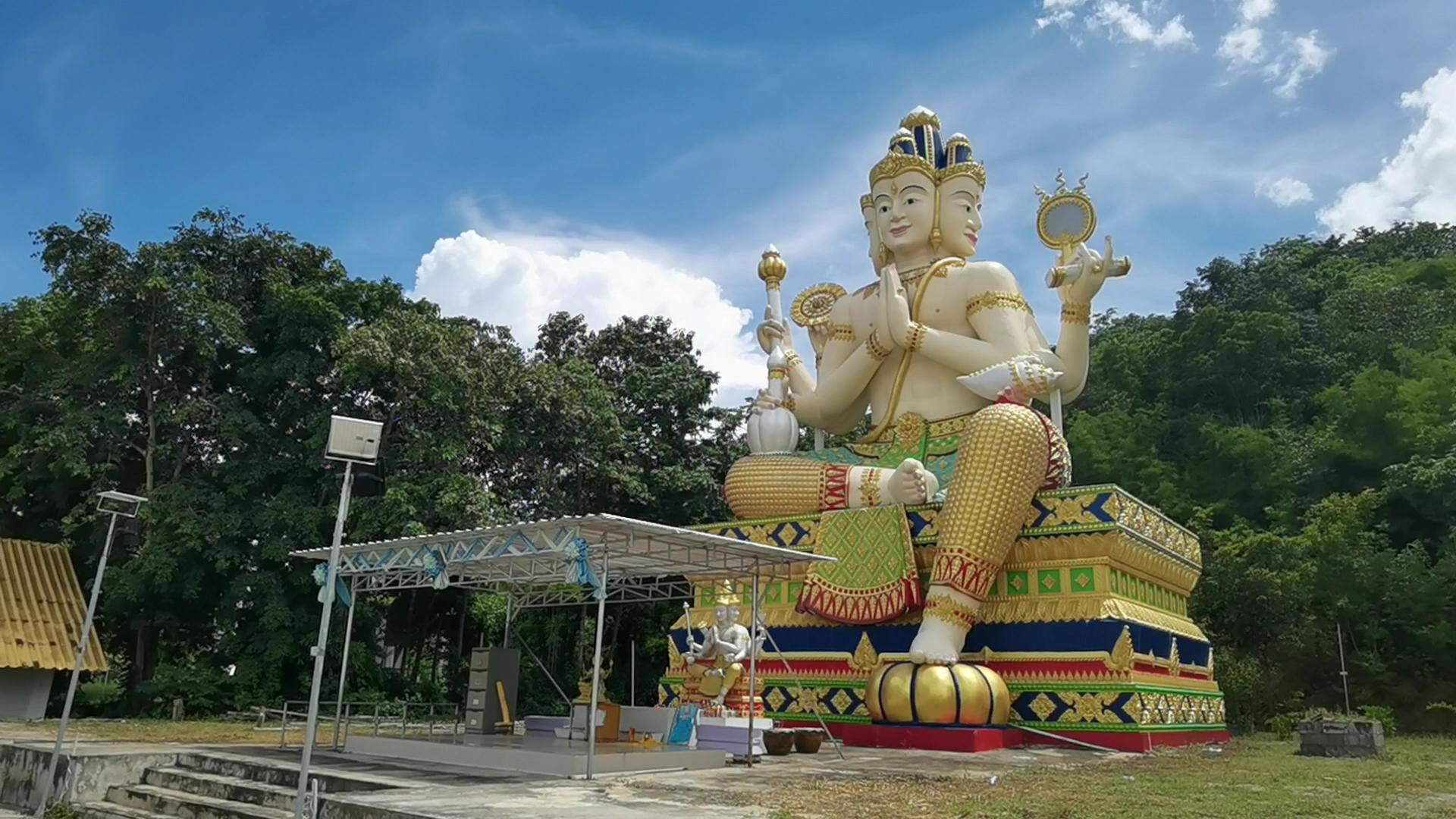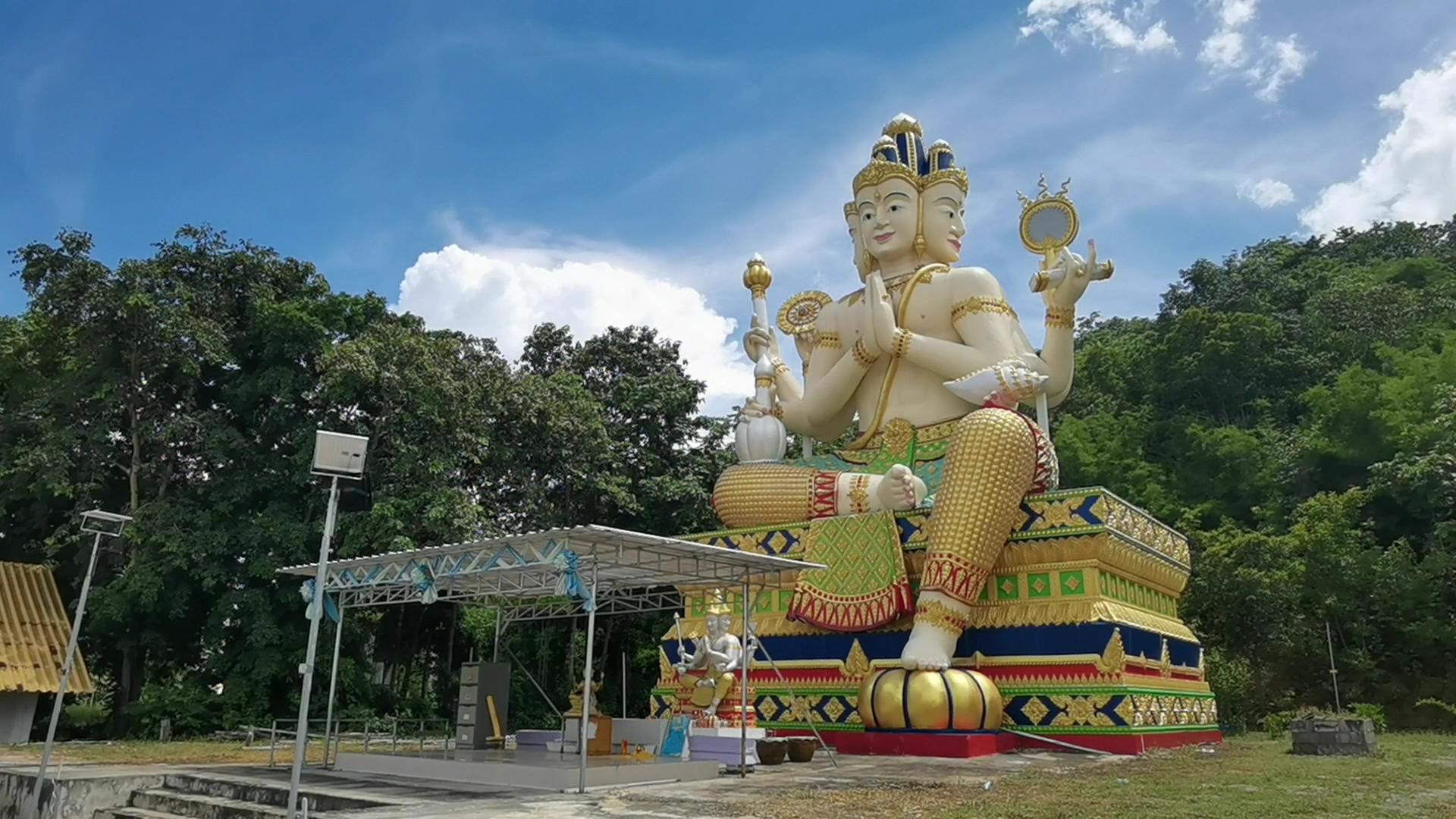 องค์ท้าวสหัมบดีพรหม (ท้าวมหาพรหม) มีขนาดหน้าตักกว้าง 8 เมตร สูง 18 เมตร สีขาวสูงทะลุฟ้าโดยมีขุนเขาเป็นหลังฉากปริมณฑล มี 4 กร พระหัตถ์แรกพนมมือ, พระหัตถ์ขวาถือคนโท, พระหัตถ์ขวาที่ 2 ถือไม้เท้า, พระหัตถ์ขวาที่ 3 คล้องกงจักร, พระหัตถ์ซ้ายที่ 2 ถือหอยสังข์, พระหัตถ์ซ้ายที่ 3 ถือคัมภีร์, พระหัตถ์ซ้ายที่ 4 ถือคันฉ่อง โดยได้รับแรงศรัทธาและเลื่อมใสจากพุทธศาสนิกชนทั้งในและต่างประเทศ โดยเฉพาะชนเชื้อสายจีน ที่เดินทางมาร่วมพิธีกรรมทางศาสนาและสักการะองค์ท้าวสหัมบดีพรหม ณ สถานที่แห่งนี้ ทุกเทศกาล