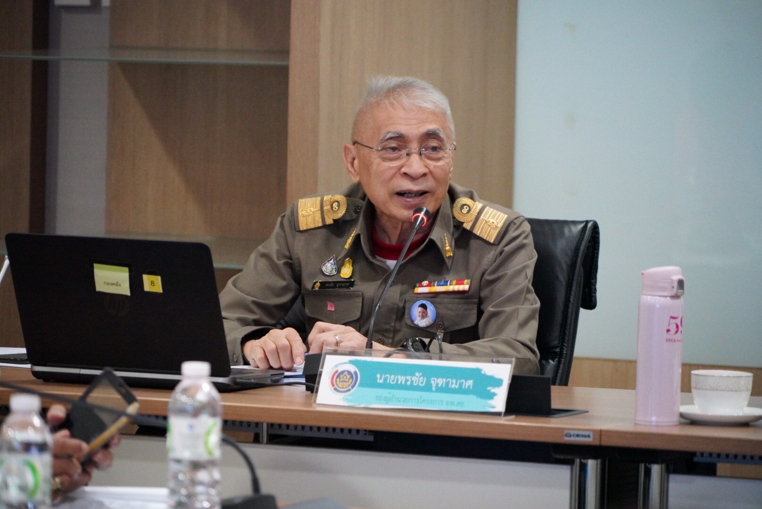 นายพรชัย จุฑามาศ รอง ผอ.โครงการ อพ.สธ. กล่าวว่า ดีใจที่กรมการพัฒนาชุมชน ทำงานที่สอดคล้องกัน เมื่อปี 2561 สมเด็จพระกนิษฐาธิราชเจ้า กรมสมเด็จพระเทพรัตนราชสุดาฯ สยามบรมราชกุมารี มีรับสั่งมาว่า “ให้ดำเนินการไปสู่งานปกติของทุกหน่วยงาน” นั่นคือ ให้เอางานที่ทำอยู่แล้วเป็นงานสนองพระราชดำริได้ งานของ อพ.สธ. เป็นงานที่สืบทอดงานของพระบาทสมเด็จพระเจ้าอยู่หัวฯ รัชกาลที่ 9 ในการรักษาฐานทรัพยากรของประเทศ ที่จะนำไปสู่เศรษฐกิจพอเพียง นั่นคือการพึ่งตนเองได้ ซึ่งต้องมีทรัพยากรที่เป็นกายภาพ ดิน น้ำ พลังงาน ชีวภาพคือ พืช สัตว์ จุลินทรีย์ และเรื่องของวัฒนธรรมภูมิปัญญา วิถีชีวิตของเรา ขนมธรรมเนียมต่าง ๆ เป็นเรื่องของภูมิสังคม การอนุรักษ์ทรัพยากรนั้น ไม่เฉพาะทรัพยากรกายภาพและทรัพยากรชีวภาพเท่านั้น ทรัพยากรทางวัฒนธรรม ภูมิปัญญา ก็เป็นสมบัติที่ต้องรัก เข้าใจ เข้าถึง และพัฒนา ให้เกิดประโยชน์ได้ ในแผนปฏิรูปประเทศในการอนุรักษ์ทรัพยากรธรรมชาติและสิ่งแวดล้อม กำหนดให้มีศูนย์อนุรักษ์พัฒนาทรัพยากรท้องถิ่นตำบลทุกตำบลทั่วประเทศ นั่นคือ มีศูนย์ข้อมูลอยู่ที่ตำบล เพราะท้องถิ่นก็เหมือนประเทศเล็ก ๆ ประเทศหนึ่งที่สามารถบริหารตัวเองได้ เป็นหน้าที่ของกระทรวงมหาดไทย อพ.สธ.จะช่วยในเรื่องวิชาการให้ มหาดไทย 4.0 จะต้องมีฐานข้อมูลทรัพยากรท้องถิ่น ทั้งจากแผนพัฒนาท้องถิ่น แผนพัฒนาจังหวัด รวมทั้งฐานข้อมูล OTOP จากกรมการพัฒนาชุมชน