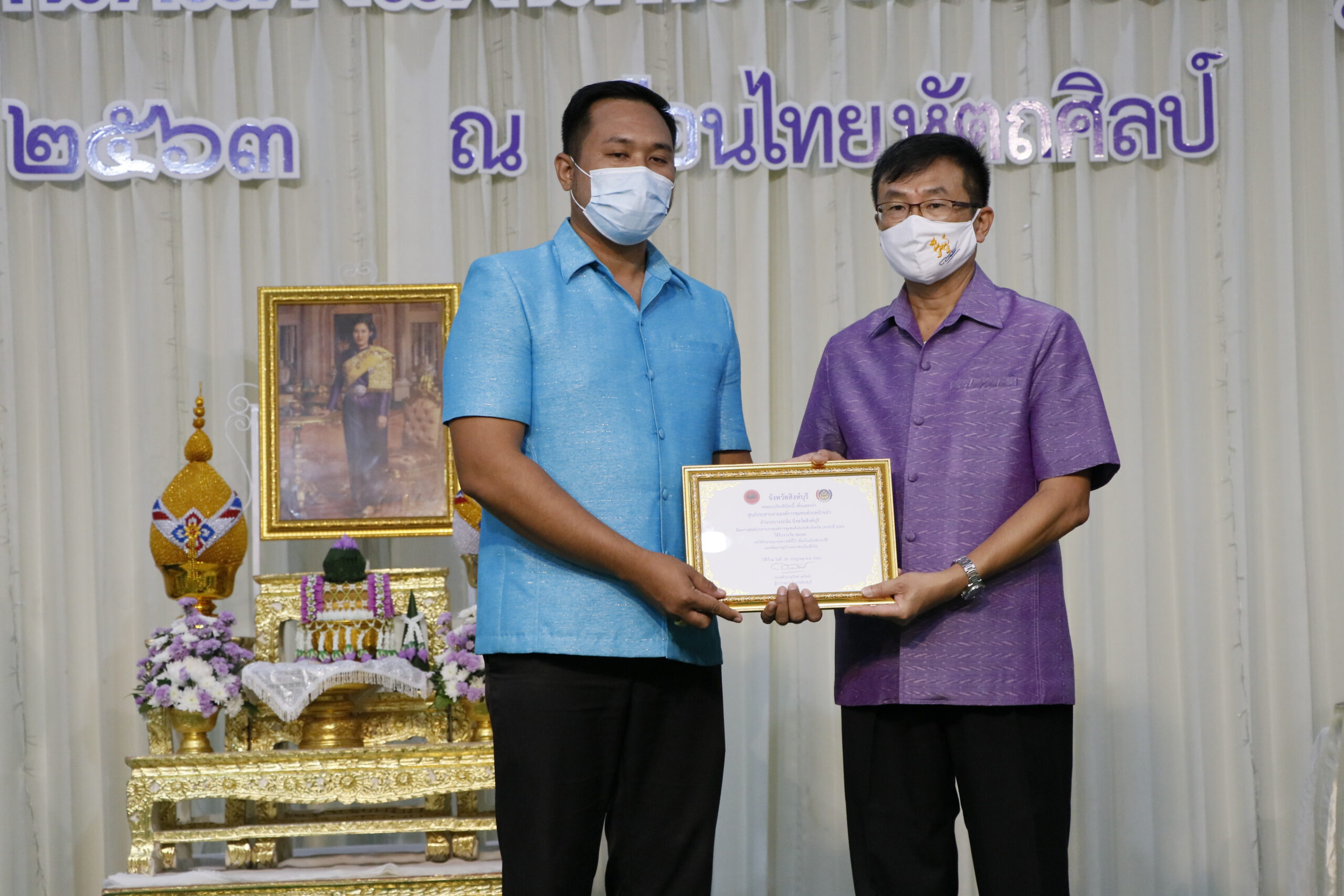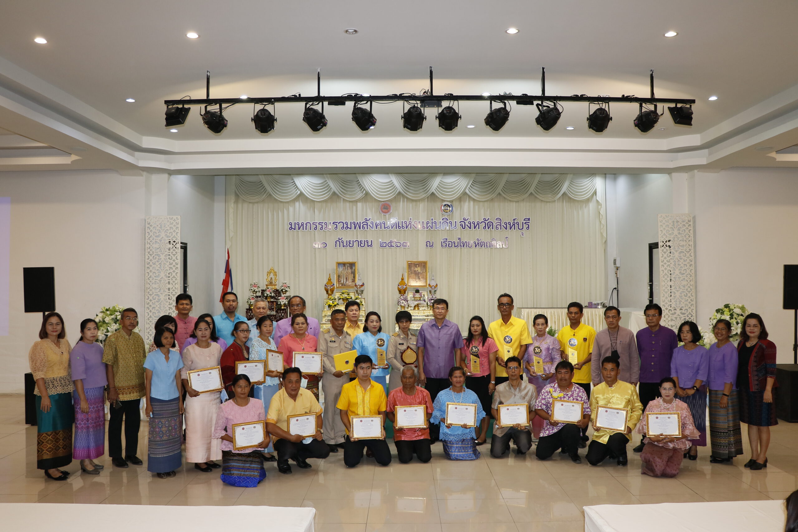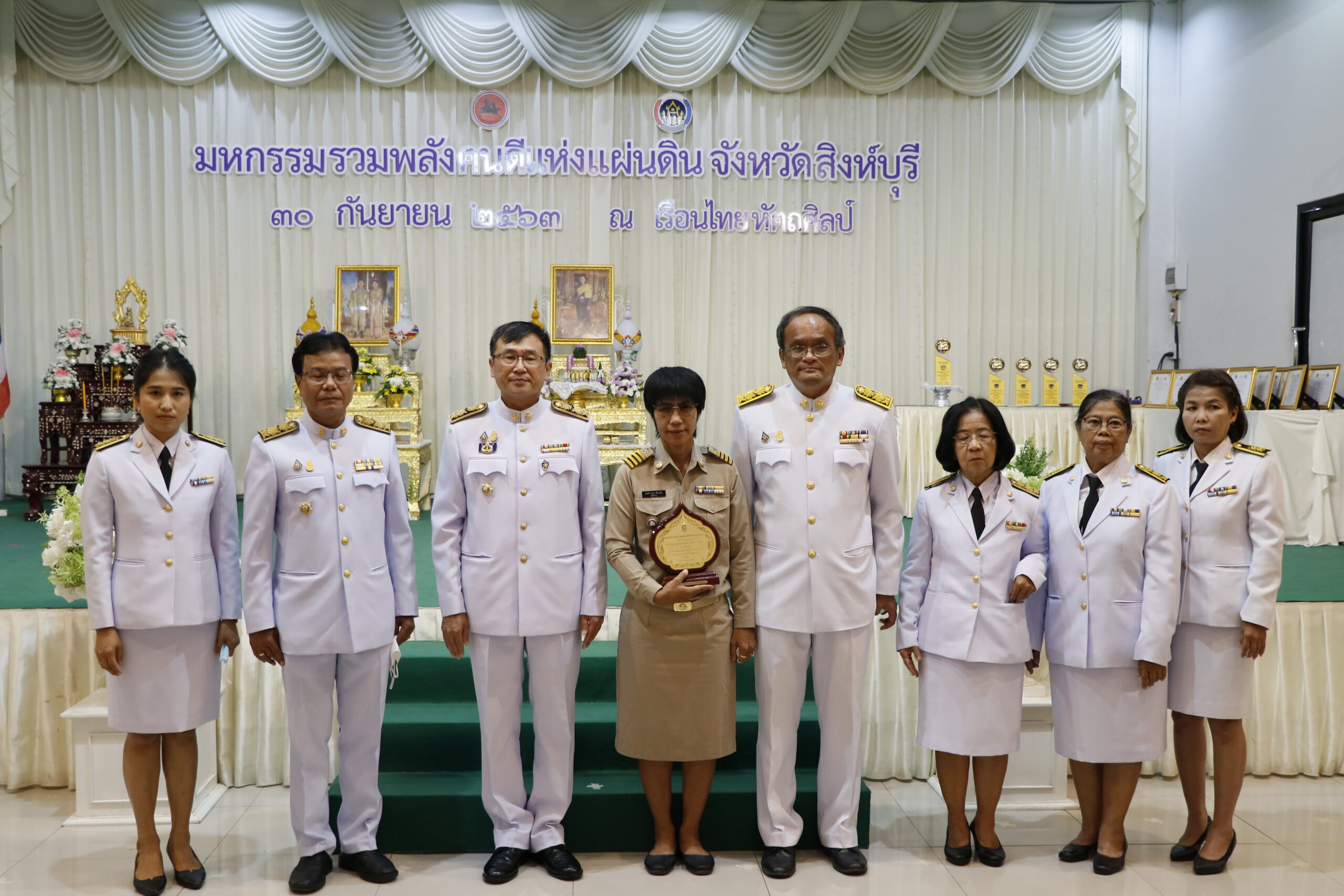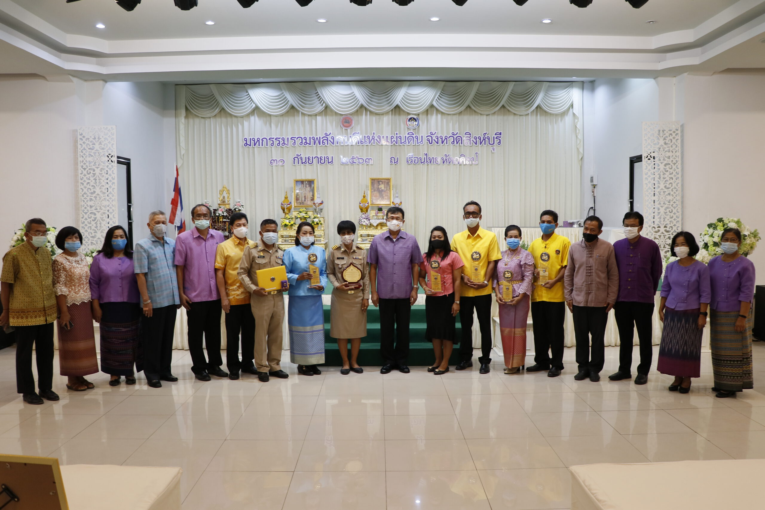 วันที่ 30 กันยายน 2563 นายชำนาญวิทย์ เตรัตน์ ผู้ว่าราชการจังหวัดสิงห์บุรี เป็นประธานเปิดกิจกรรมมหกรรมรวมพลังคนดีแห่งแผ่นดิน ประจำปี 2563 จังหวัดสิงห์บุรี ณ เรือนไทยหัตถศิลป์ โดยมีนายธนวัฒน์ ปิ่นแก้ว พัฒนาการจังหวัดสิงห์บุรี หัวหน้าส่วนราชการ ภาคีเครือข่ายการพัฒนาชุมชน ผู้นำกิจกรมชุมชนเข้าร่วม โดยสำนักงานพัฒนาชุมชนจังหวัดสิงห์บุรี ดำเนินกิจกรรม “มหกรรมรวมพลังคนดีแห่งแผ่นดิน” ประจำปี 2563 เพื่อยกย่องเชิดชูเกียรติ หมู่บ้านและกิจกรรมของผู้นำกลุ่ม/องค์กร เครือข่ายชุมชน คนกองทุนพัฒนาบทบาทสตรี ที่มีผลงานดีเด่น
