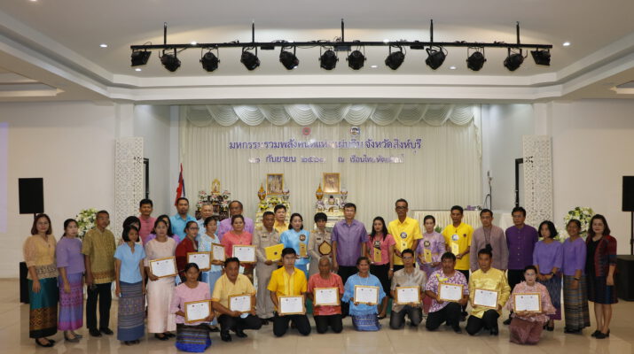 สำนักงานพัฒนาชุมชนจังหวัดสิงห์บุรี จัดพิธีมอบโล่และรางวัลเชิดชูเกียรติผู้นำเครือข่ายชุมชนดีเด่น “มหกรรมรวมพลังคนดีแห่งแผ่นดิน ประจำปี 2563”