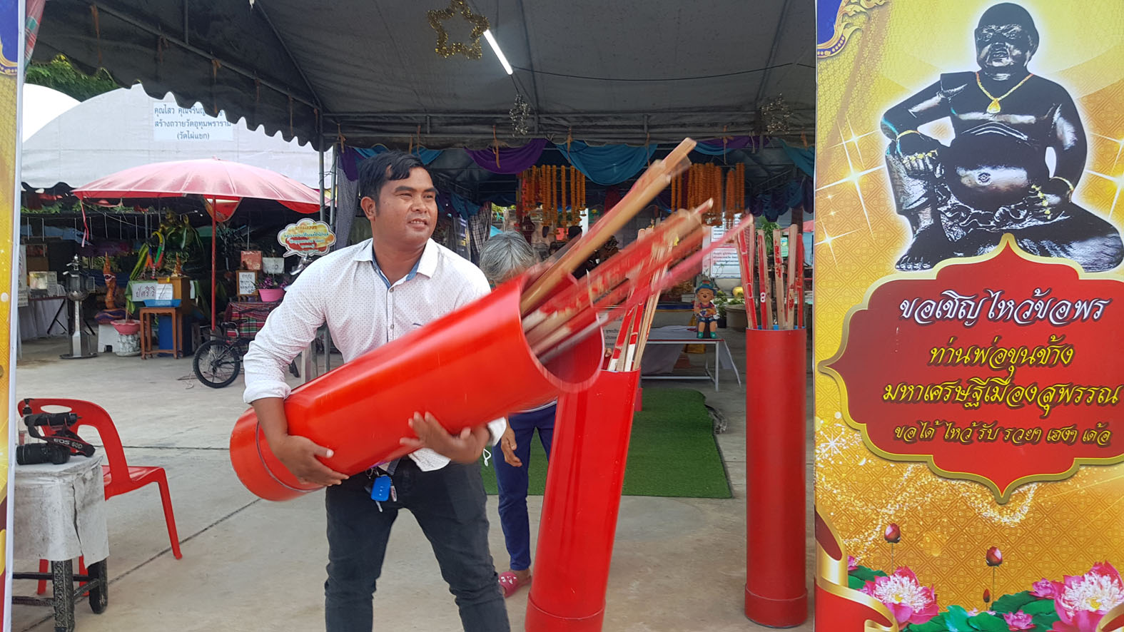 หลังจากบรรดาคอหวยจะขอเลขเด็ดจากไอ้ไข่ด้วยวิธรการเขย่าเซียมซี จุดธูปดูเลขและจุดประทัดแก้บนไอ้ไข่แล้วแล้วยังมีหลวงพ่อสำเร็จทันใจก้าวหน้า และพ่อขุนช้างมหาเศรษฐี ที่เคยให้เลขเด็ดอ่างน้ำมนต์ และจากการเขย่าเซียมซียักษ์ มีคนโชคดีถูกหวยติดต่อกันหลายงวดมาแล้ว ทำให้คนที่โชคดีถูกหวยรับทรัพย์กันไปจำนวนมากต่าง พากันมาร่วมทำบุญ นำสิ่งของ และคณะลิเก มาแก้บนกันอย่างไม่ขาดสาย ซึงวันนี้บรรดานักเสี่ยงโชคที่มาเขย่าเซียมซีต่างได้เลข 07-74 และ 69 ส่วนเลขอ่างน้ำมนต์ พ่อขุนช้างนั้นต้องดูกันเอาเอง
