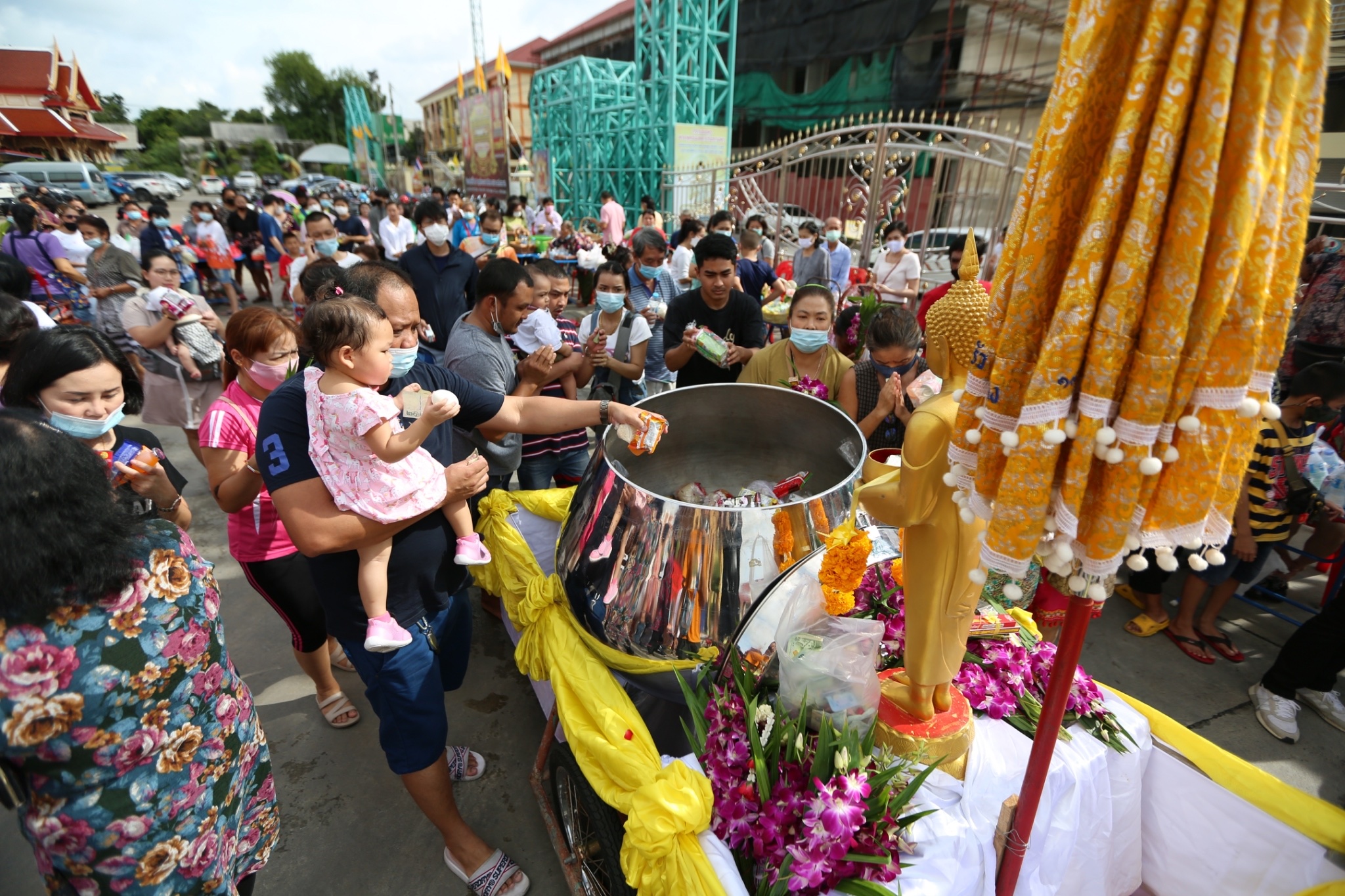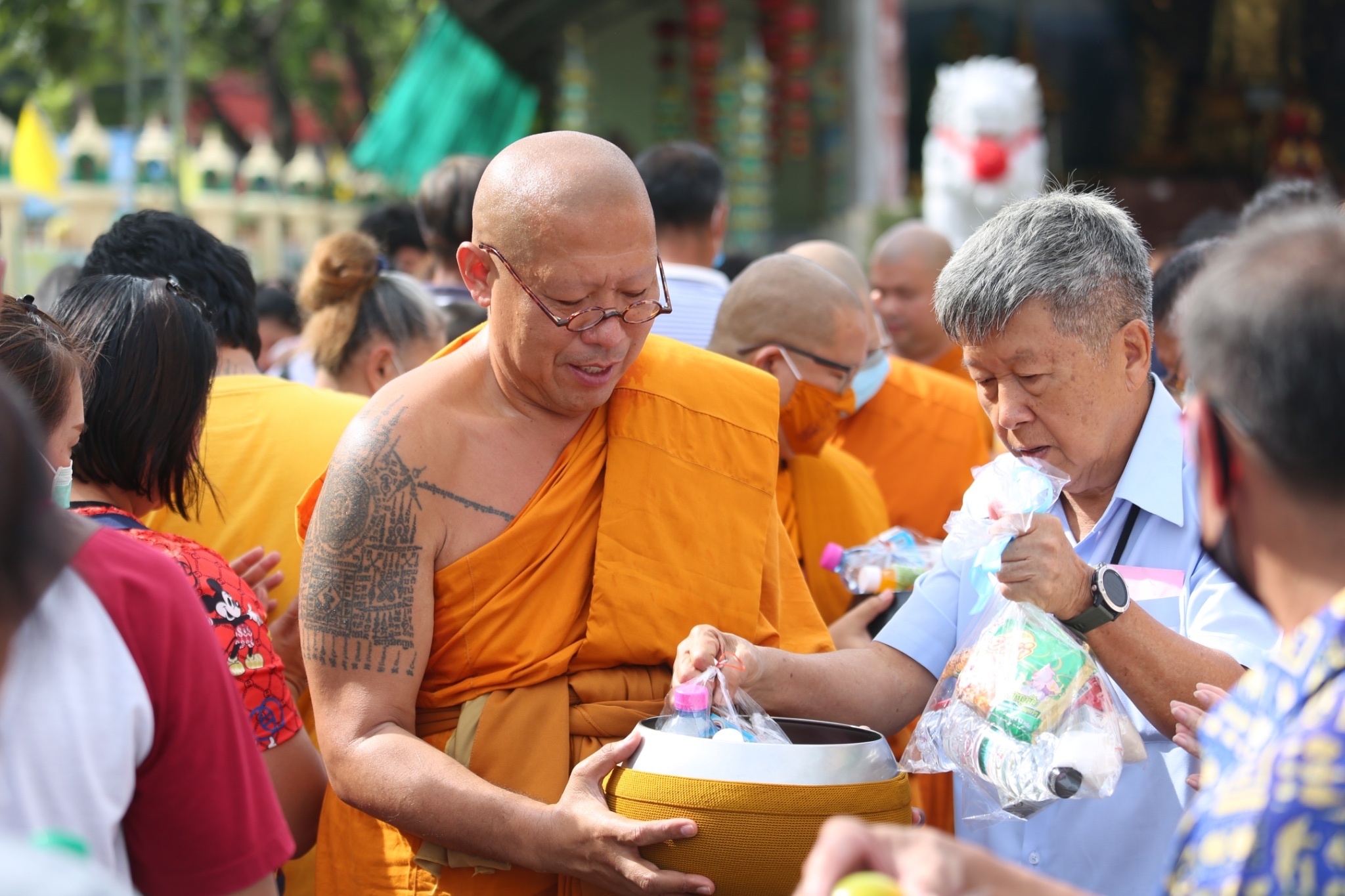 และมีนายสมชาติ สาลีพัฒนา (เฮียเงี๊ยบ เจ้าของร้านก๋วยเตี๋ยวลูกชิ้นปลานายเงี๊ยบ)เป็นประธานฝ่ายฆารวาสร่วมด้วยพุทธศาสนิกชนจำนวนมาก ที่มาทำบุญสืบสานวัฒนธรรมประเพณี ทำบุญตักบาตรวันออกพรรษา เพื่อสืบสานวัฒนธรรมประเพณีของชาวพุทธที่สืบสานต่อกันมาอย่างยาวนาน