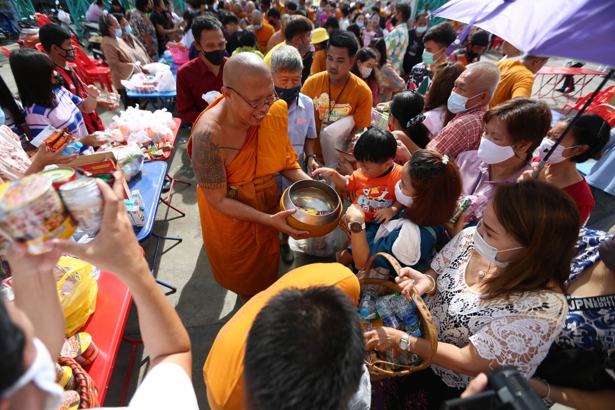 ซึ่งมีพระครูปลัดสิทธิวัฒน์ (หลวงพี่น้ำฝน) เจ้าอาวาสวัดไผ่ล้อม เป็นองค์ประธานฝ่ายสงฆ์ นำคณะพระภิกษุสงฆ์ และสามเณร ออกรับบิณฑบาตข้าวสารอาหารแห้ง จากพุทธศาสนิกชนจำนวนมาก