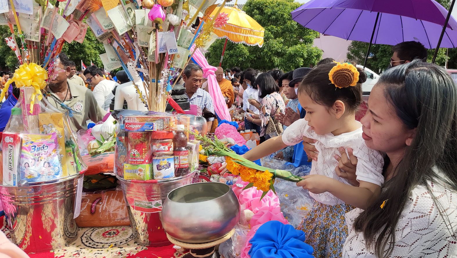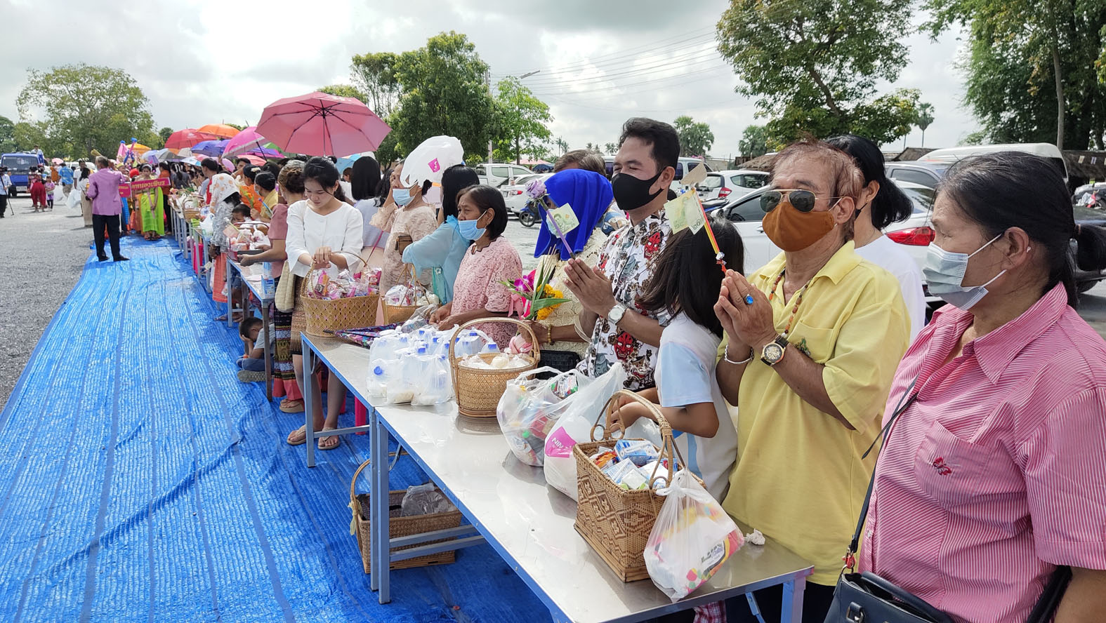 สุพรรณบุรี ชาวพุทธสุพรรณสวมชุดไทยทำบุญตักบาตรเทโววันออกพรรษา