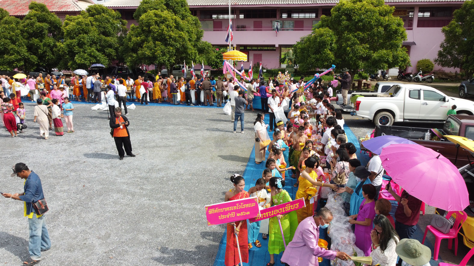 วัดหนองเพียร อ.ศรีประจันต์ จ.สุพรรณบุรี จัดงานประเพณีทำบุญออกพรรษา และสืบสานประเพณีตักบาตรเทโวโรหณะ มีพุทธศาสนิกชน ประชาชนและนักท่องเที่ยว จำนวนมาก ต่างพร้อมใจแต่งกายสวมผ้าไทย ผู้ปกครองพาบุตรหลาน วัยรุ่นหนุ่มสาว หิ้วปิ่นโต นำอาหารคาวหวาน เข้าวัดทำบุญออกพรรษา ตักบาตรเทโว ข้าวสารอาหารแห้ง กันจำนวนมาก เพื่อความเป็นสิริมงคล