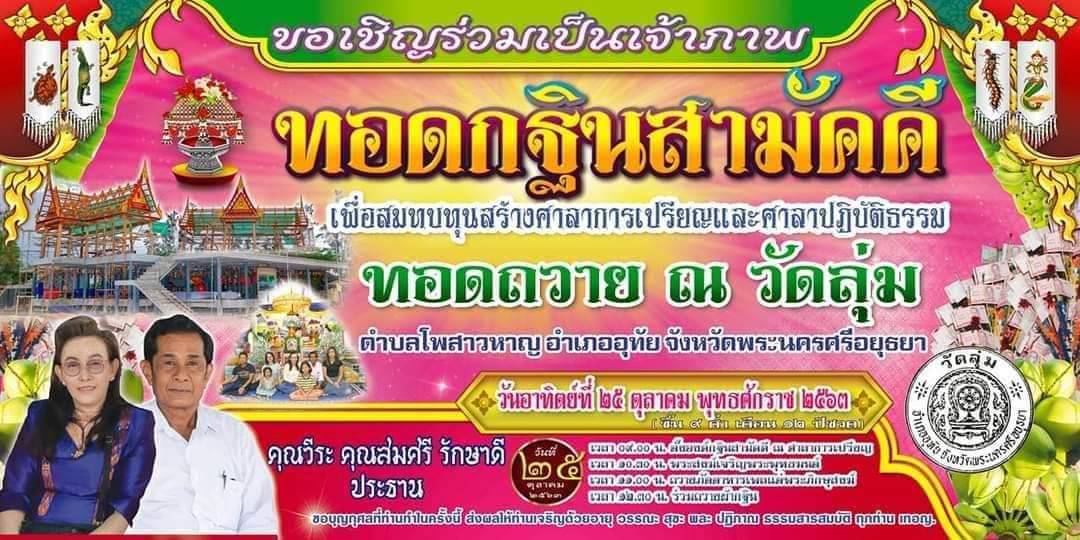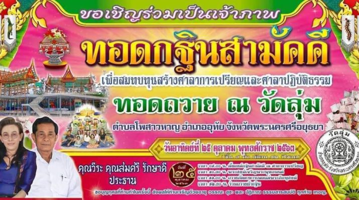 อยุธยา ประชาชน ร่วมทอดกฐินหาเงินช่วยสร้างศาลาวัดลุ่ม
