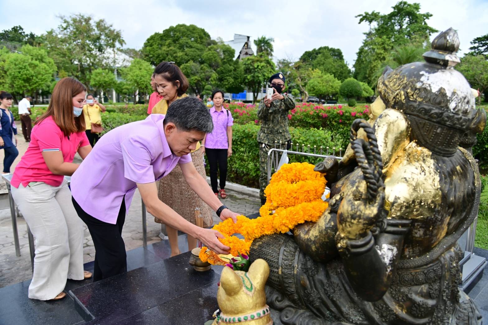 วันนี้ (3 ต.ค.63) นายสุรศักดิ์ เจริญศิริโชติ ผู้ว่าราชการจังหวัดนครปฐม พร้อมด้วย นางวราภรณ์ เจริญศิริโชติ นายกเหล่ากาชาดจังหวัดนครปฐม เดินทางไปยังพระราชวังสนามจันทร์ บูชาพระพุทธรูป ณ ห้องพระเจ้า ชั้น 2 พระราชวังสนามจันทร์ สักการะพระพิฆเนศ ถวายราชสักการะพระบรมราชานุสาวรีย์ รัชกาลที่ 6 และสักการะพระภูมิประจำพระราชวังสนามจันทร์