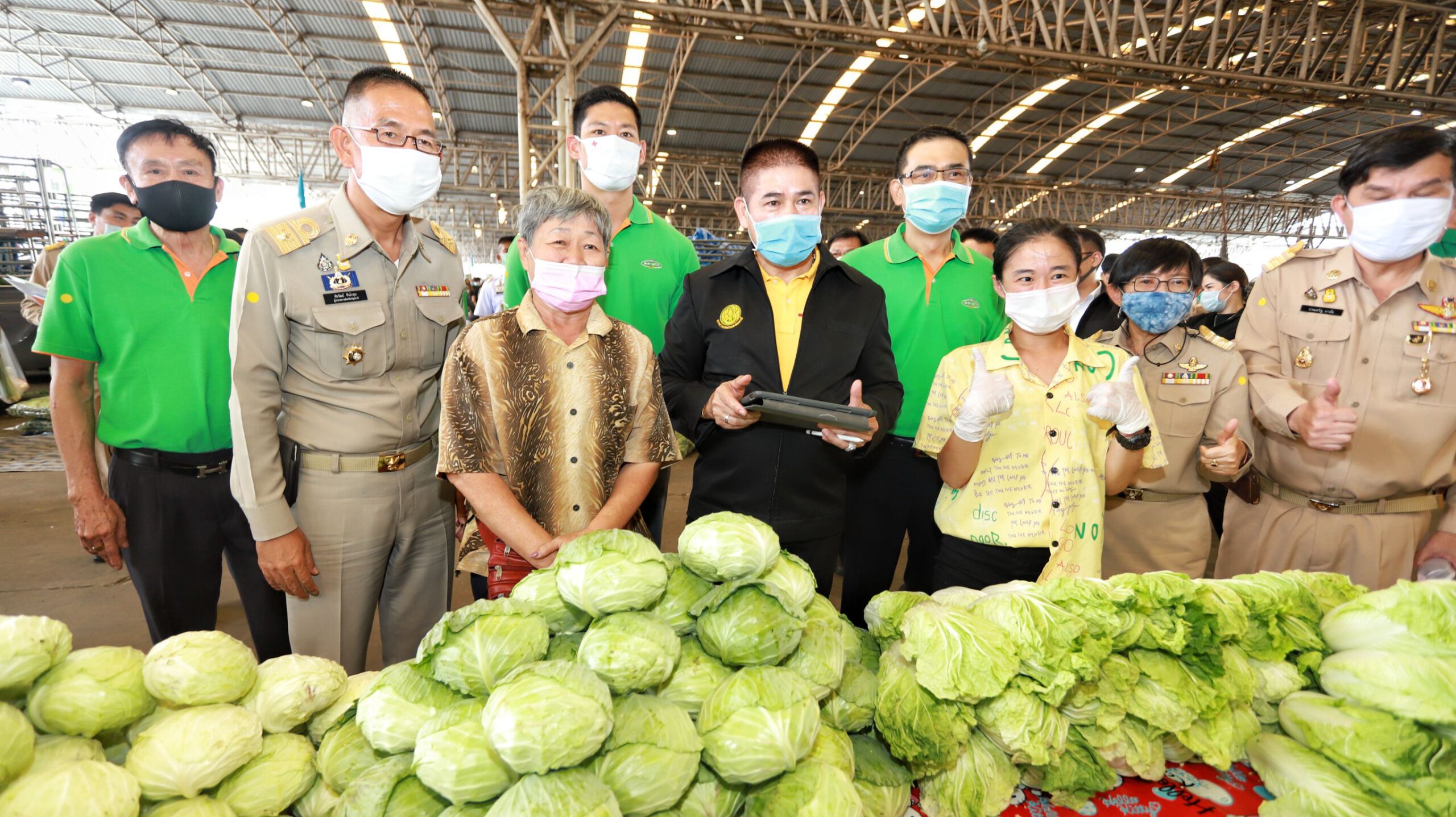 เมื่อเวลา 09.00 น.วันที่5 ต.ค.63 ที่ อาคารอเนกประสงค์ ตลาดไท อำเภอคลองหลวง จังหวัดปทุมธานี ร้อยเอก ธรรมนัส พรหมเผ่า รัฐมนตรีช่วยว่าการกระทรวงเกษตรและสหกรณ์ พร้อมคณะ เยี่ยมชมตลาดไท โครงการผักร่วมใจ โดยมี นายชัยวัฒน์ ชื่นโกสุม ผู้ว่าราชการจังหวัดปทุมธานี นายนิติชัย วิริยานนท์ นายอำเภอคลองหลวง นางสาวธนียา นัยพินิจ หัวหน้าสํานักงานจังหวัดปทุมธานี นายสาคร อำภิน รองนายกอบจ.ปทุมธานี คณะผู้บริหารตลาดไทและหน่วยงานที่เกี่ยวข้องให้การต้อนรับ