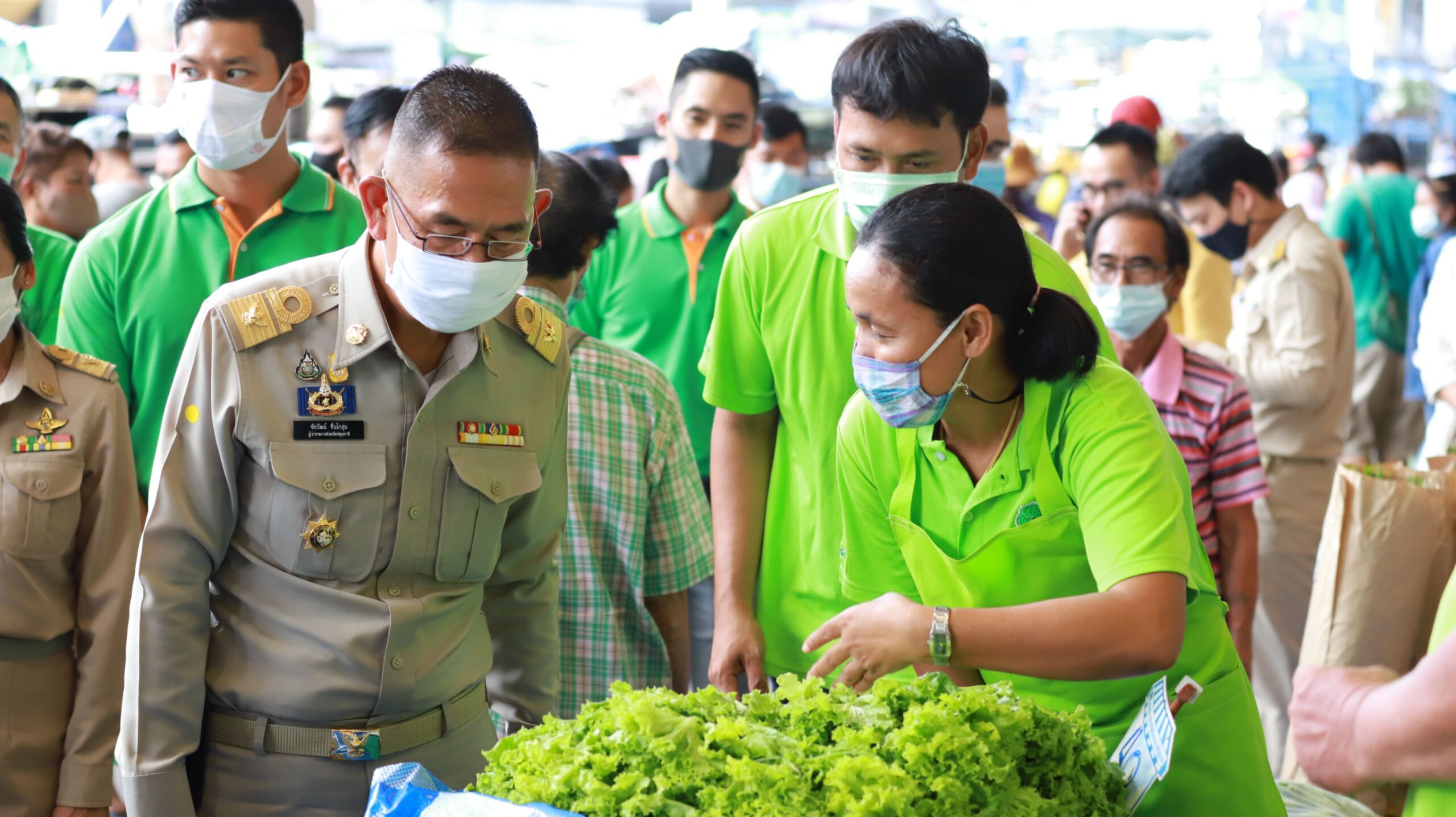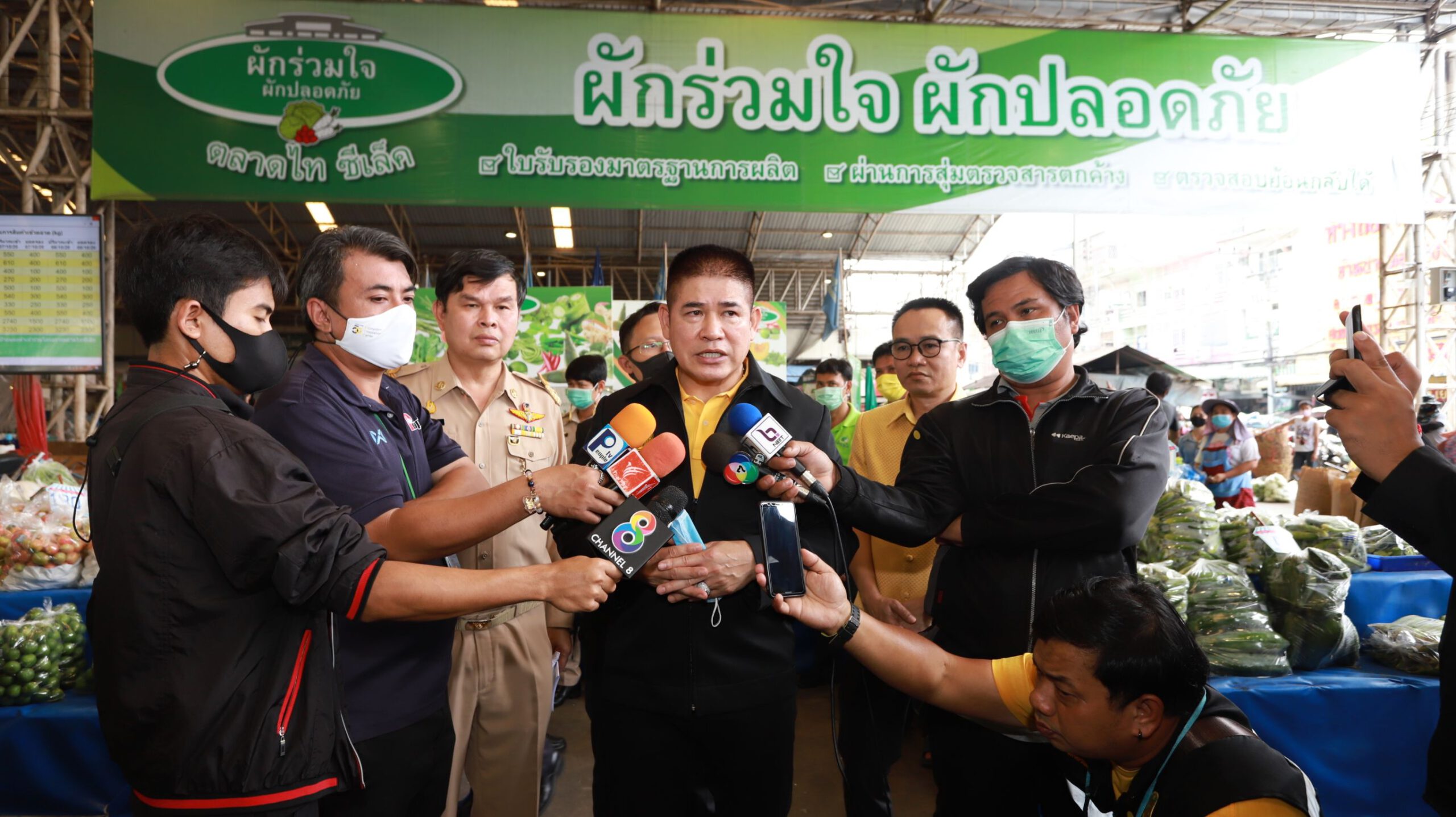 โดยช่วงเช้าที่ผ่านมา นายชัยวัฒน์ ชื่นโกสุม ผู้ว่าราชการจังหวัดปทุมธานี เยี่ยมชมและให้กำลังใจ ผู้ประกอบการร้านค้า ตลาดผัก ตลาดผลไม้ พร้อมด้วย คณะผู้บริหารตลาดไท ตลาดไท จากพื้นที่ว่างเปล่า 450 ไร่ ได้รับการพัฒนาเป็นตลาดกลางค้าส่งสินค้าเกษตรครบวงจรใหญ่ที่สุดในอาเซียน ภายใต้ชื่อ “ตลาดไท” เริ่มทำการค้าขายอย่างเป็นทางการเมื่อ พ.ศ. 2540 บริหารจัดการโดย บริษัท ไทย แอ็กโกร เอ็กซเชนจ์ จำกัด โดยมีวัตถุประสงค์เพื่อเป็นตลาดกลางค้าส่งสินค้าเกษตรที่ให้ผู้ขายและผู้ซื้อได้เข้ามาทำการค้าขายสินค้าเกษตรกันโดยตรงอย่างเสรี และด้วยราคาที่เป็นธรรม ปัจจุบันตลาดไทมีพื้นที่ถึง 542 ไร่ ตั้งอยู่บนถนนพหลโยธิน กม. 42 อำเภอคลองหลวง จังหวัดปทุมธานี เยื้องมหาวิทยาลัยธรรมศาสตร์ ศูนย์รังสิต ด้วยศักยภาพด้านทำเลที่ตั้ง ซึ่งเป็นจุดศูนย์กลางของประเทศ ทำให้ผู้ที่มาใช้บริการสามารถเดินทางเข้าสู่ตลาดไทได้อย่างสะดวกสบายหลายเส้นทาง และเป็นแหล่งสำคัญในการรวบรวมและกระจายสินค้าทางการเกษตรทั้งภายในประเทศและต่างประเทศ โดยแบ่งตลาดตามประเภทของสินค้าอย่างชัดเจนถึง 21 ตลาด ส่งผลให้ตลาดไทเป็นตลาดกลางค้าส่งสินค้าเกษตรครบวงจรใหญ่ที่สุดในอาเซียน
