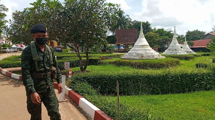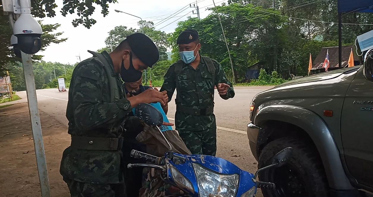โดยเฉพาะพื้นที่บ้านพระเจดีย์สามองค์หมู่ 9 ตำบลหนองลูอำเภอสังขละบุรีซึ่งมีชายแดนติดกับพื้นที่กิ่งอำเภอพญาตองซูอำเภอ kg เมียนมาร์ซึ่งเป็นพื้นที่ที่พบผู้ติดเชื้อโควิค 19 จำนวน 1 ราย จึงถือเป็นพื้นที่ เสี่ยงที่ต้องเฝ้าระวังเสี่ยงที่ต้องเฝ้าระวัง โดยคำสั่งดังกล่าวให้มี ในการระงับใช้ช่องทางเข้าออกของบุคคลยานพาหนะและสิ่งของในช่องทางผ่อนปรนทางการค้าด่านเจดีย์สามองค์ตำบลหนองลูอำเภอสังขละบุรีไปเป็น อีกเป็นเวลา 14 วันนับตั้งแต่วันที่ 6 ตุลาคมถึง 19 ตุลาคม 2563 ทางด้าน พลตรี บรรยง ทองน่วม ผู้บัญชาการกองกำลังสุรสีห์ ได้มอบหมายให้ พันเอกสุทธิพรจุลปานะ ผู้บังคับการหน่วยเฉพาะกิจลาดหญ้ากองกำลังสุรสีห์ เพิ่มความเข้มงวดในการเฝ้าระวังชาวเมียนมาลักลอบข้ามแดนเข้ามาตลอดแนวชายแดนจังหวัดกาญจนบุรีที่มีระยะทางยาวประมาณ 370 กิโลเมตร