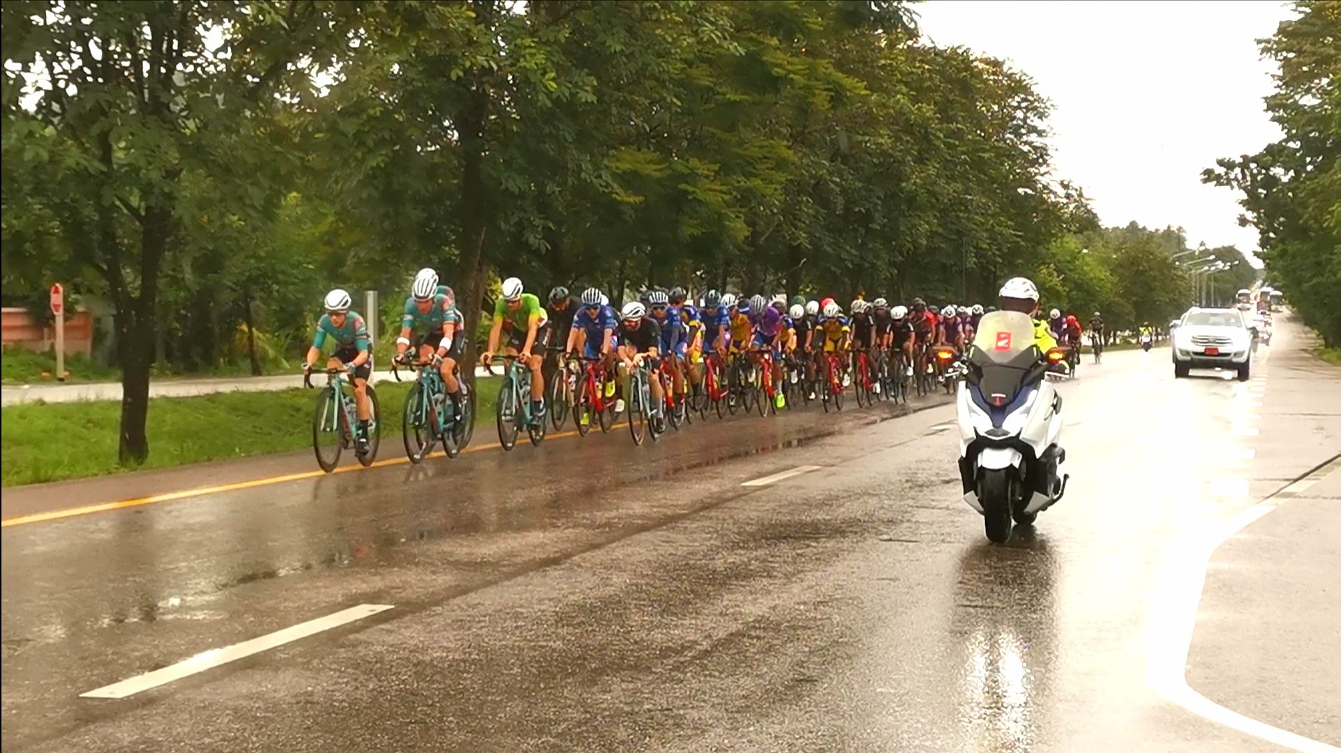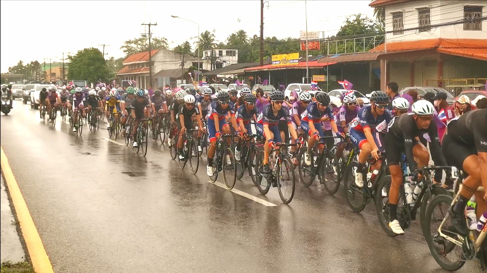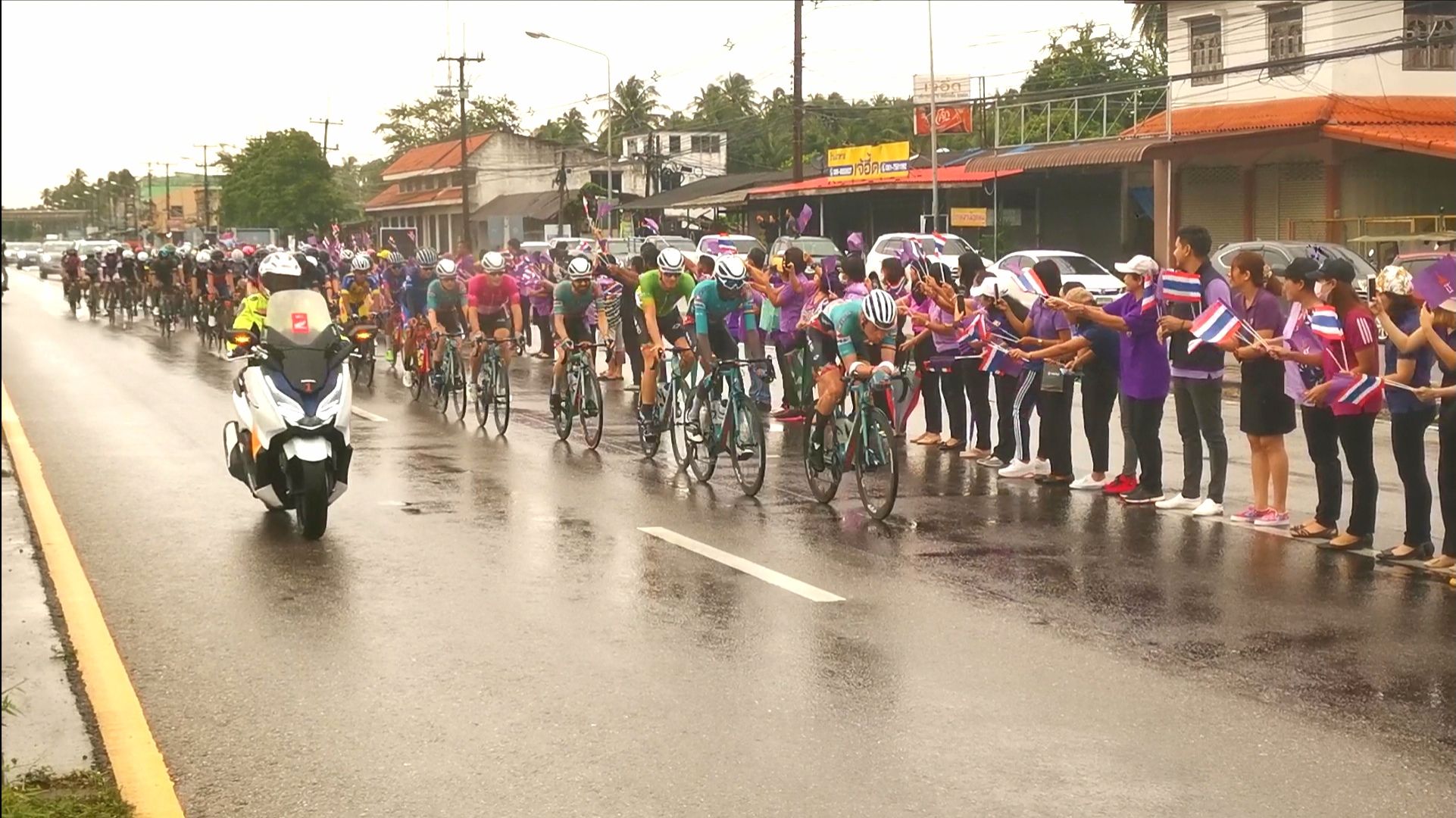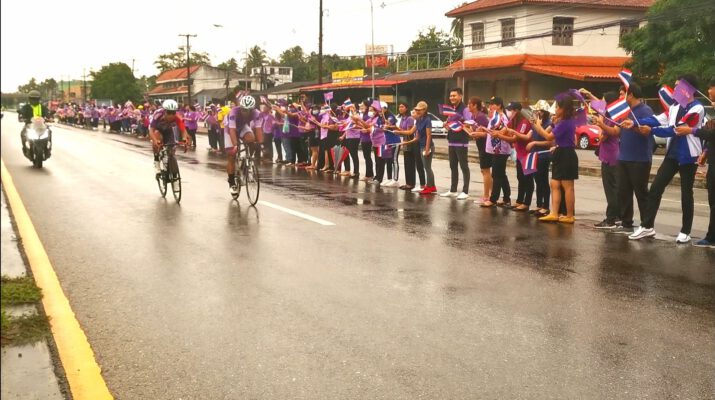 จักรยานทางไกลนานาชาติเฉลิมพระเกียรติ ออกเดินทางถึงบ้านกรูดล้ม 1 คัน ขบวนแข่งกันต่อมุ่งหน้าชุมพร