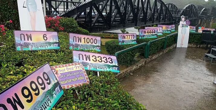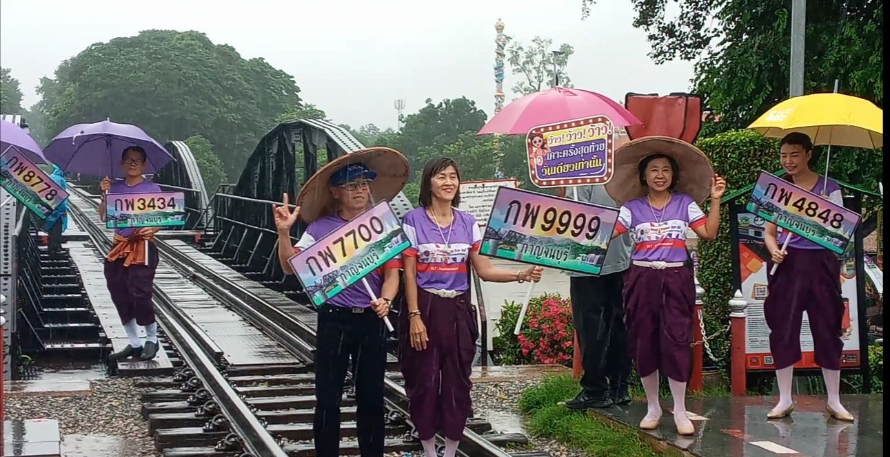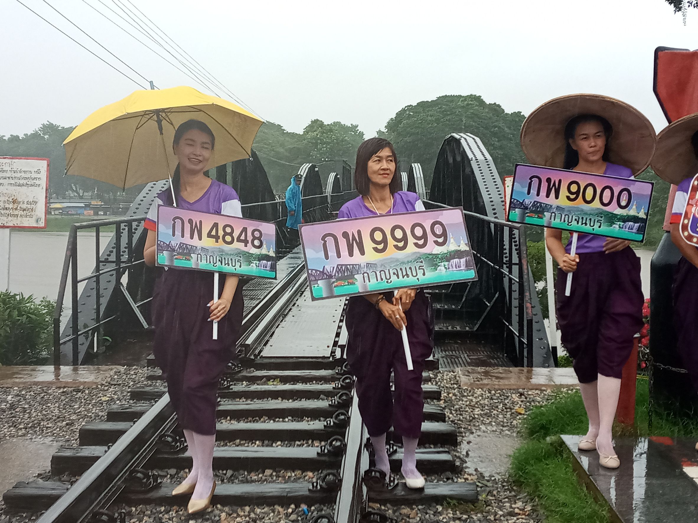 ที่ลานโพธิ์ เชิงสะพานข้ามแม่น้ำแคว ตำบลท่ามะขาม อำเภอเมือง จังหวัดกาญจนบุรี พ.ต.อพงษกร อุปพงษ์ รองผู้บังคับการดำรวจภูธรจังหวัดกาญจนบุรี เป็นประธาน แถลงข่าว พร้อมด้วย น.ส.ดวงแข ธรรมครุฑ ขนส่งจังหวัดกาญจนบุรี ประธานจัดงาน แถลงข่าวการประมูลหมายเลขทะเบียนรถเลยสวย ท่ามกลางสายฝนที่ตกลงมาอย่างหนัก สืบเนื่องจากหมายเลขทะเบียนรถเลขสวยเป็นที่ต้องการและเป็นที่นิยมของประชาชนมีจำนวนจำกัด แต่มีจำนวนผู้ที่ต้องการทะเบียนรถเลขสวยเป็นจำนวนมาก กรมการขนส่งทางบกจึงเกิดแนวคิดในการจัดประมูลหมายเลขทะเบียนรถเลขสวยขึ้น เพื่อให้ทุกคนมีสิทธิ์ได้ครอบครอง ป้ายทะเบียนรถดังกล่าว ดังนั้น จึงได้ออกระเบียบและประกาศ กำหนดกฎเกณฑ์การนำหมายเลขทะเบียนรถเลขสวยซึ่งมีเพียงจำนวน 301 หมายเลขในแต่ละหมวด ออกทำการประมูลเป็นการทั่วไป เพื่อให้เกิดความบริสุทธิ์ ยุติธรรม และโปร่งใส