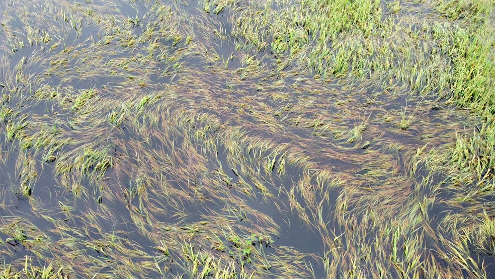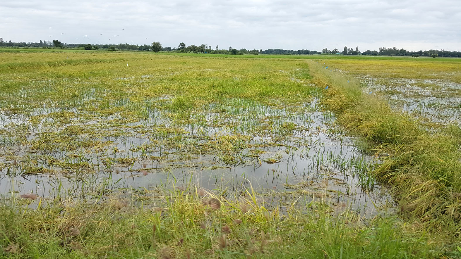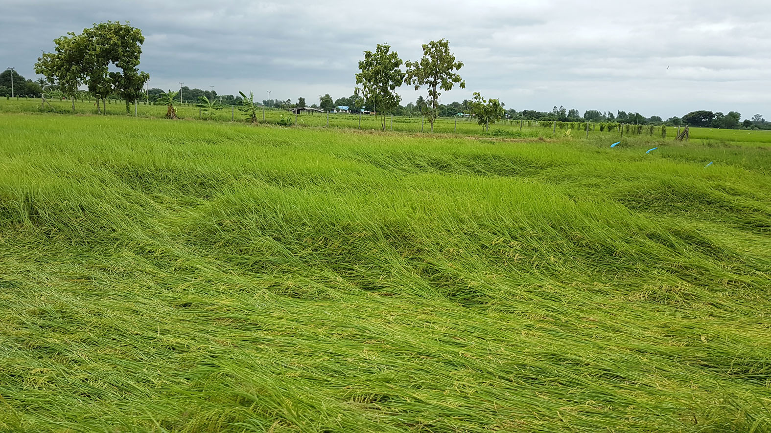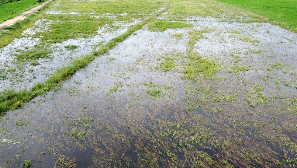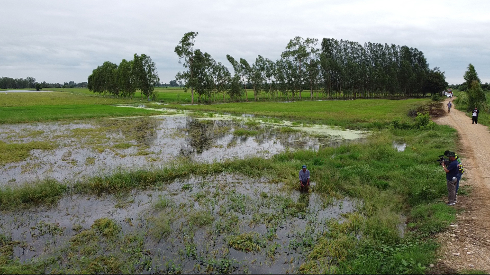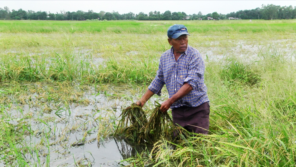 ที่ผ่านมาชาวนาประสบปัญหาภัยแล้งไม่มีน้ำทำนามานานเกือบ 1 ปี แต่มาช่วงที่ชาวนาพอได้น้ำมาทำนา ต้นข้าวกำลังออกรวงรอการเก็บเกี่ยว บางรายก็สามารถเกี่ยวได้แล้ว กระทั่งมีฝนตกลงมาหลายวันติดต่อกันชาวนาไม่สามารถเกี่ยวข้าวได้ น้ำทะลักเข้านาข้าว ทั้งต้นข้าว รวงข้าวจมอยู่ในน้ำ ชาวนาทุกข์ระทมหนักโดนทั้งภัยแล้งและมาตอนนี้ยังมาโดนน้ำท่วมอีกรอบ