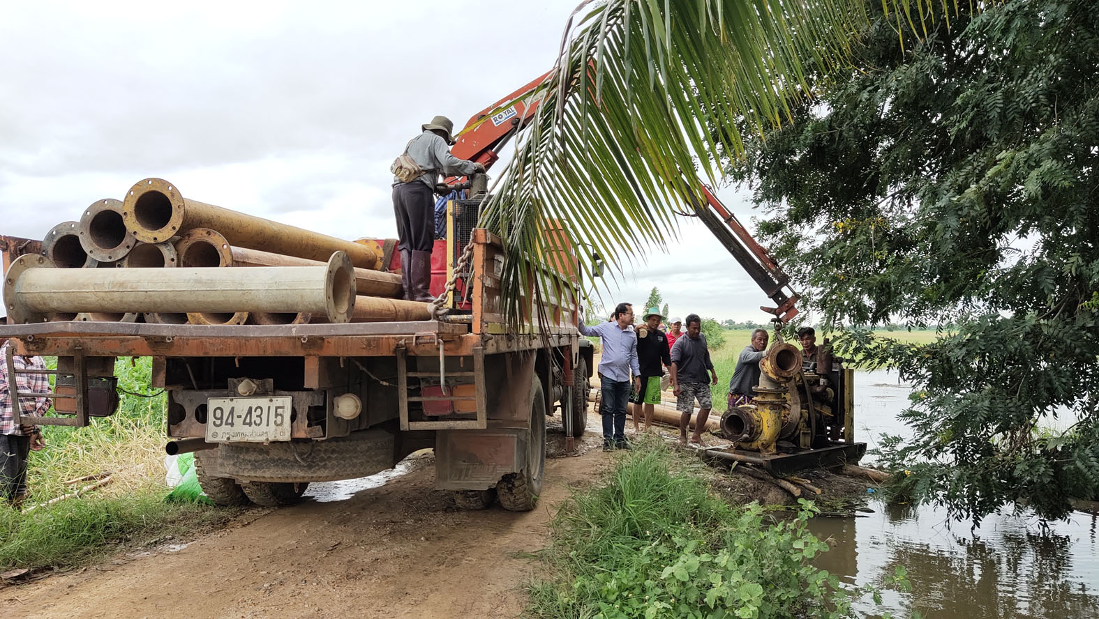 โดยมีเจ้าหน้าที่ชลประทานนำเครื่องสูบน้ำมาติดตั้ง 4 เครื่อง เพื่อสูบระบายน้ำจากนาข้าว พื้นที่หนองกระมาน หมู่ 10 ต.บ้านสระ บ้านหนองโรง หมู่ 4 ต.หนองผักนาก อ.สามชุก ระบายลงสู่ คลองระบายน้ำ 5 ขวา สามชุก 1 และเจ้าหน้าที่ชลประทานได้นำรถแบ็คโฮ 2 ตัว มาขุดลอกวัชพืชออกจากคลอง เพื่อระบายทางน้ำให้ไหลได้สะดวก ช่วงระหว่าง ต.หนองผักนาก อ.สามชุก ไปจนถึง ต.หนองสาหร่าย อ.ดอนเจดีย์ ระยะทางกว่า 12 กิโลเมตร เพื่อเร่งช่วยเหลือชาวนาที่กำลังได้รับความเดือดร้อนจมอยู่ในน้ำ