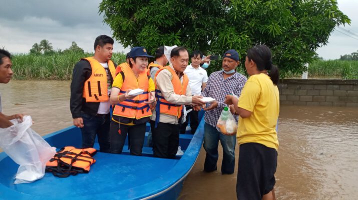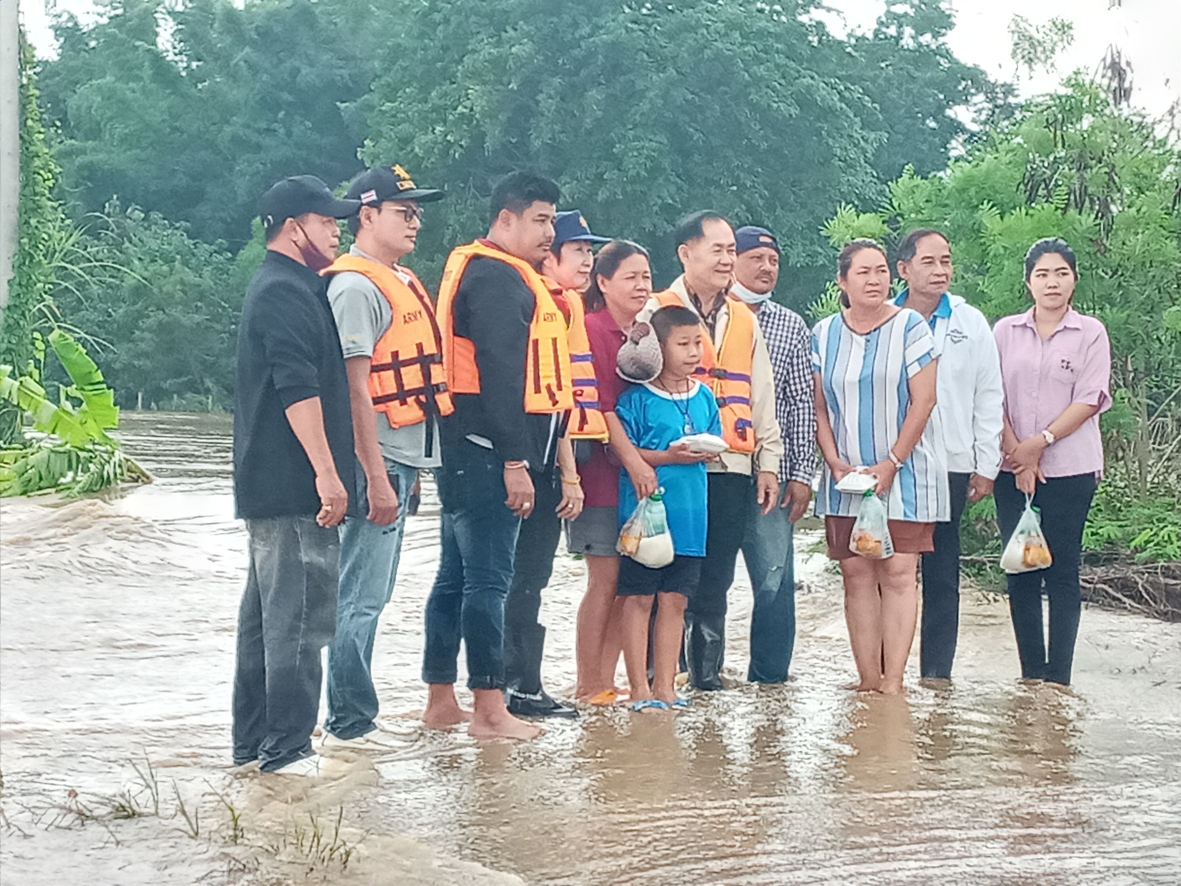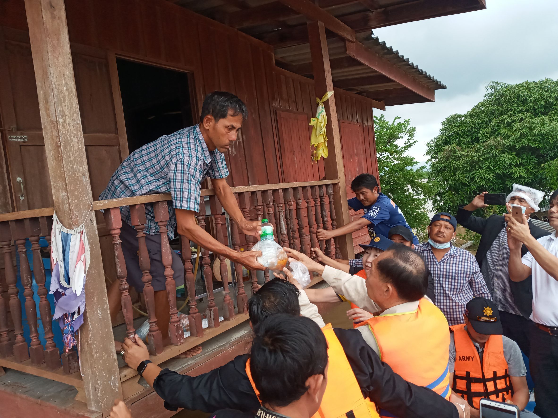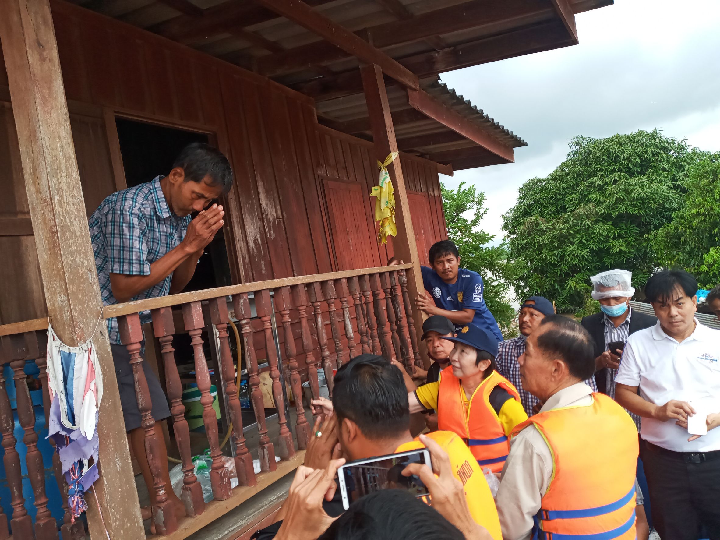กาญจนบุรี ส.ส.กาญจนบุรี เขต 2 พร้อมนายอำเภอด่านมะขามเตี้ย นั่งเรือนำอาหารและน้ำดื่ม ไปช่วยเหลือประชาชน ต.หนองไผ่ และ ต.ด่านมะขามเตี้ย หลังได้รับผลกระทบจากน้ำท่วม เนื่องจากเกิดฝนตกติดต่อกันหลายวัน ส่งผลให้บ้านเรือนและถนนถูกน้ำท่วม