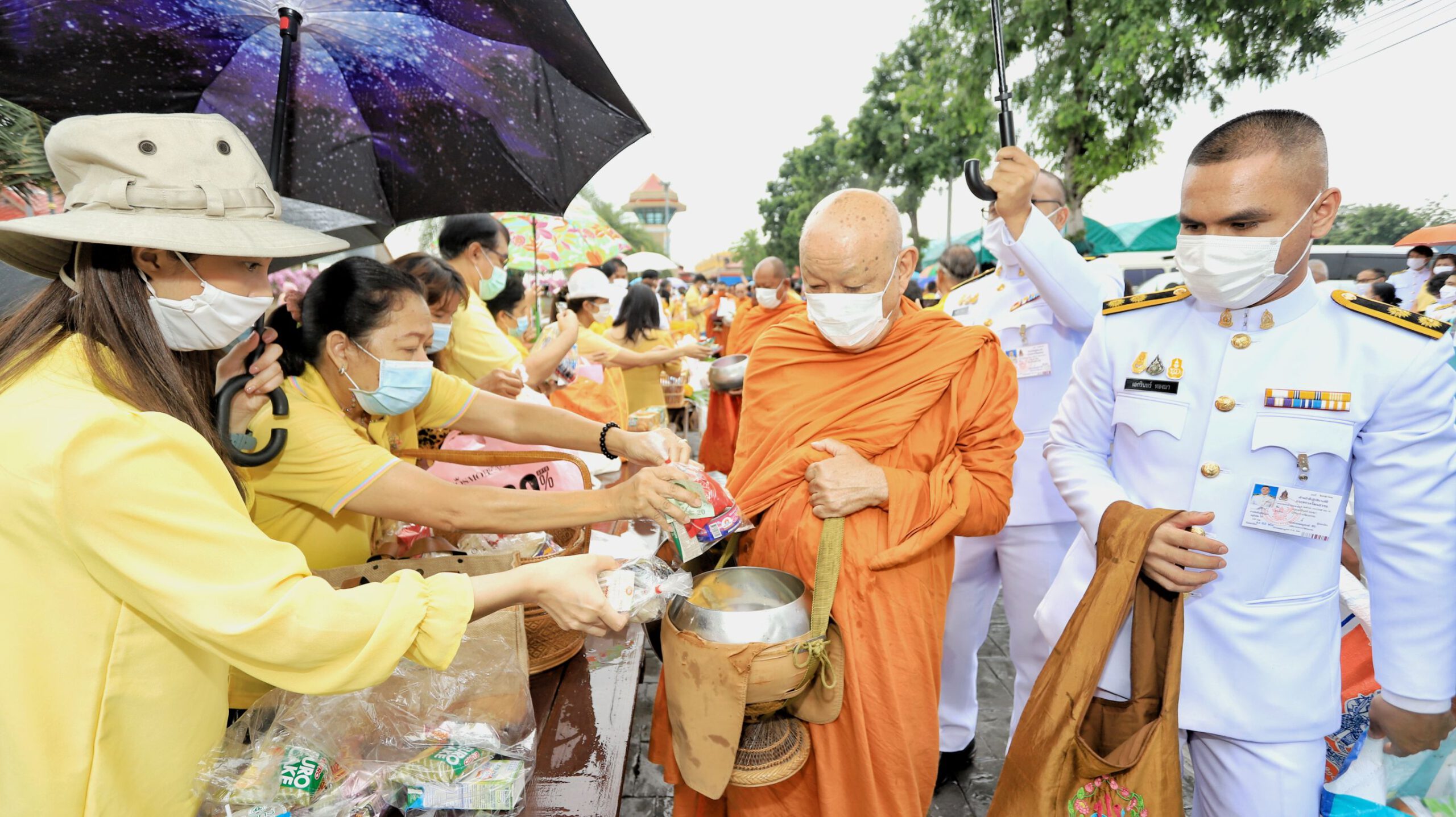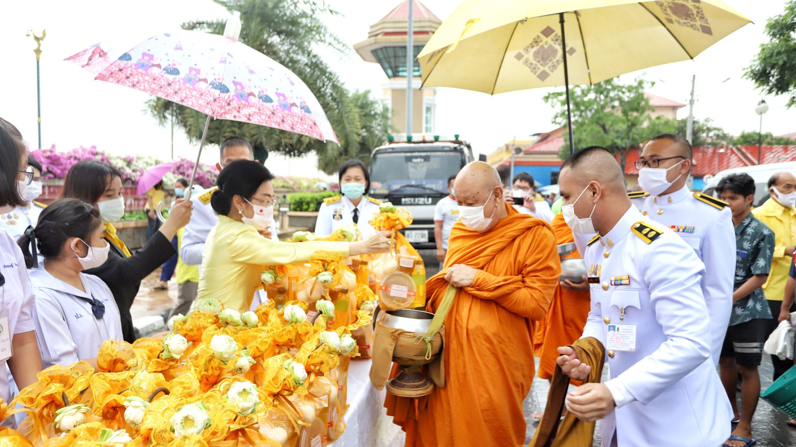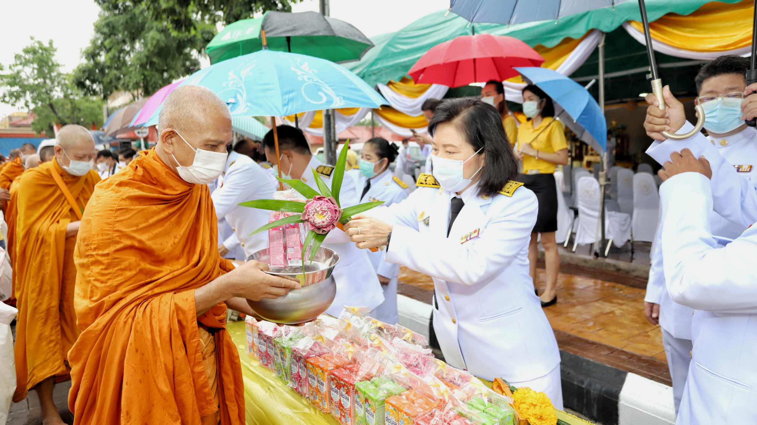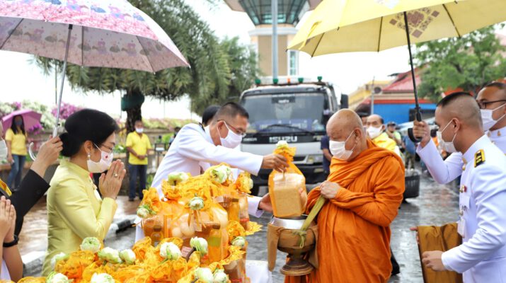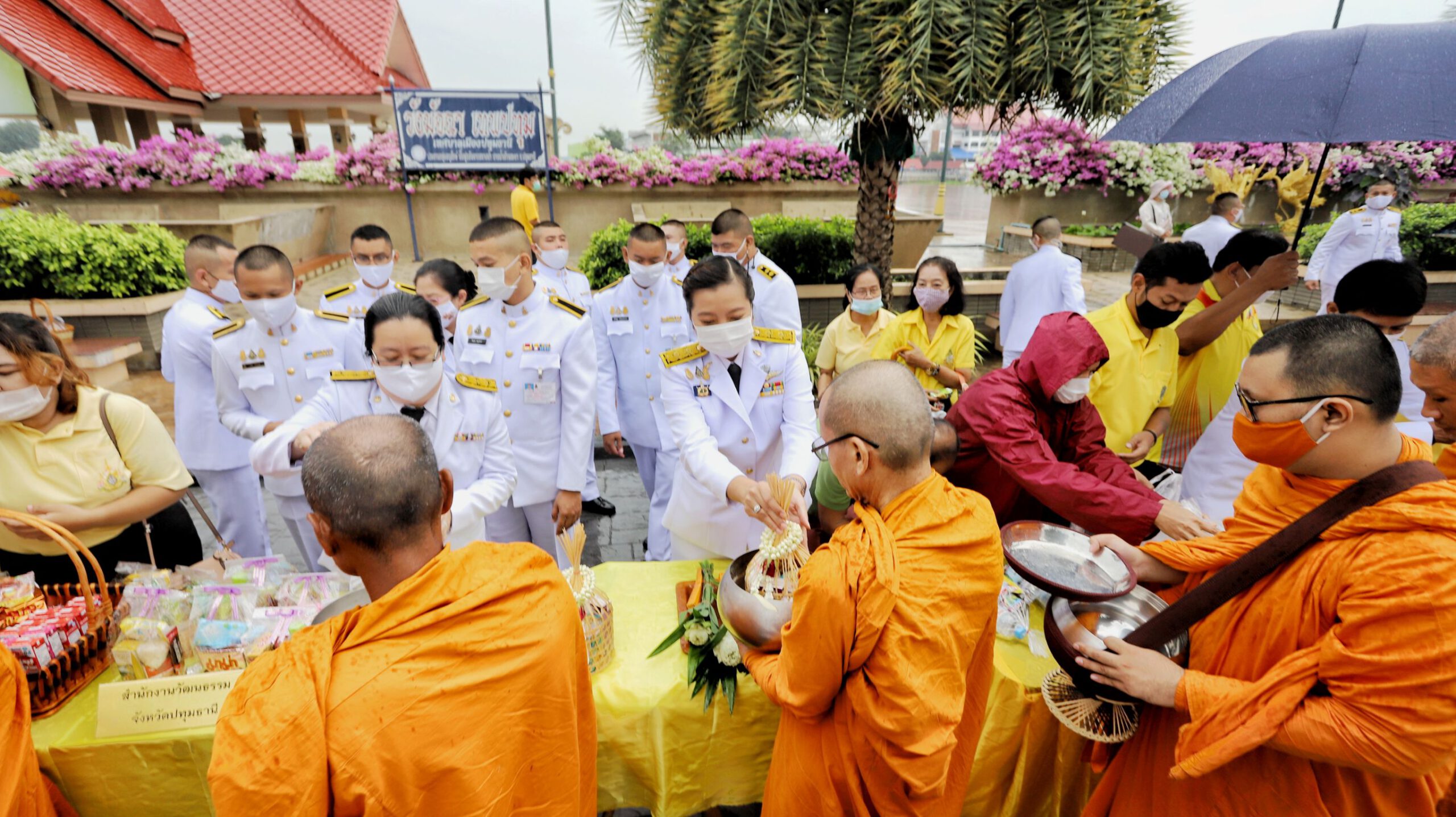 ผู้ว่าฯปทุมธานีนำพสกนิกรทำบุญตักบาตร ท่ามกลางสายฝน น้อมรำลึกในพระมหากรุณาธิคุณ วันคล้ายวันสวรรคต ในหลวง ร.9 ครบรอบ 4 ปี