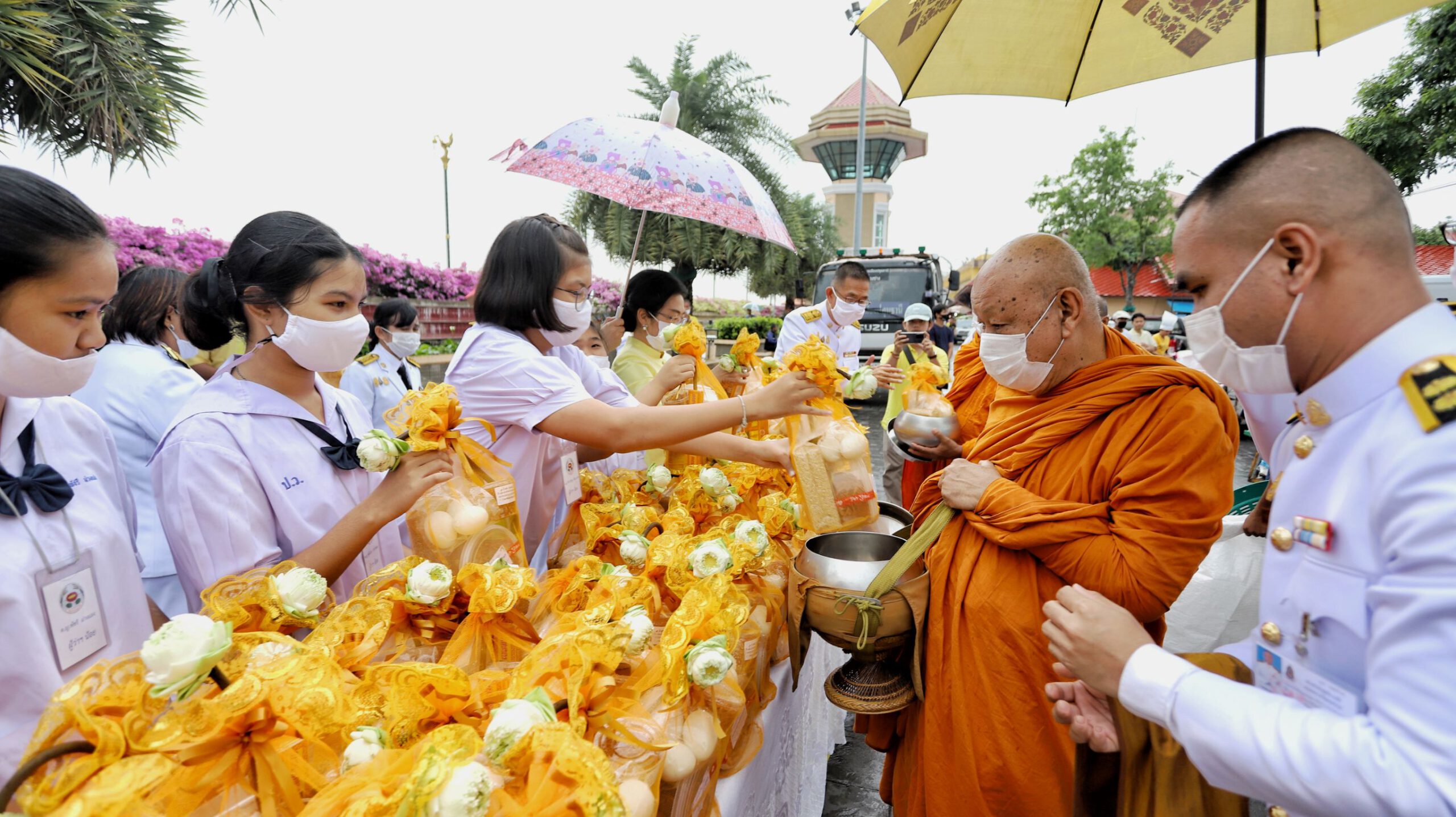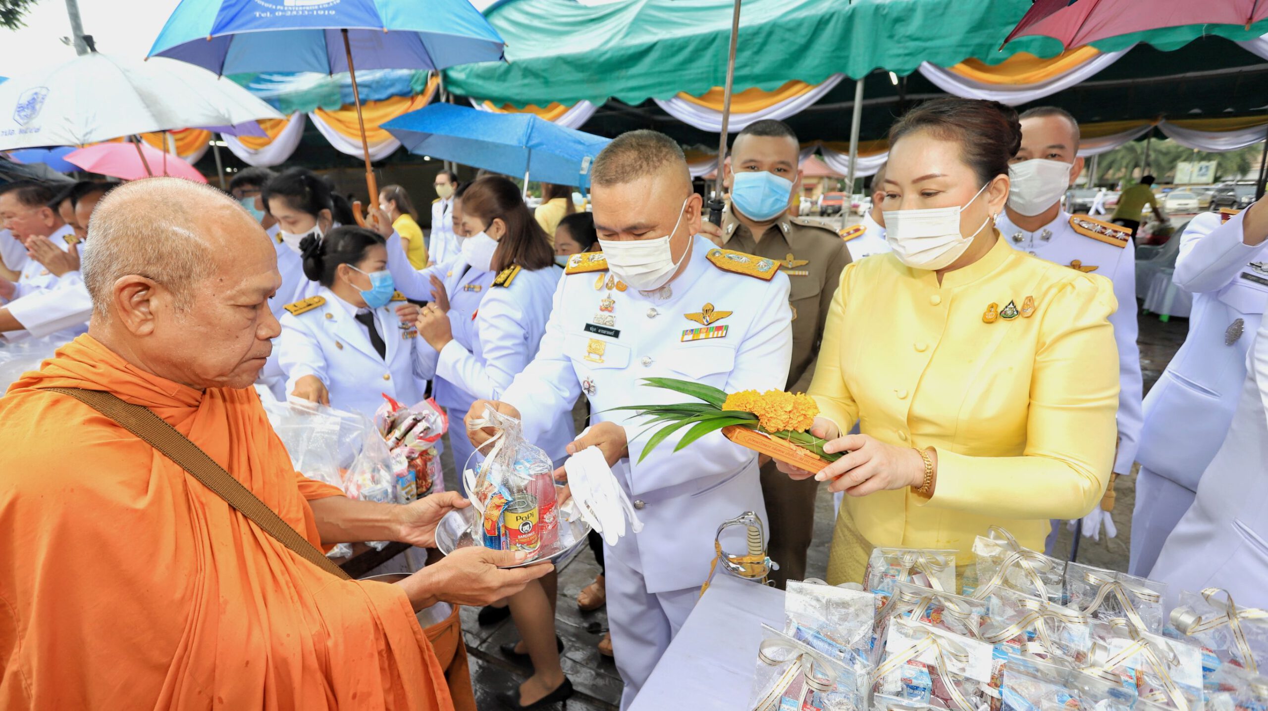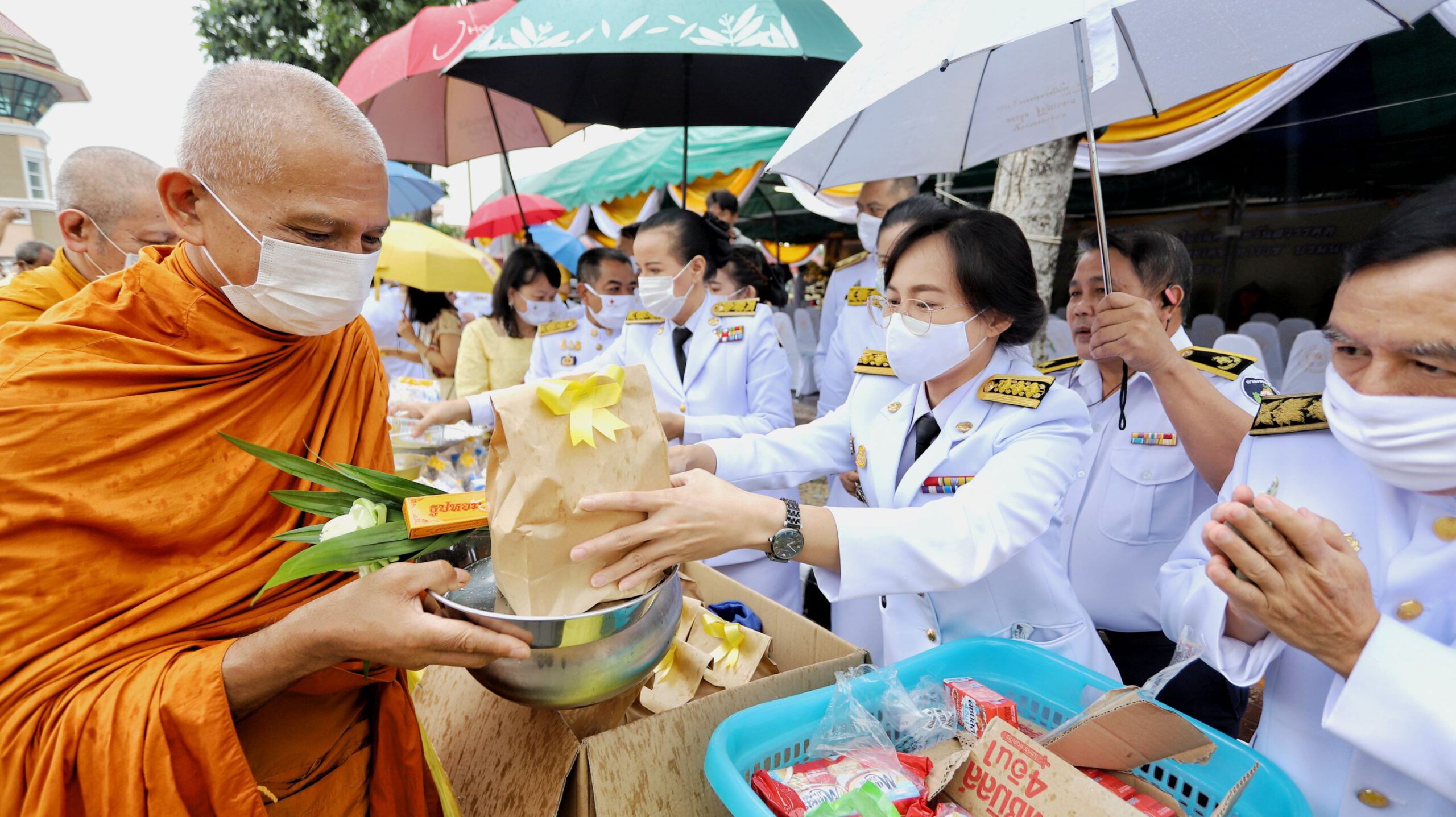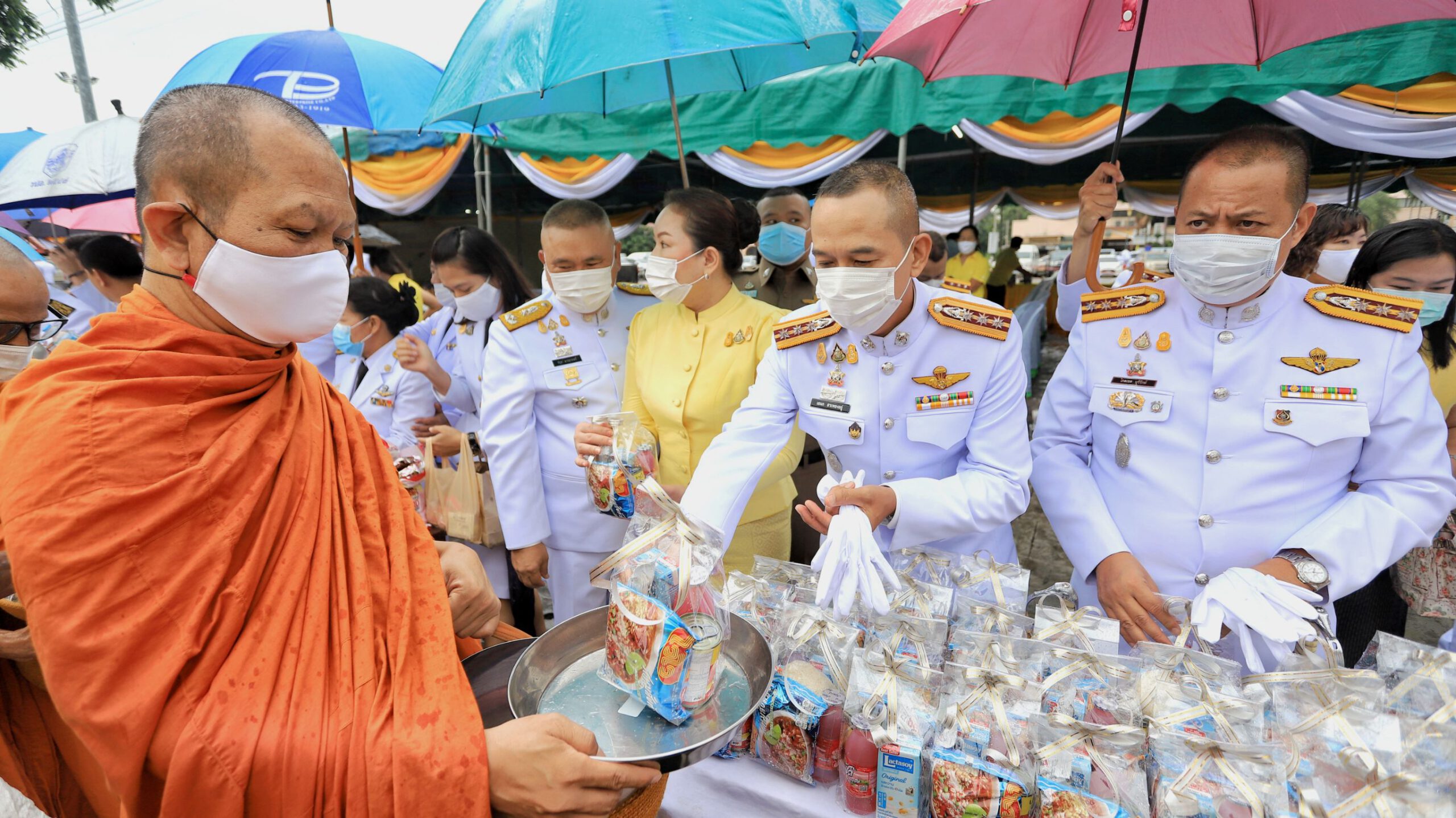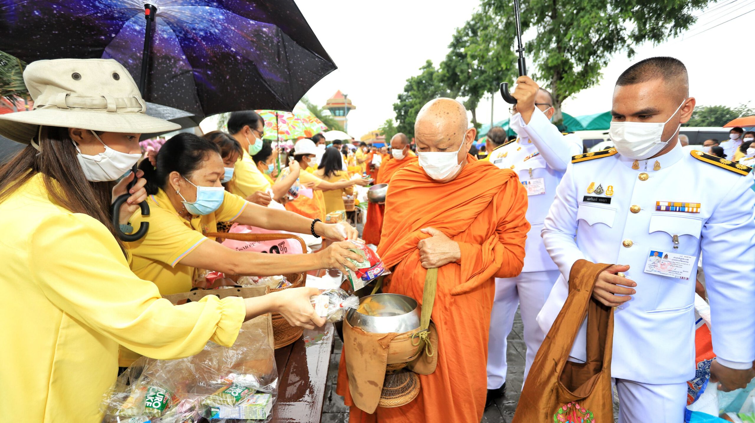 ผู้ว่าฯปทุมธานีนำพสกนิกรทำบุญตักบาตร ท่ามกลางสายฝน น้อมรำลึกในพระมหากรุณาธิคุณ วันคล้ายวันสวรรคต ในหลวง ร.9 ครบรอบ 4 ปี