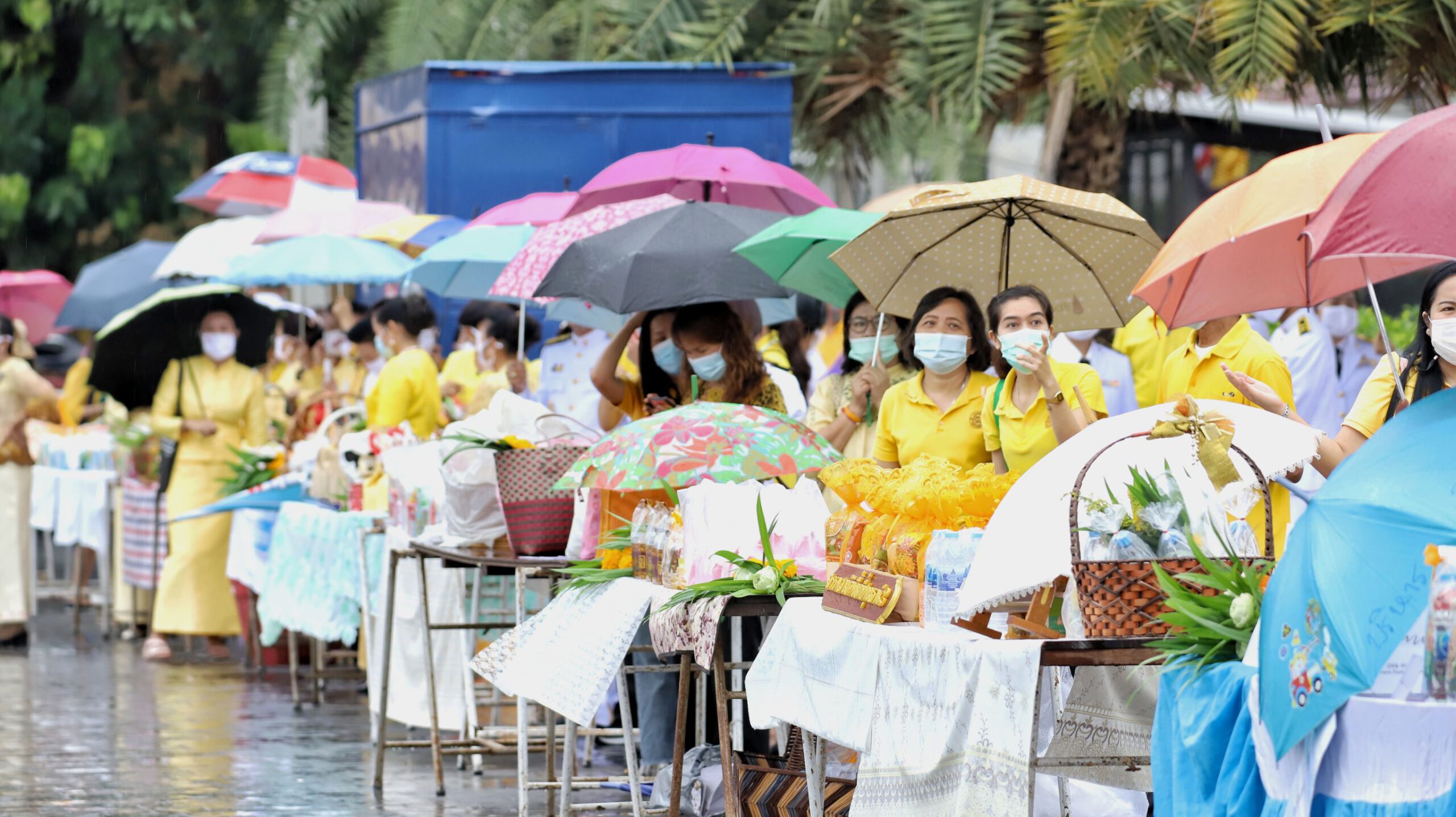 โดยวันนี้ประชาชนชาวปทุมธานีต่างใส่เสื้อสีเหลือง ออกมาทำบุญตักบาตรท่ามกลางสายฝนกันตั้งแต่เช้า เพื่อถวายเป็นพระราชกุศลพระบาทสมเด็จพระบรมชนกาธิเบศร มหาภูมิพลอดุลยเดชมหาราช บรมนารถบพิตร เพื่อน้อมรำลึกเนื่องในวันคล้ายวันสวรรคต ได้นำอาหารหวานคาว ข้าวสารอาหารแห้ง ดอกไม้ธูปเทียนมาร่วมในพิธีทำบุญตักบาตรพระภิกษุสงฆ์กันเป็นจำนวนมาก