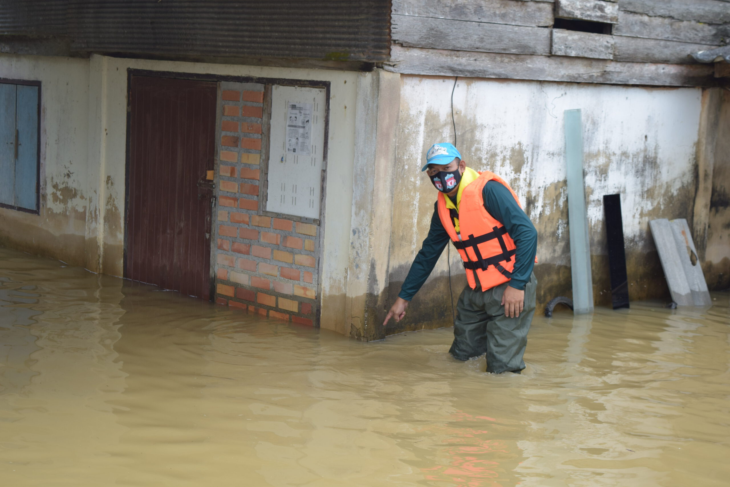 ส่วนในพื้นที่ หมู่ที่ .2 ตำบลนาเมืองเพชร อ.สิเกา น้ำไหลเข้าบ้านเรือนของประชาชน จำนวน 6 หลัง