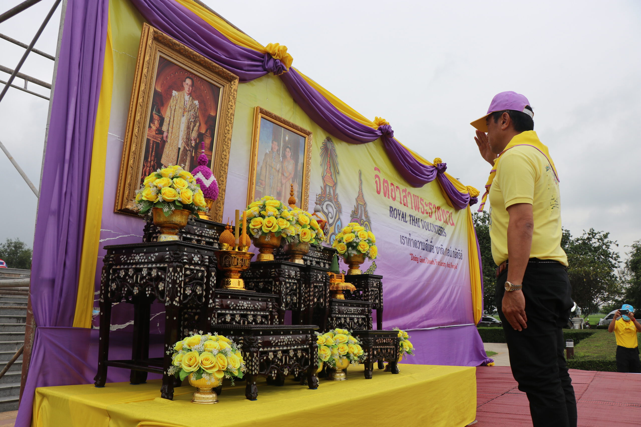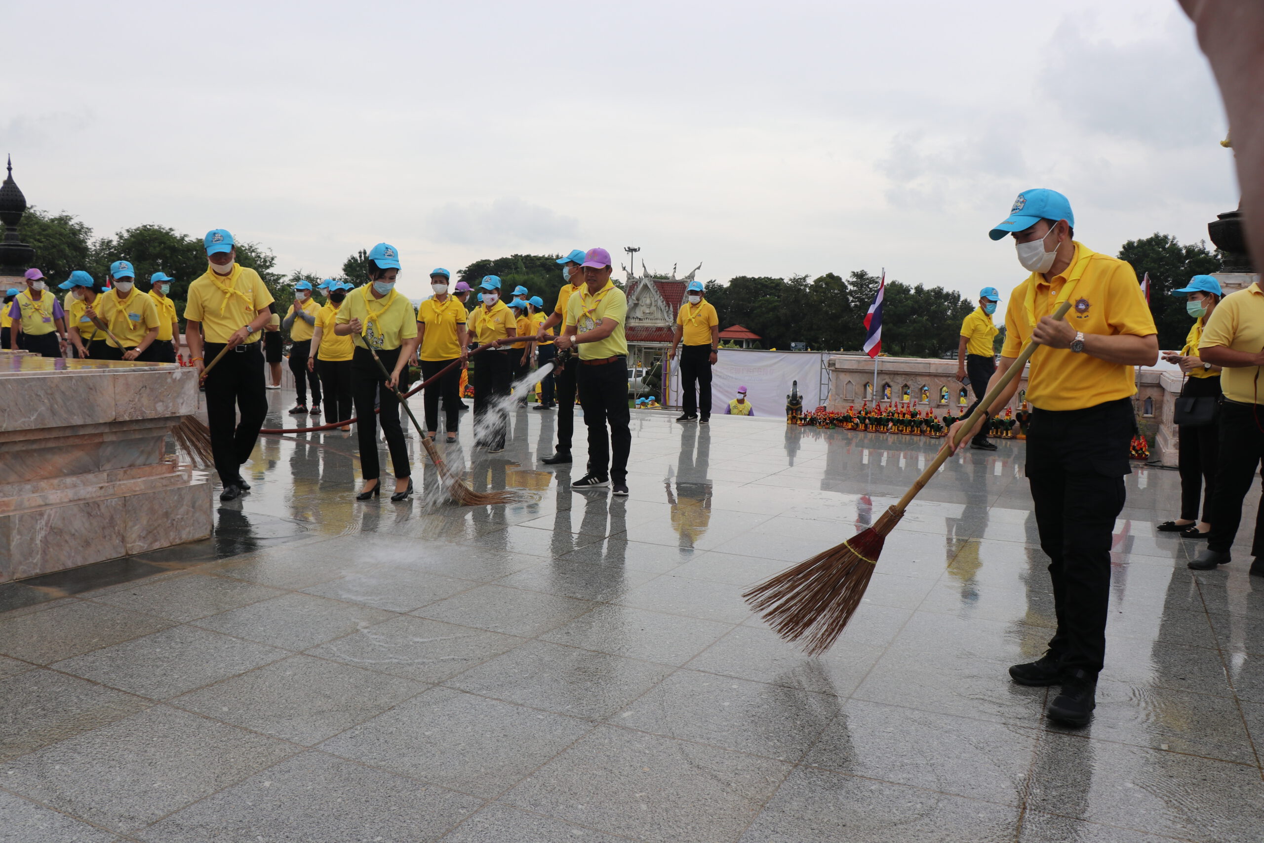 โอกาสนี้ ประธานในพิธีเปิดกรวยดอกไม้หน้าพระบรมฉายาลักษณ์พระบาทสมเด็จพระเจ้าอยู่หัว และพระฉายาลักษณ์สมเด็จพระนางเจ้าฯ พระบรมราชินี จากนั้นถวายความเคารพเบื้องหน้าพระบรมฉายาลักษณ์พระบาทสมเด็จพระบรมชนกาธิเบศร มหาภูมิพลอดุลยเดชมหาราช บรมนาถบพิตร พระบาทสมเด็จพระเจ้าอยู่หัว และสมเด็จพระนางเจ้าฯ พระบรมราชินี พร้อมยืนตรง ดนตรีบรรเลงเพลงสรรเสริญพระบารมี จากนั้น ประชาชนจิตอาสาพระราชทานฯ ทั้งหมดได้แยกย้ายไปปฏิบัติกิจกรรมปรับภูมิทัศน์และทำความสะอาดรอบพระบรมราชานุสาวรีย์สมเด็จพระนเรศวรมหาราช
