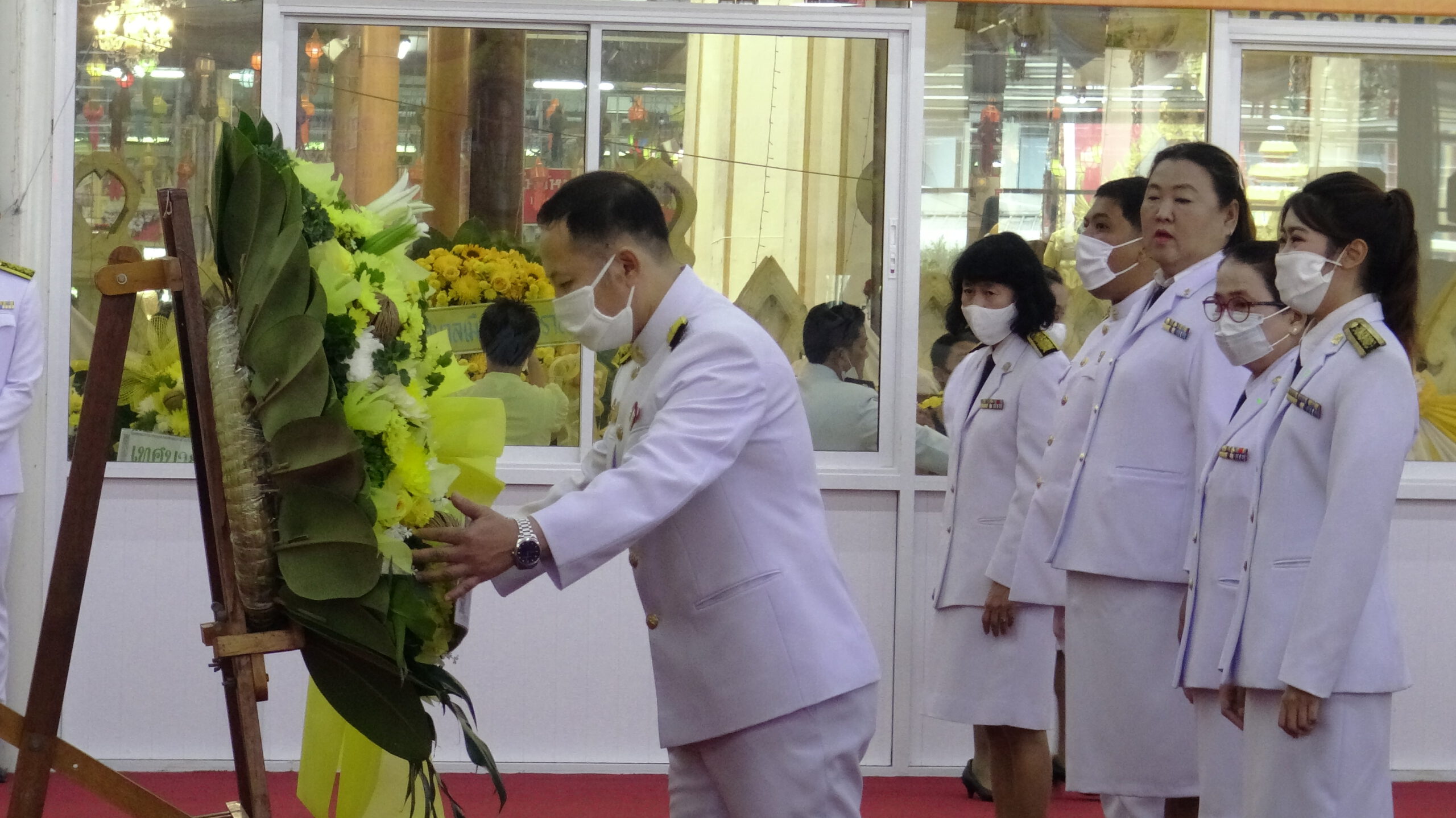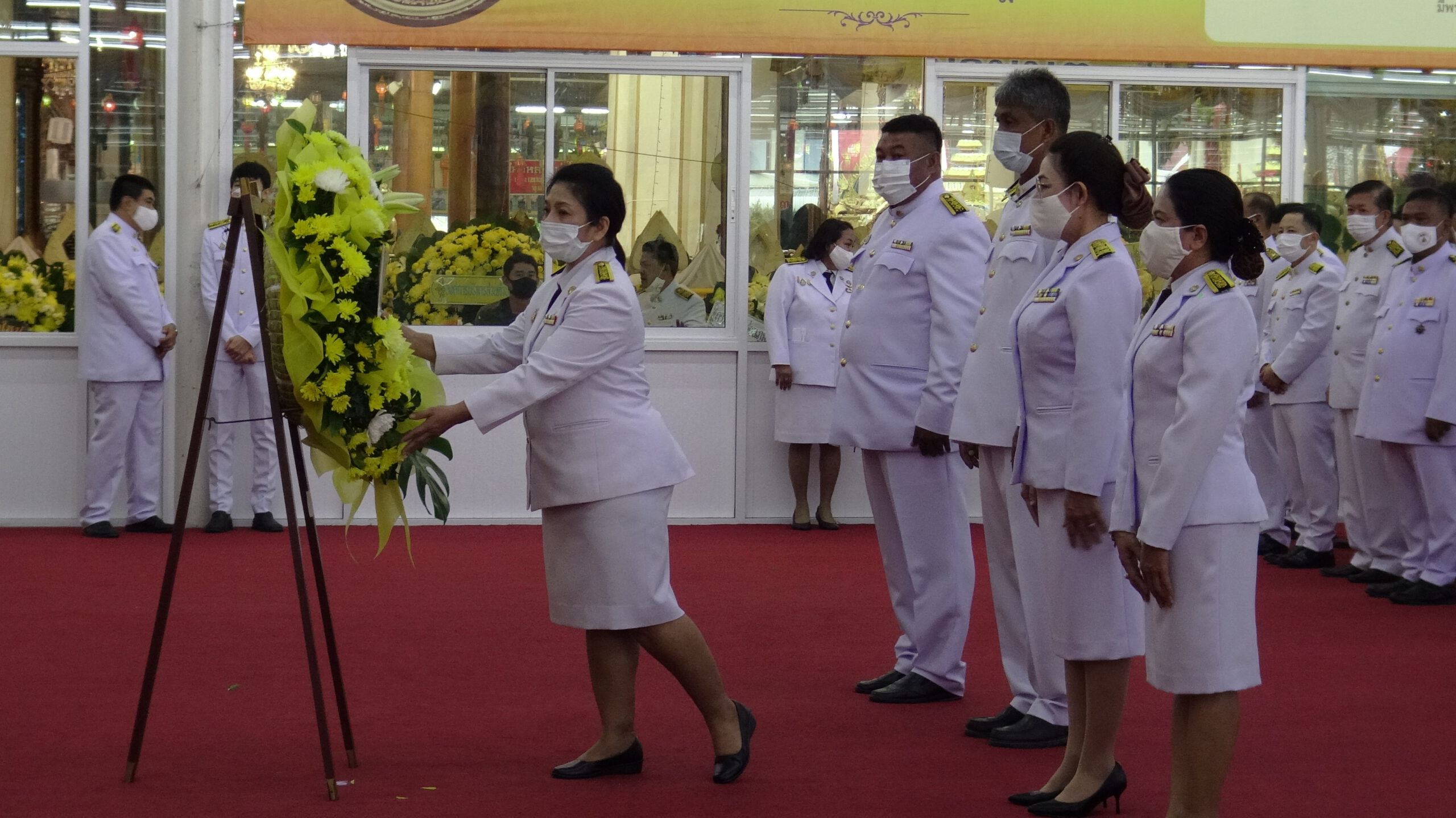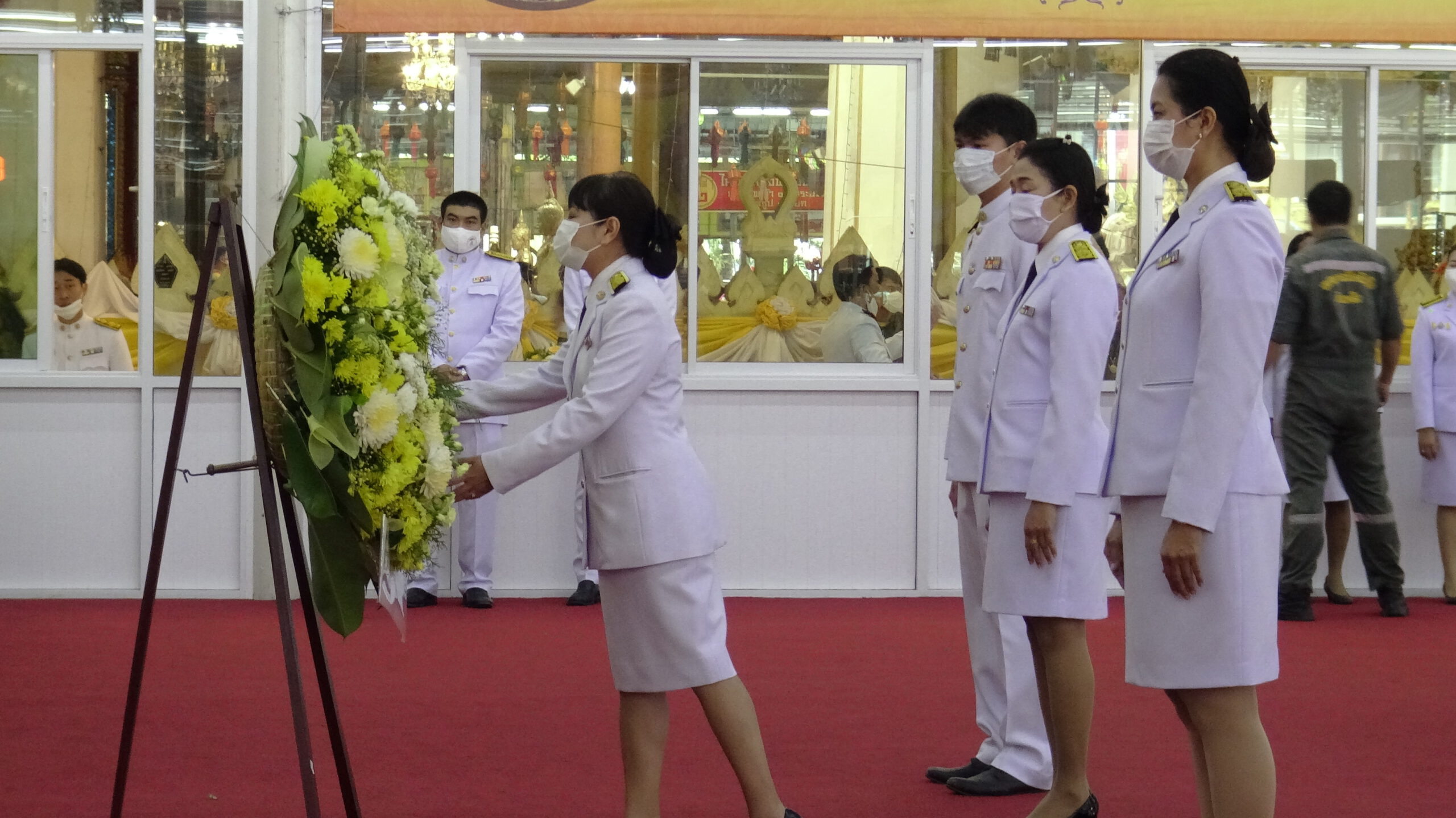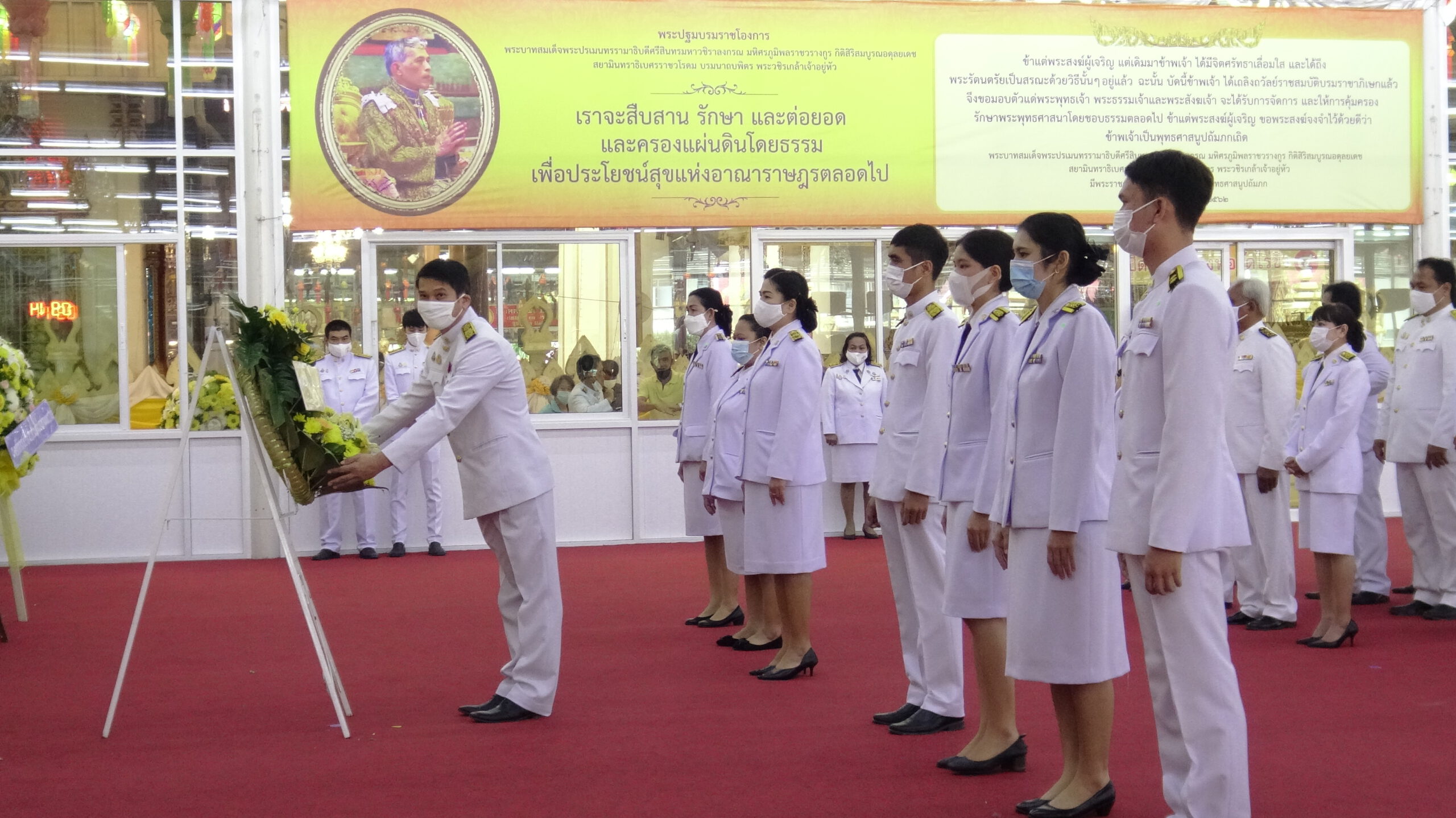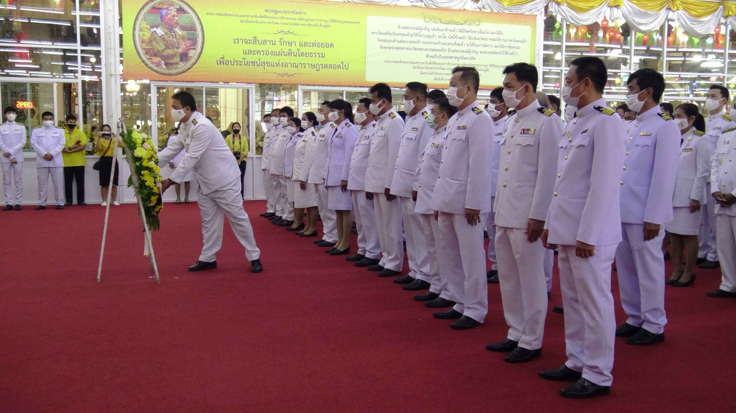 พสกนิกรชาวอำเภอสามพรานร่วมพิธีวางพวงมาลาและถวายบังคมน้อมรำลึกเนื่องในวันคล้ายวันสวรรคตรัชกาลที่9